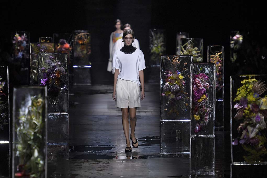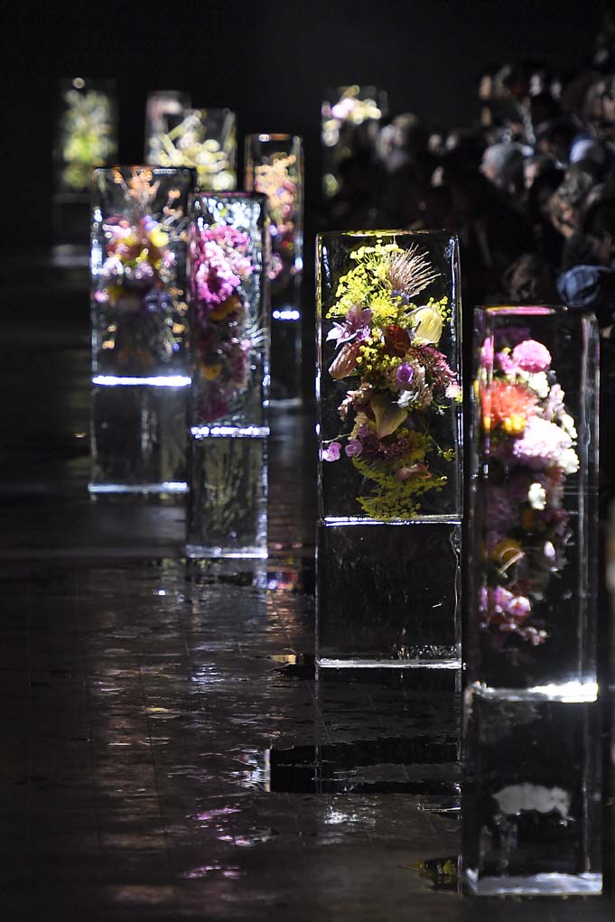 Dries Van Noten’s Floral Display: The designer partnered with Japanese flower artist Azuma Makoto, to compliment the series of floral-print garments down the runway, making for a set that’s truly unforgettable.