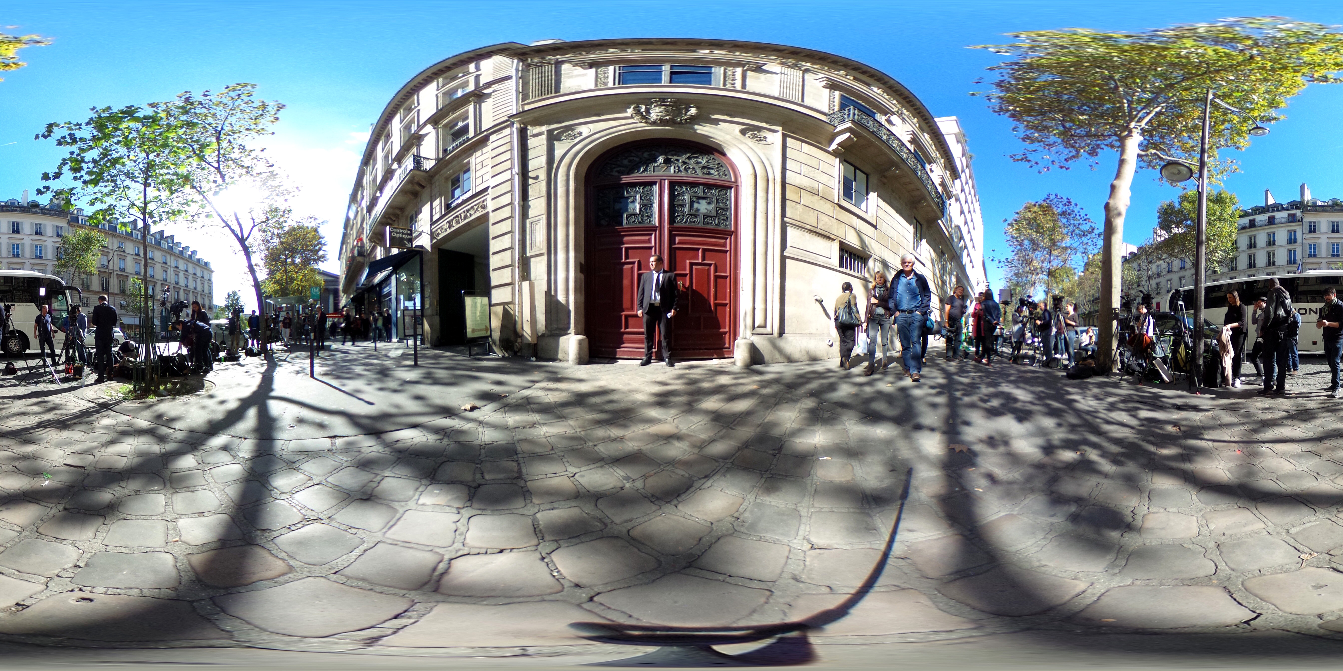 - PARIS, FRANCE – OCTOBER 03: (EDITOR’S NOTE: Image was created as an Equirectangular Panorama. Import image into a panoramic player to create an interactive 360 degree view) Media crews outside Kim Kardashian’s Luxury Apartment, Hotel de Pourtales on Rue Tronchet, after being robbed at gunpoint by masked men during Paris Fashion Week Womenswear Spring/Summer 2017 on October 3, 2016 in Paris, France. (Photo by Ming Yeung/Getty Images)