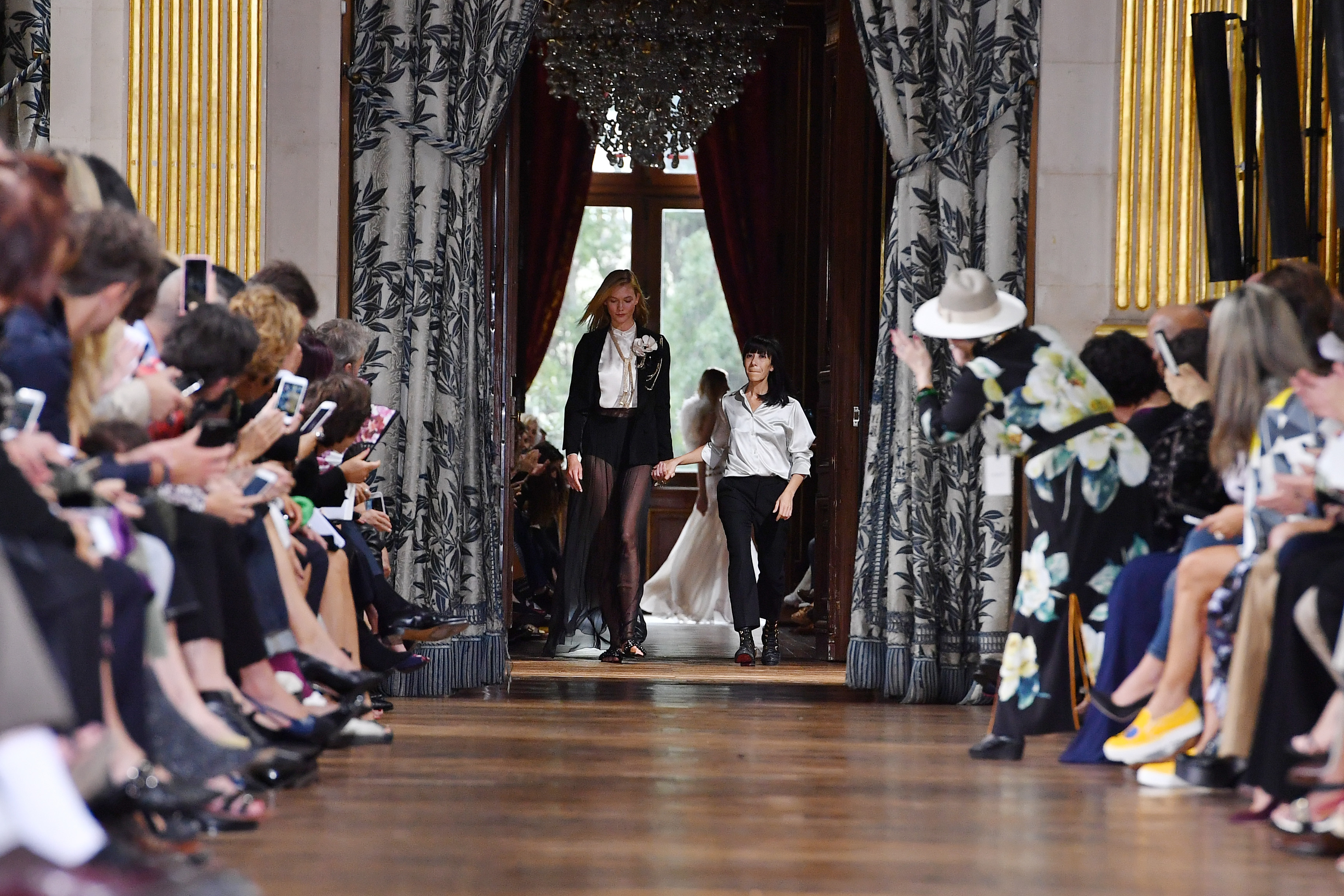 - PARIS, FRANCE – SEPTEMBER 28: Karlie Kloss and designer Bouchra Jarrar walk the runway during the Lanvin show as part of the Paris Fashion Week Womenswear Spring/Summer 2017 on September 28, 2016 in Paris, France. (Photo by Pascal Le Segretain/Getty Images)