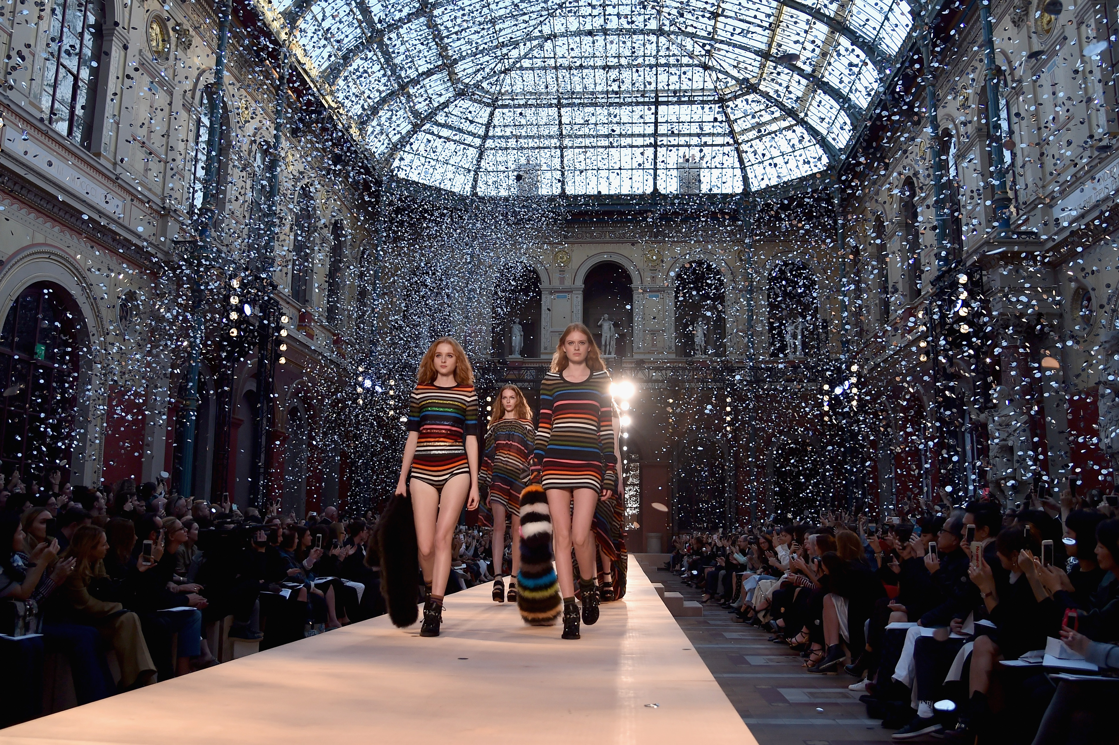 - PARIS, FRANCE – OCTOBER 03: Models pose on the runway during the Sonia Rykiel show as part of the Paris Fashion Week Womenswear Spring/Summer 2017 on October 3, 2016 in Paris, France. (Photo by Pascal Le Segretain/Getty Images)