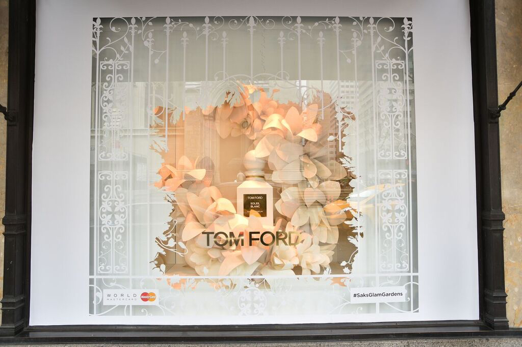 Yesterday, Saks Fifth Avenue’s flagship unveiled its second Glam Gardens spring beauty campaign, this year with the theme The Secret Garden. More than 30 beauty brands have cocooned their product displays in a full-range of blooms; the decor totals 1,000 handmade artisanal paper flowers, 120 boxwood topiaries, and 10 full-grown climbing trees. A selection of top brands took the flowerage street-side with blossoming window creations that will brighten Fifth Avenue until May 24. Below, behold five of the chicest displays.