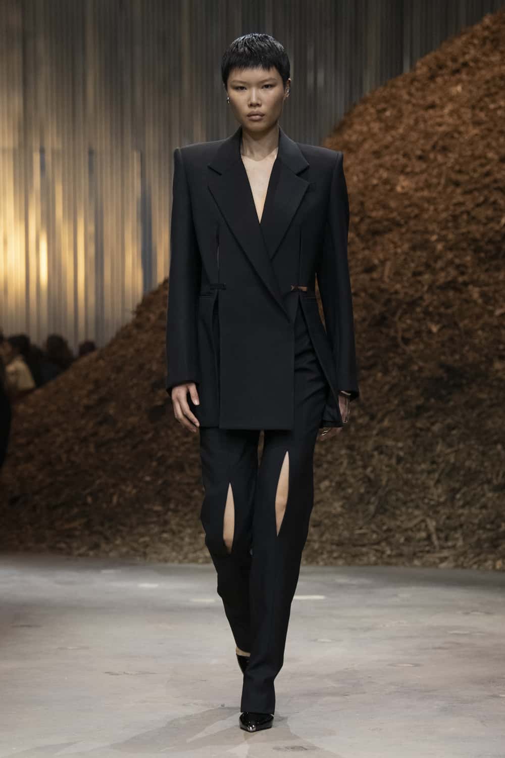 As for the future, the brand doubled down on its commitment to sustainability, with reportedly 85% of the collection derived from upcycled materials. Beyond the visual references to interconnectivity, community, and things that bind us, it was a presentation of powerful clothes that were, at their core, simply beautiful to look at; whether it was Kaia Gerber’s manus x machina sparkling mini or one of the many tempting outerwear suggestions. Garments that make us want to catch a seat mate’s eye and smile in a shared moment of appreciation.