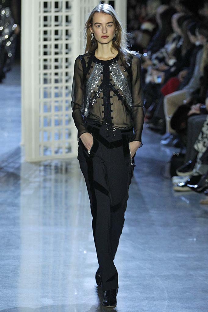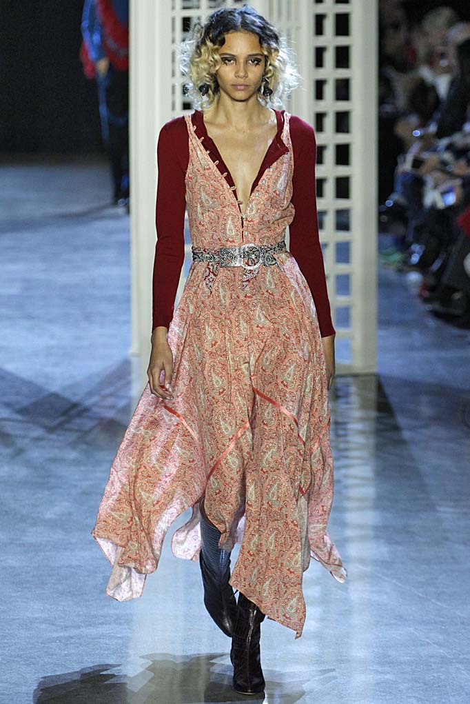 Shearlings have been on nearly every runway, but Altuzarra’s floral- and Indian paisley-infused versions really stood out. Plus, turtleneck knits with Napa lacing, the above mentioned beaded kerchief dresses that closed the show, fringe jacquard sweaters, and the take on Turkish and Moroccan folkloric costumes looked really fresh. “I wanted to be free to follow my curiosity about the world we live in, and weave a tapestry of references and stories into this collection,” said Joseph Altuzarra in the show notes. “I also wanted this to speak to women I know, and the reality of their lives.” Women, presumably, like Vanessa Traina and Mélanie Huynh, who happened to have styled the show. Bravo!