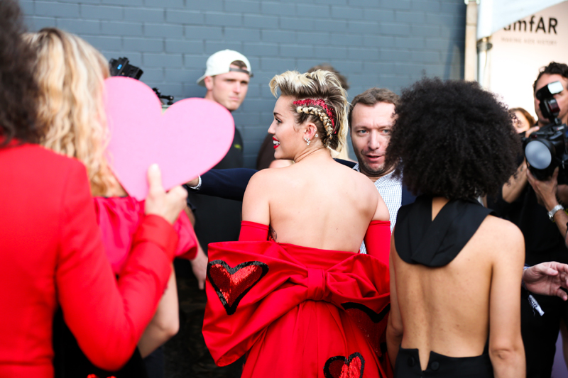 Cyrus, staying loyal to pal Jeremy Scott’s Moschino in a red number, gave a shout out to amfAR champions Elizabeth Taylor and Sharon Stone and thanked her parents who made a rare public appearance to support their daughter. “My mom and dad, mostly my dad,” Cyrus said. “I think this is the first time we’ve actually hung out outside of the house in maybe 15 years. You look handsome, I’m happy to have you here. I just want to tell you how much I love you—I’m gonna f–king cry like a loser—I just want to tell my parents, I hope that this makes them proud and somehow makes up for all the s–t that I do. You are two of the most selfless people, and you’ve taught me and all my siblings how important it is to be there for those who need us and how important it is to care about other people and their lives, so thank you for making me believe that. People say that you don’t choose your family, but I choose my family every time, and I’d think that even if you weren’t my mom and dad. I hope we’d still be in the room together looking for a cure, so thank you very much. One of my favorite quotes from another heroine of mine, Audrey Hepburn. She said that as you grow older, you realize you have two hands: You’ve got one for helping yourself and one for helping other people. Thank you for instilling that in me and making me really know that that’s true because if I know anything from doing this after how—10 years of doing this, nothing means s–t except f–king helping people. That’s the only thing that makes us feel that we’ve really accomplished anything at all.” Moments later she thanked the organization who put the evening together. “I feel grateful to be in a room with so many people that care because unfortunately that’s rare in the world we live in today,” Cyrus told an enthused crowd. “Maybe that’s why it’s so easy for me to be standing up here receiving this Inspiration award tonight. This privilege is an honor and amfAR, I will not let this, my life, your dedication, your hard work, and all these valuable souls effected by HIV and AIDS go to waste. We will continue to fight against judgment and we will find a cure for HIV/AIDS. Thank you!”