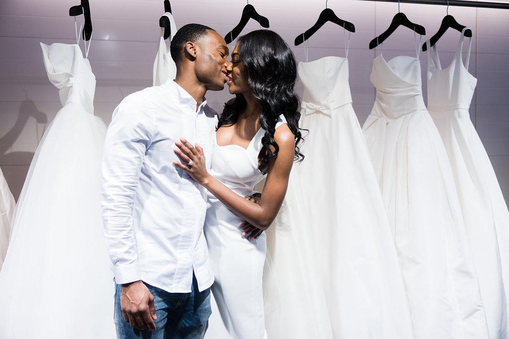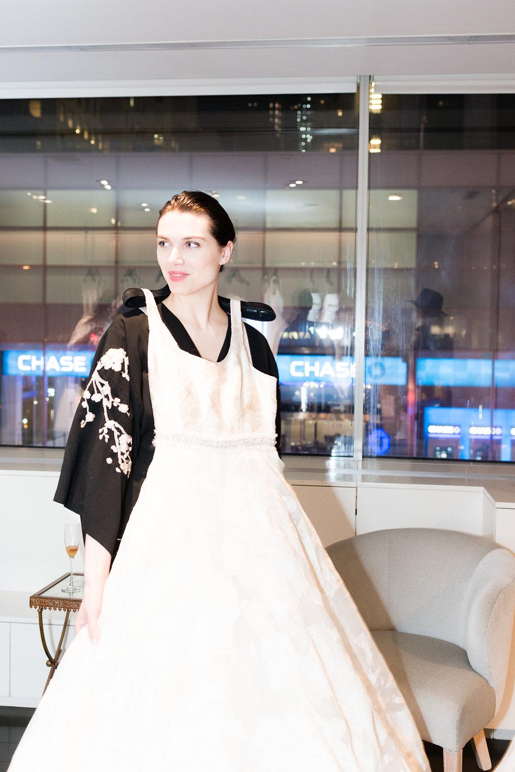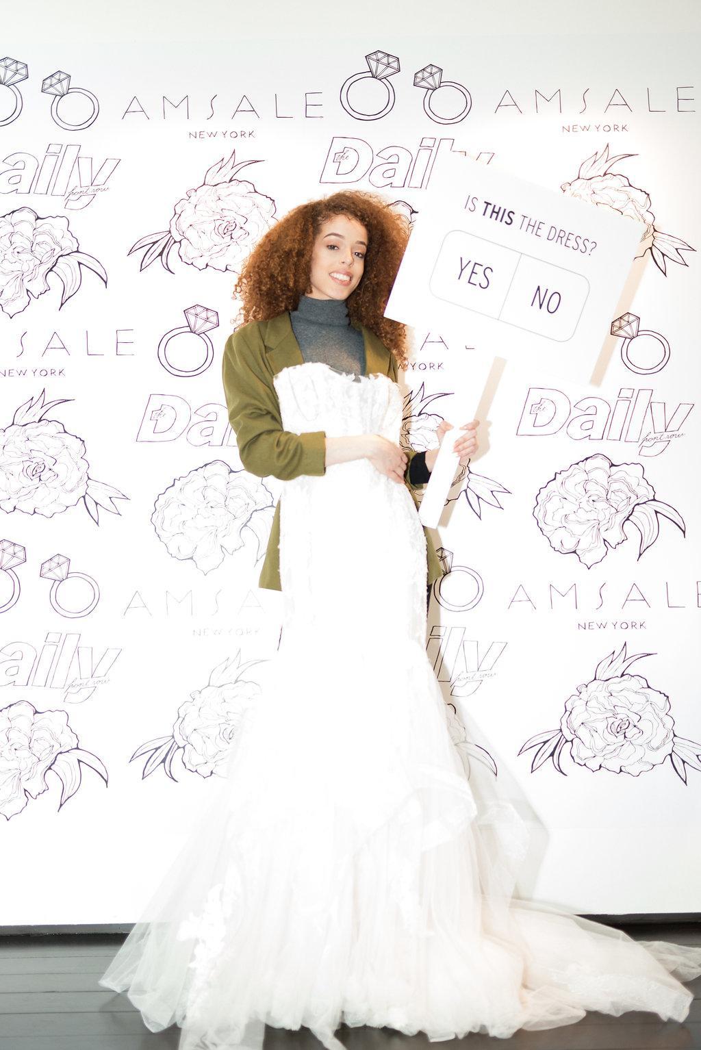 Last night, The Daily and the gorgeous bridal brand Amsale teamed up for a mid-winter cocktail party at Amsale’s Upper East Side showroom in NYC. Guests got to browse the brand’s stunning lineup of wedding gowns—so many options to choose from!—while sipping on champagne, dishing on h’orderves like mini bruschetta on toast, and taking photos against The Daily x Amsale photo wall.