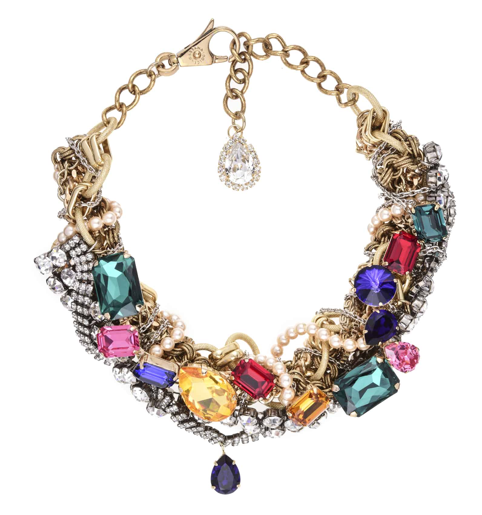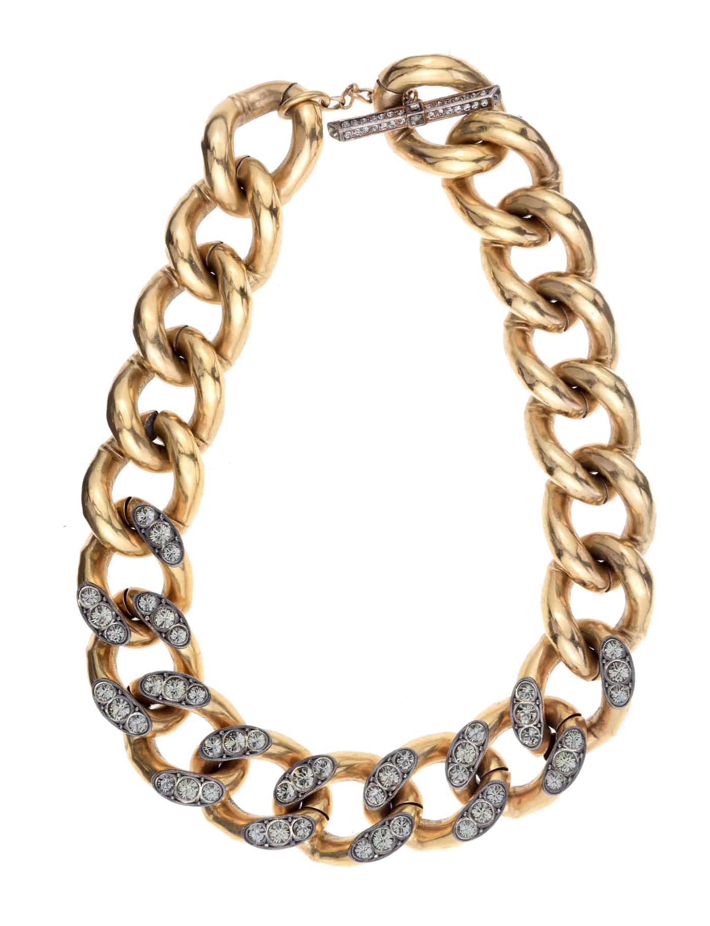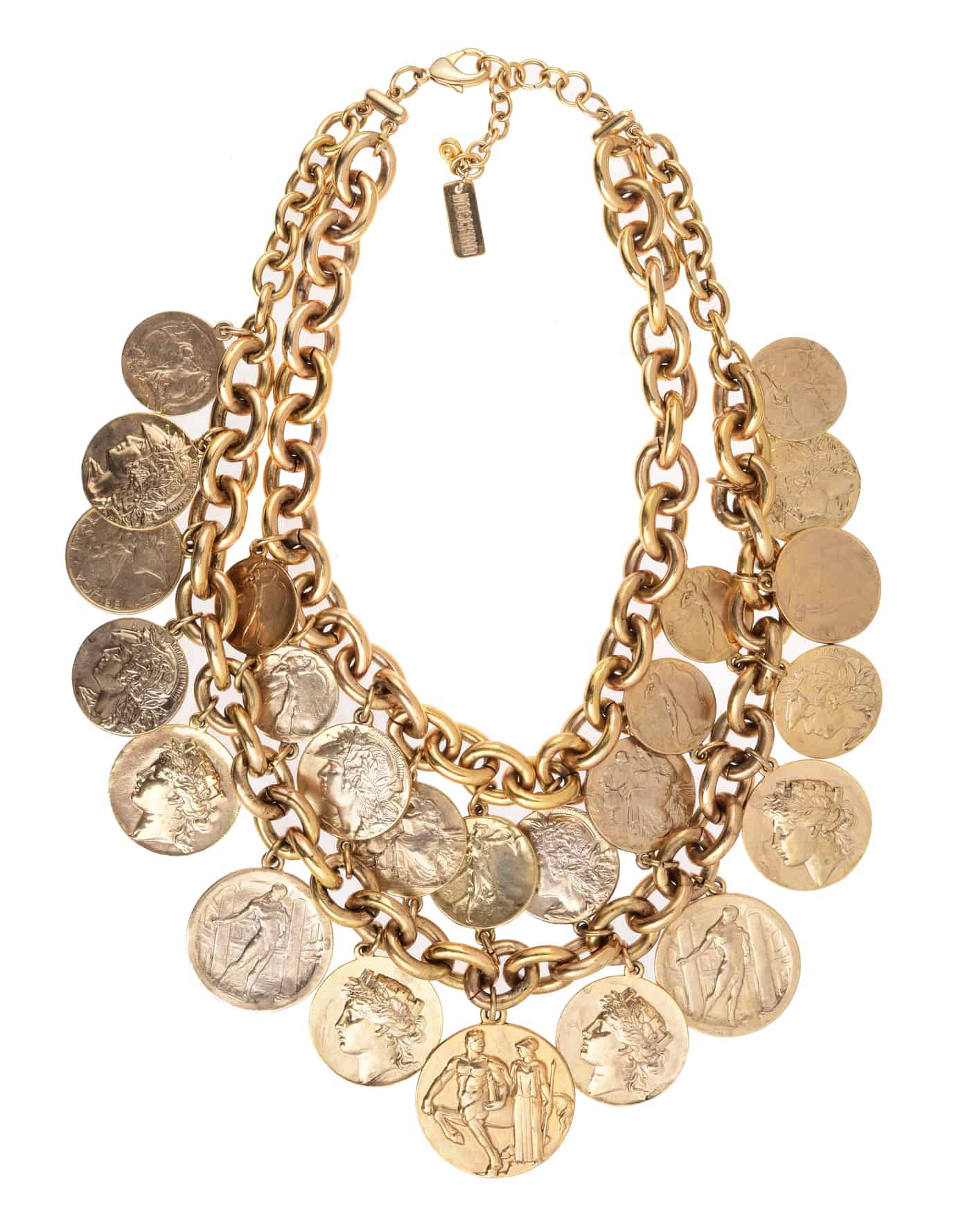 Anna Dello Russo is selling 38 pieces from her vast jewelry collection (and one clutch) on luxury resale site Vestiaire Collective as part of their ongoing “Archive Series.” Available starting today, the collection has a number of recognizable pieces including an opulent Lanvin necklace worn to the Paris Couture shows in 2014, a gold crocodile Roberto Cavalli choker worn to the Gucci S/S 2012 show, and a monogrammed diamante AdR clutch. There are also pieces from Moschino, Chanel, and Balenciaga mixed in with vintage baubles collected during Dello Russo’s travels.