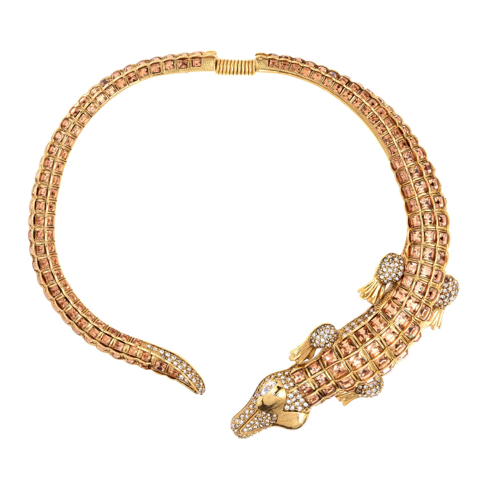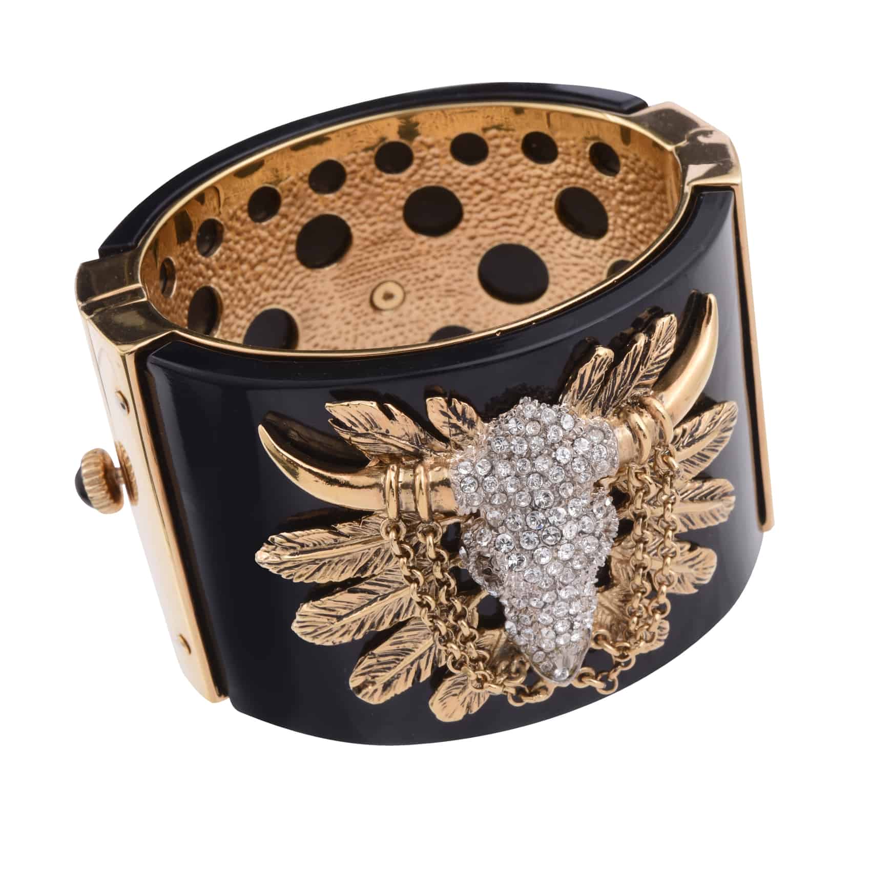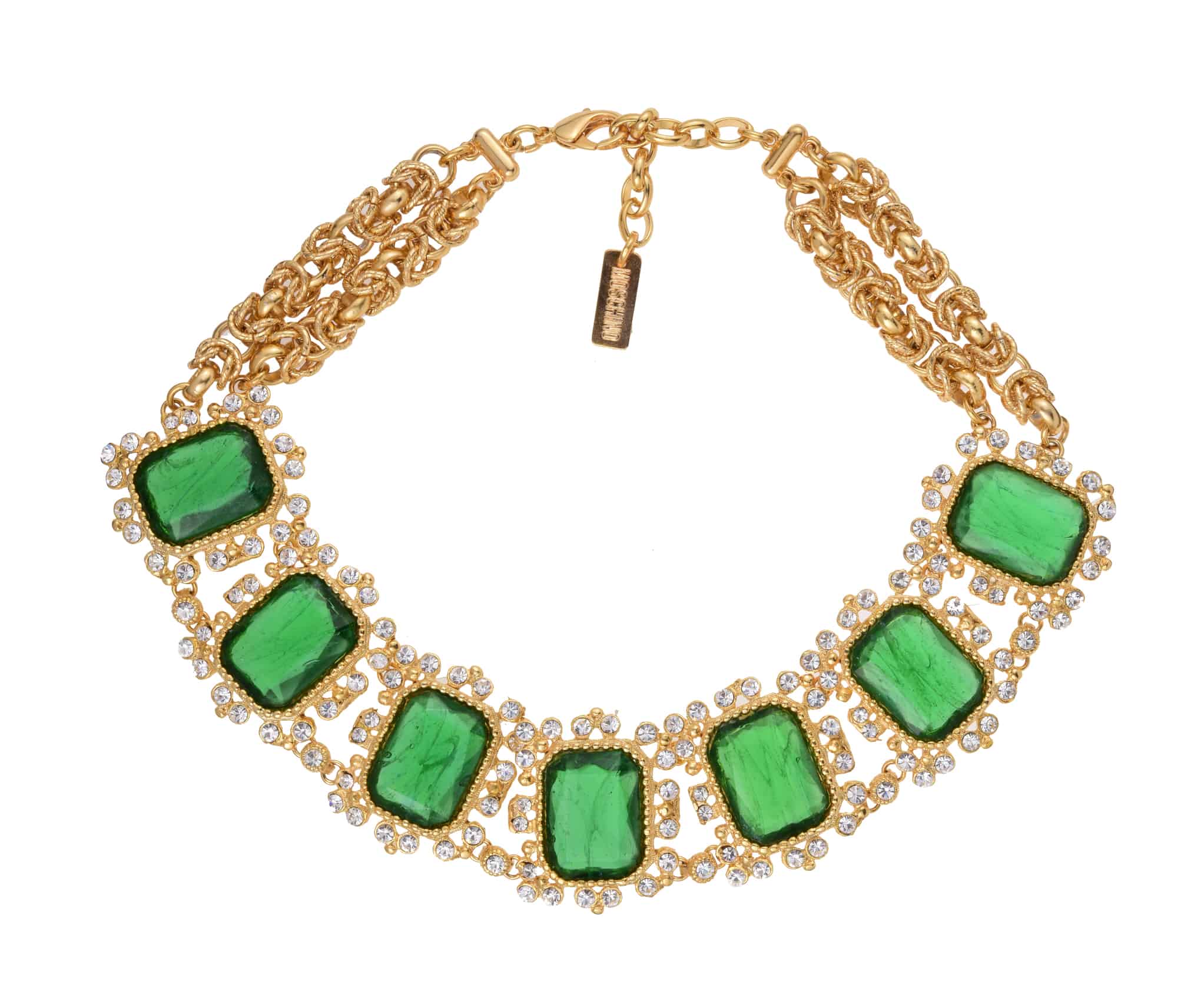 Anna Dello Russo is selling 38 pieces from her vast jewelry collection (and one clutch) on luxury resale site Vestiaire Collective as part of their ongoing “Archive Series.” Available starting today, the collection has a number of recognizable pieces including an opulent Lanvin necklace worn to the Paris Couture shows in 2014, a gold crocodile Roberto Cavalli choker worn to the Gucci S/S 2012 show, and a monogrammed diamante AdR clutch. There are also pieces from Moschino, Chanel, and Balenciaga mixed in with vintage baubles collected during Dello Russo’s travels.