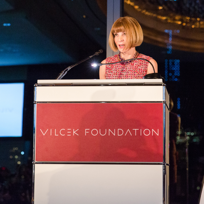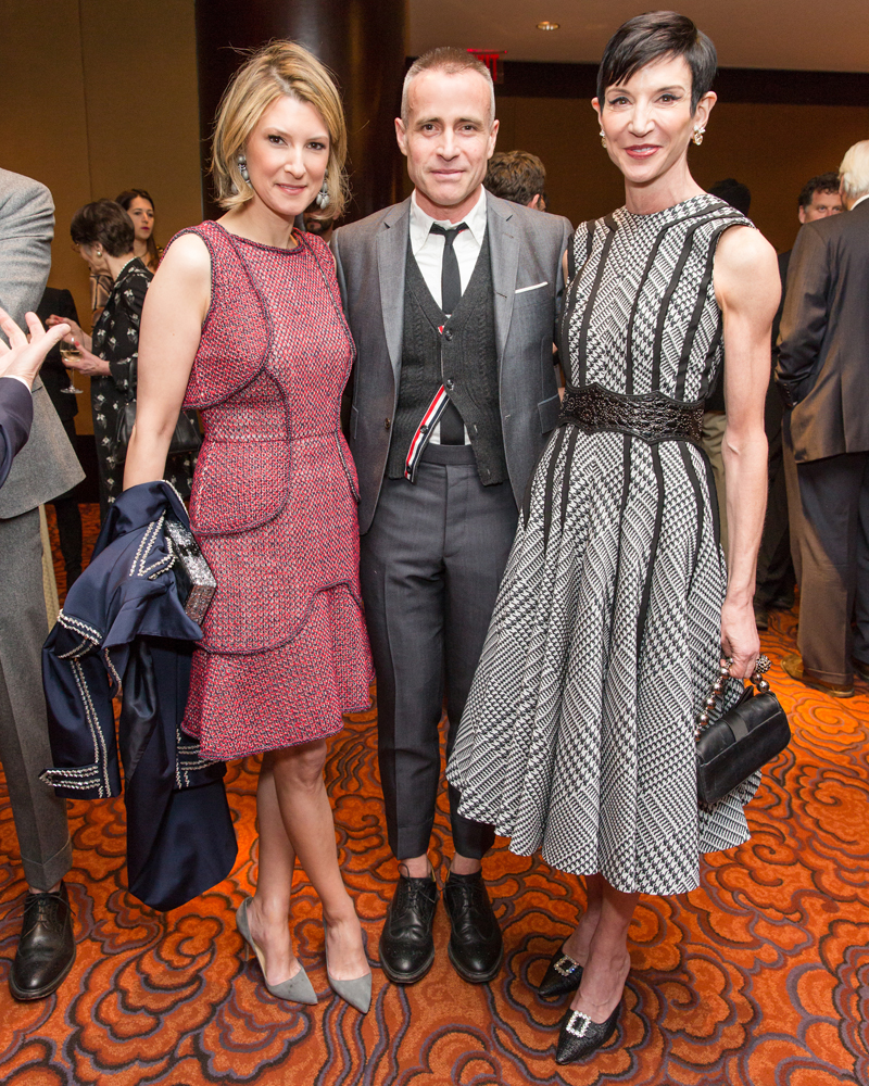 Last night, one Brit honored another at The Mandarin Oriental when Anna Wintour presented her friend Andrew Bolton, the curator of The Costume Institute at The Mey and beau of Thom Browne, with the Vilcek prize in fashion at the 10th annual Vilcek Foundation awards dinner. The prizes are awarded annually to immigrants who have made lasting contributions to American society. (We don’t think Bolton being named one of New York‘s 50 sexiest New Yorkers in 2003 had anything to do with this, but we can’t confirm.) The evening also honored some emerging talents. with the 2015 prizes for Creative Promise, which went to Siki Im, Natallia Pilipenka, and Tuyen Tran. This honor supports young immigrants who have already demonstrated exceptional talent early in their career. The evening brought out the likes of foundation founders Jan and Marica Vilcek, Lizzie and Jonathan Tisch, Julie Gilhart, Cecilia Dean, Keith Baptista, Bon Duke, Thom Browne, Alina Cho, Amy Fine Collins, and Baz Luhrmann.