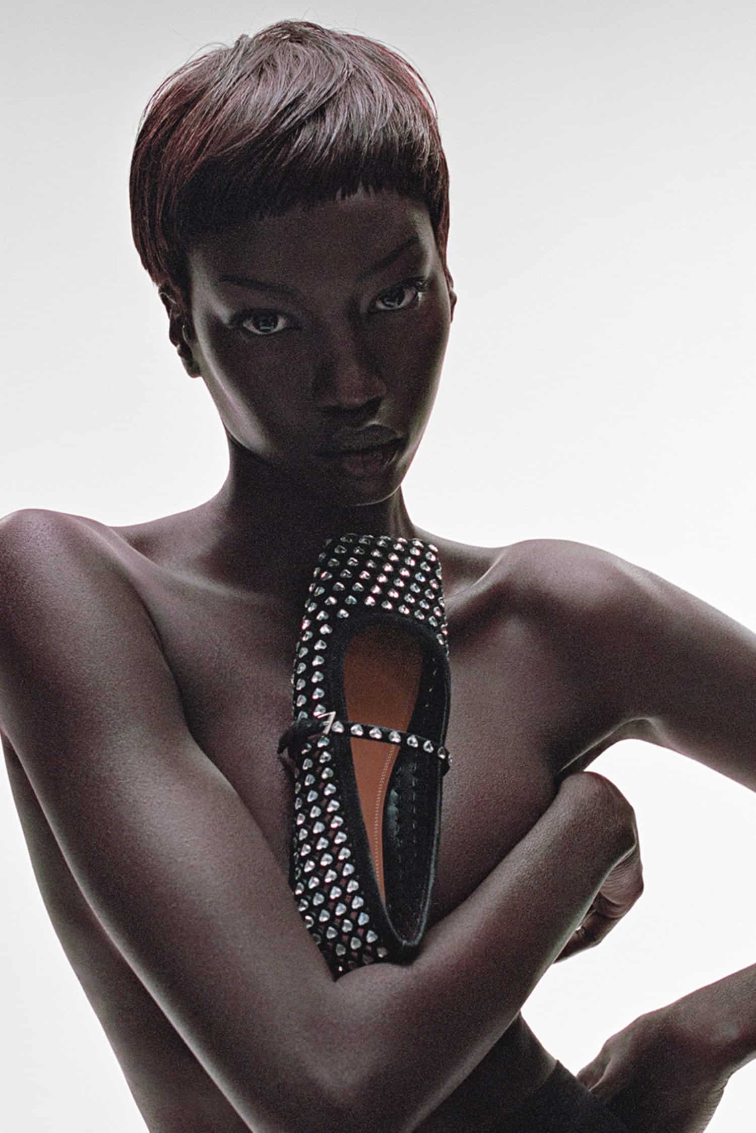 Anok Yai shines for Amina Muaddi’s Summer 2024 campaign