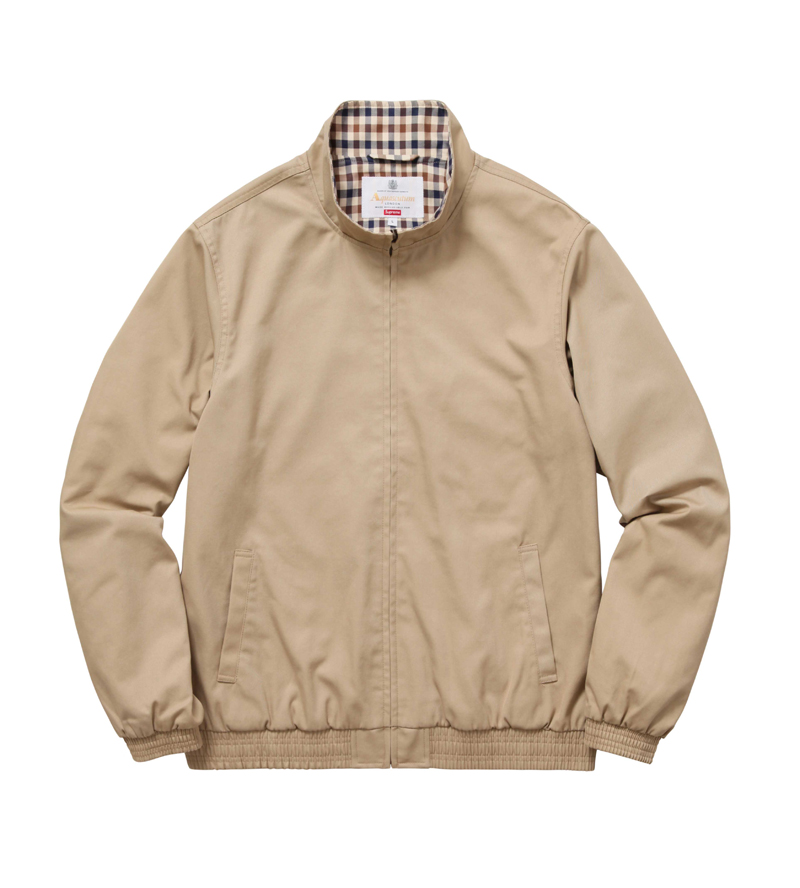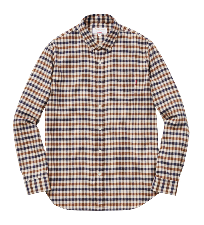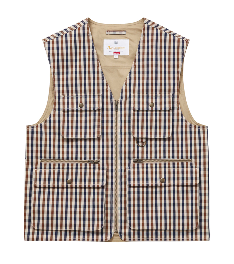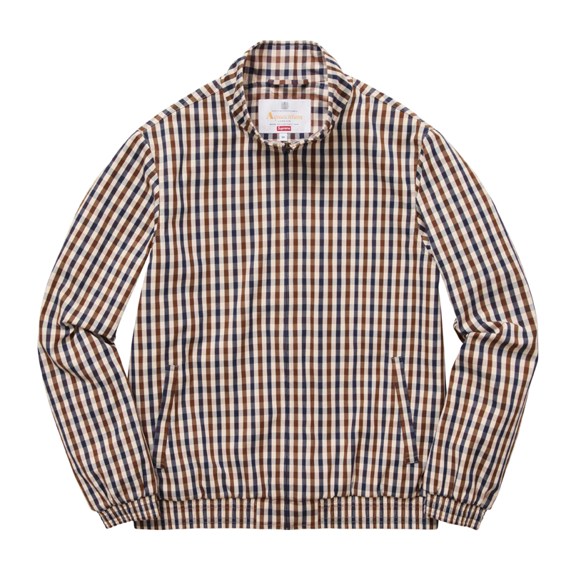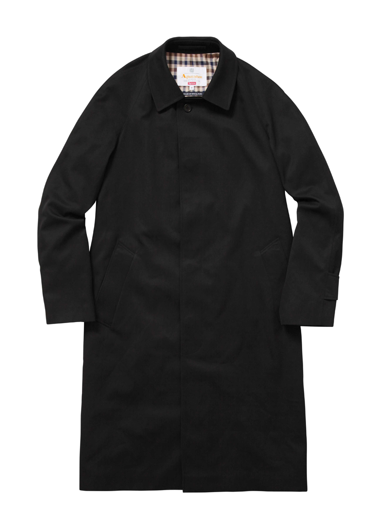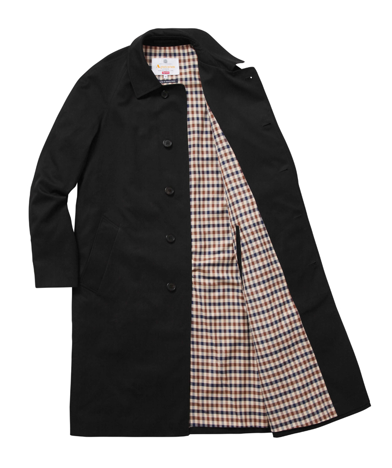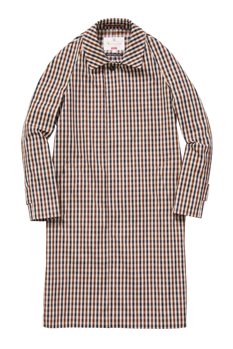 In keeping with the pervasive themes du moment, Aquascutum is merging its 165 years of British heritage brand with the 22-year-old high-end streetwear brand Supreme. Normcore meets luxury meets streetwear is taking fashion by storm, so expect this collab to be sold out in no time. The line merges Aquascutum’s iconic club check pattern, first introduced in 1976, with its history as one of the first-ever waterproof textile and trench coat companies—the brand was worn by the British military during the Crimean War, World War I, and World War II. The collection drops on Wednesday, October 12 at 11 a.m. Eastern on Aquascutum.com and in its Great Marlborough Street store (the launch time was included in the press statement, which gives an idea of how fast it’s expected to sell). The hype around Supreme’s clothing and collaborations is legendary—hoards of fans line up hours in advance to purchase new merch each time it’s out. The brand has even been known to limit purchases per person to ensure that they aren’t being swiped up and resold at a higher price.