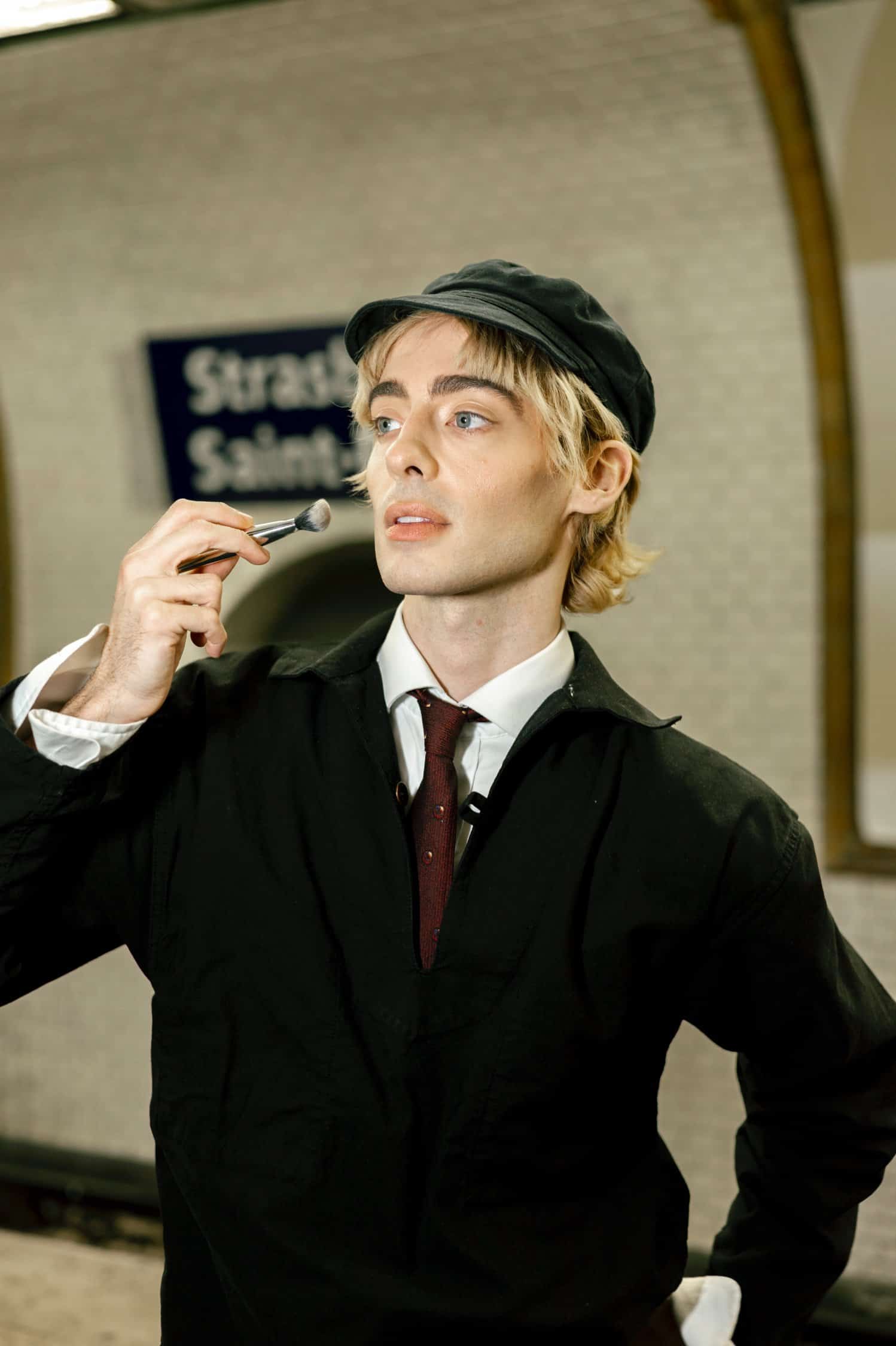 I always wore makeup when I was making videos, but it’s something I didn’t necessarily show. I would do it as incognito makeup, just getting camera ready. As I was entering the beauty space, I found it very monotonous—it was a lot of the same content in the same format. The multiple layers for me is, I’ve always had social anxiety, and battling with that has always been a challenge. This really threw me out into hot water, like, “What’s the thing I want to do least right now? Go into the middle of the street and put on makeup.” I thought, not only would it help me evolve personally, but it would shake things up and inspire people. Normalizing makeup for men is another aspect of it—that’s why I started doing “Get Ready With Me” videos for the office. That’s why I chose the metros, the tubes—”subways,” as you would say in New York!—and London Bridge, Piccadilly Circus. I put myself in a suit, and it was like, “get ready with me for work,” because I wanted it to be as if it’s just another step in my morning routine on the way to work. You can see commuters passing by behind, and the community in the metro, in the subway. In the middle of it all, I put this misplaced display to create a focal point of exposure. People passing by, if they had never seen a guy doing their makeup, would be like, “What?” Even if they thought it was crazy or weird or whatever they thought, I’m sure they would talk about it or tell someone. The intention was that it would create conversation as a starting point to normalizing makeup. I filmed the first one in London. It was the 16th of April, 2024—I just went to check! I was insanely nervous; the first one was really, really, really hard. It felt crazy and breaking the ice—it was just wild! But I knew that that’s how it would feel, and it was a personal challenge.