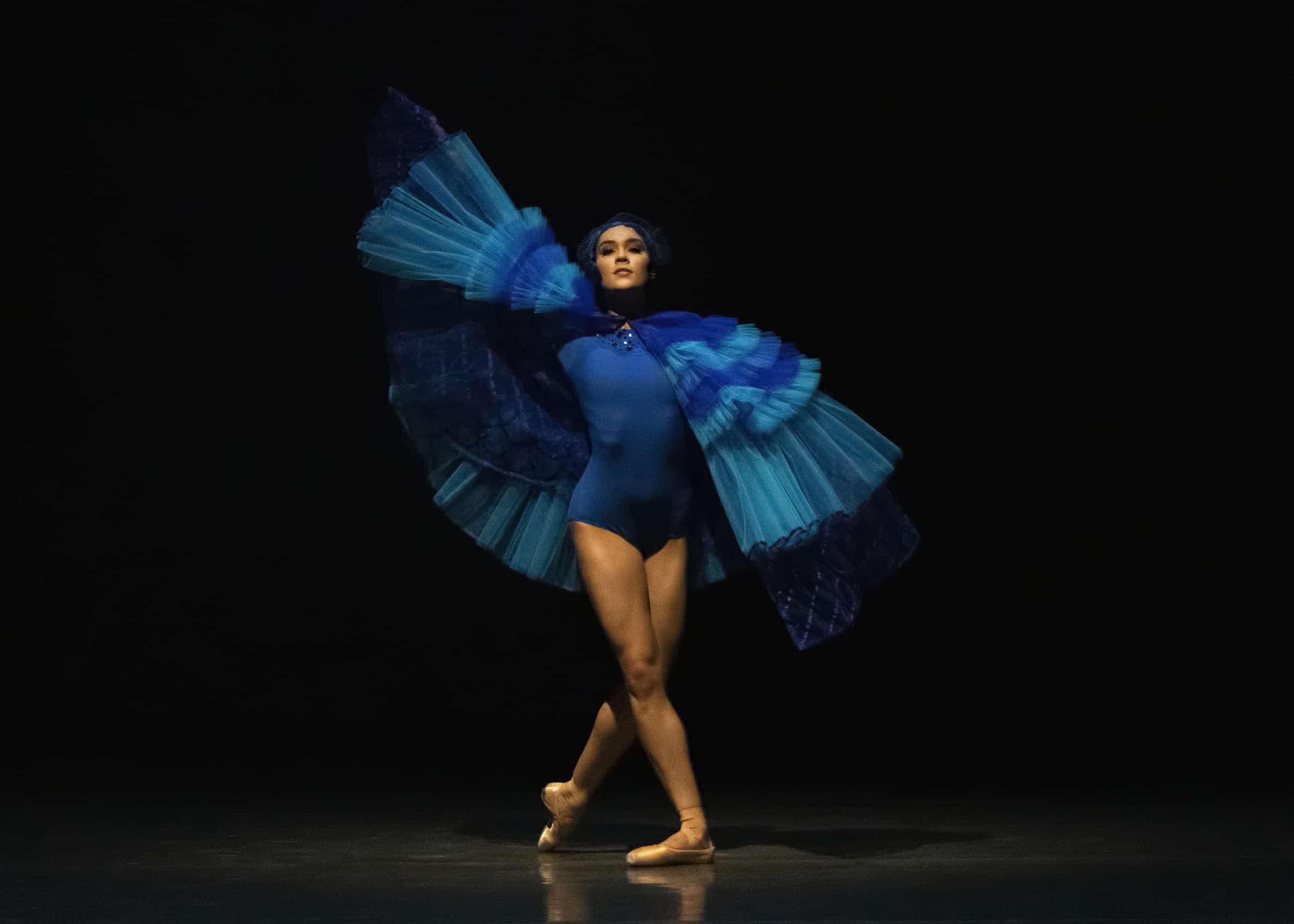 - Mira Nadon in “Suspended Animation” (World Premiere), Choreography by Sidra Bell, Costumes by Christopher John Rogers, Costumes supervised by Marc Happel, Music by Nocholas Britell, Oliver Davis and Dosia McKay, Lighting by Mark Stanley. New York City Ballet, Fashion Gala, Thursday, September 30, 2021, David H. Koch Theater, Lincoln Center. Credit Photo: Erin Baiano