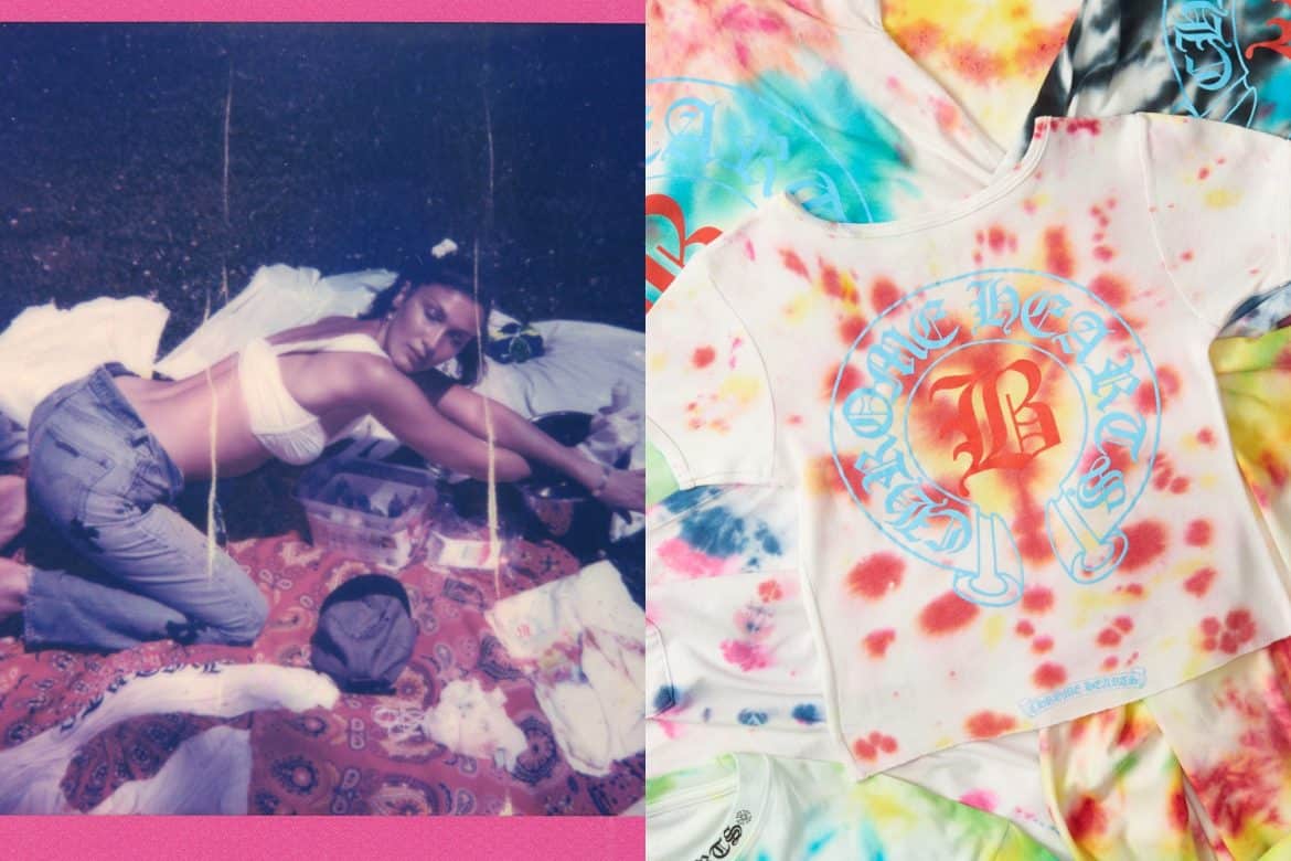 Going gung-ho with a literal hands on approach, the supermodel has hand dyed a collection of Chrome Hearts x Bella ‘Baby Tees’ and Classic Tees, including long-sleeve and short-sleeve styles. All proceeds from the collection will go directly to Feeding America; the nationwide nonprofit that feeds more than 46 million people through food pantries, soup kitchens, shelters, and other community-based agencies.