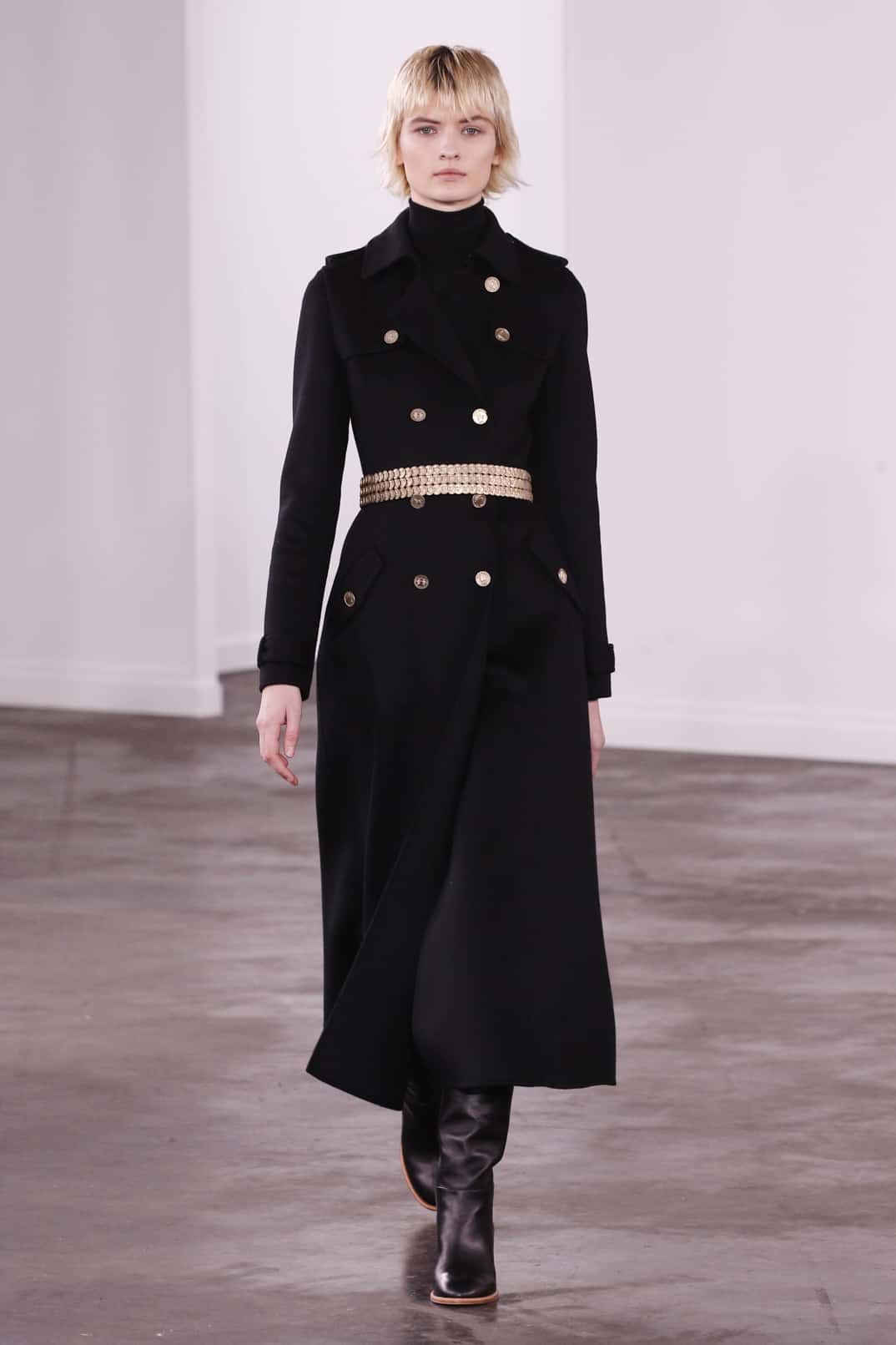Brandon Maxwell presented his Fall 2019 collection with an intimate show at the Penn Plaza Pavilion in Midtown Manhattan. The collection continued to build on his brand’s defining aesthetic of streamlined silhouettes and nipped-in waists, which paraded down the runway in a monochromatic color palate with pops of neon green and candy apple red. That is not to say Maxwell didn’t shake things up a bit. Though he has long favored fit and tailoring over flashy prints and embellishment, this season he dressed things up a bit with subtle details like zippers and fringe.