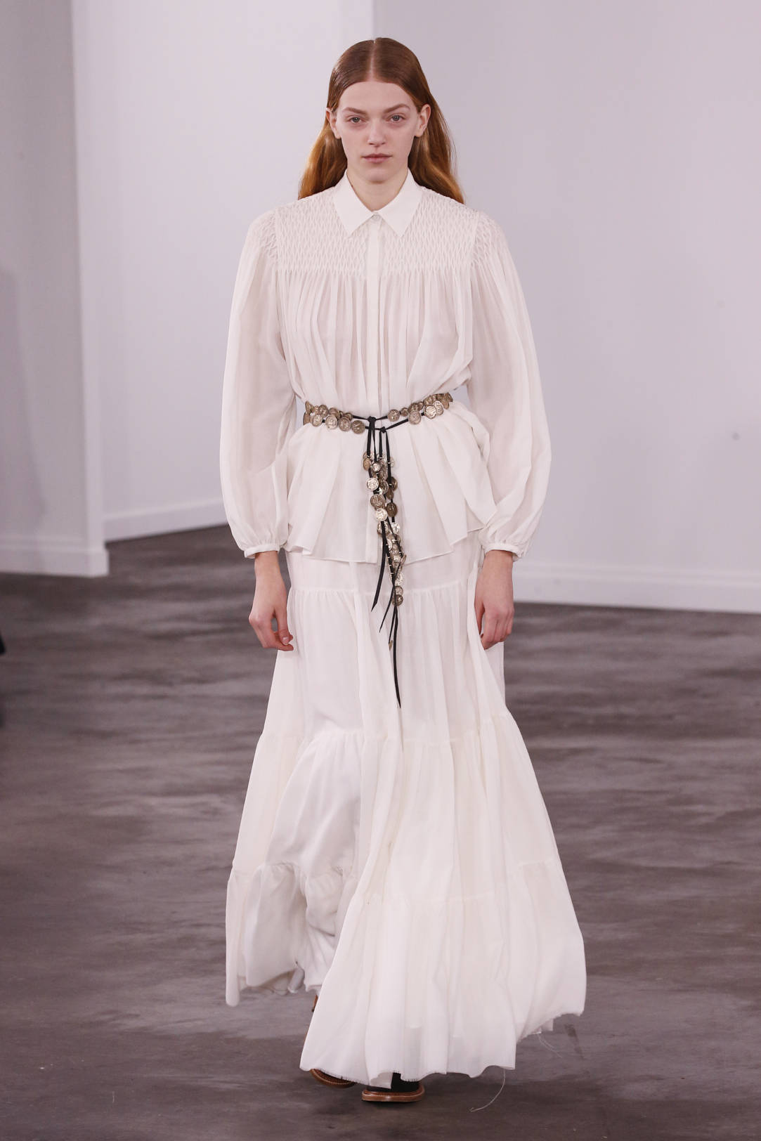 Gabriela Hearst’s refined, if stoic, Fall 2019 collection highlighted the tailoring that has made the designer a star. This season she was inspired by the life of Russian ballerina Maya Plisetskaya. “The abundance of inspiration from Maya’s remarkable and resilient career is a creative team’s bounty,” Hearst said in a statement. “She grew up in one of the most oppressive and murderous regimes in history. Her childhood was full of trauma; her father was assassinated by Stalin, leaving the family with the mark of ‘enemy of the people.’ Her mother was incarcerated in the Gulag with a newborn infant for refusing to betray her husband.” The designer’s biggest strength this season was in the smallest of details — she used replicas of Uruguayan coins for buttons, and recycled cashmere was used in an effort to reduce the collection’s environmental impact.