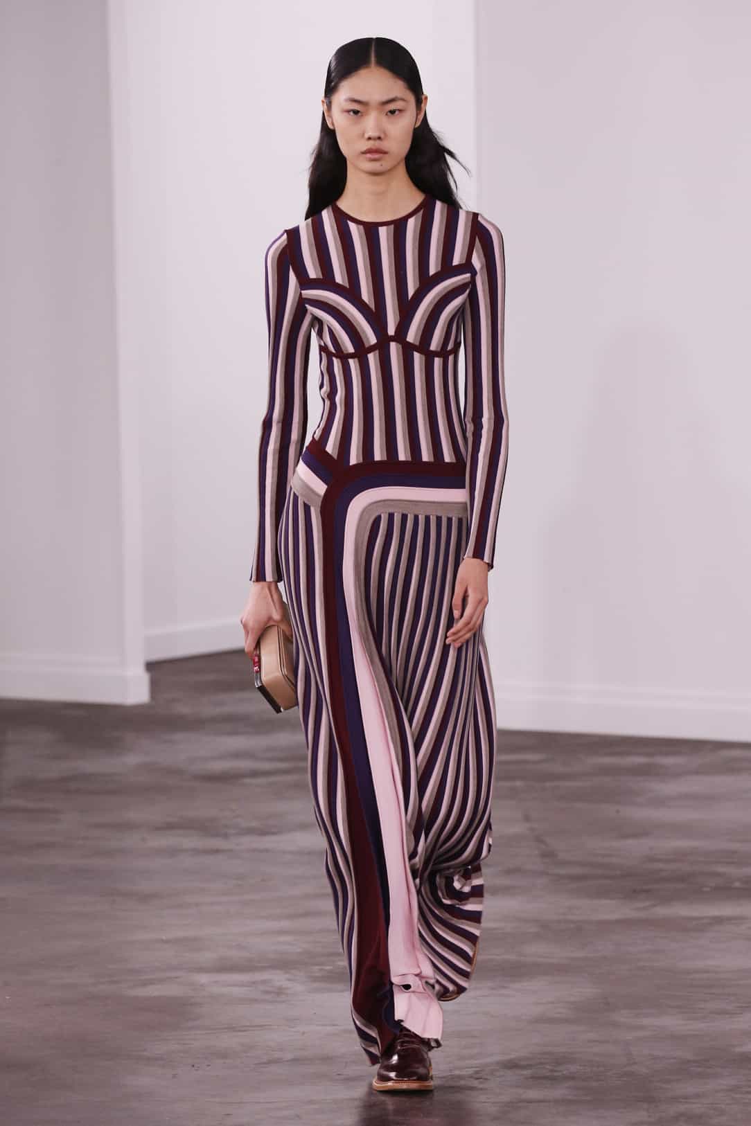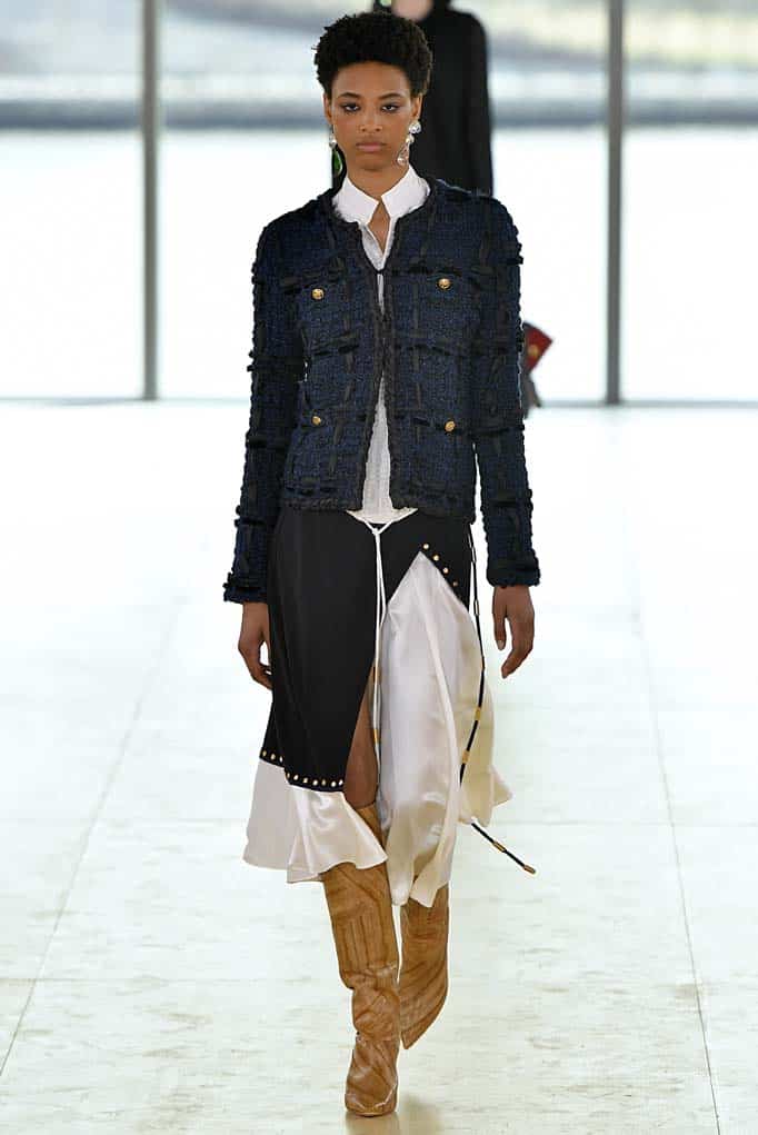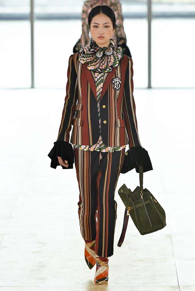 For Fall 2019, designer Tory Burch took particular inspiration from Black Mountain College, which, founded in North Carolina in 1933, is known for its unconventional approach to education and for shaping the trajectory of modern art in America. “This season is a mix-match of revamped classics,” said Burch in her show notes. “Floral prints, graphic stripes, menswear materials and romantic silhouettes. There’s a modern eccentricity to raw fringe, exaggerated ruffles, knife pleats, cut-glass jewelry, deconstructed bags and sharp boots.” The overall look was similar to what Burch has done in the past — the designer certainly has a signature style — but that’s not a bad thing, especially not when the results are this charming.