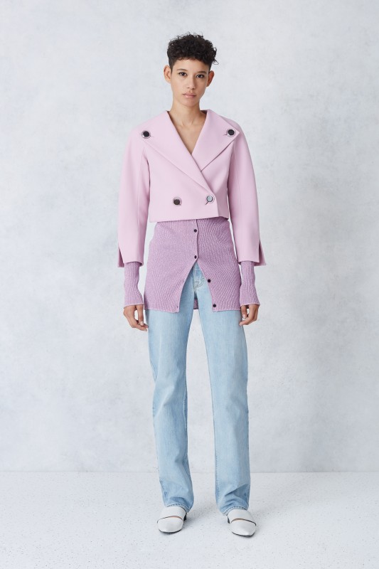Highlights: Colors and textiles drawing from a banknote design, eye-popping lavender hues, ’80s-inspired blazers, and sleek outerwear.