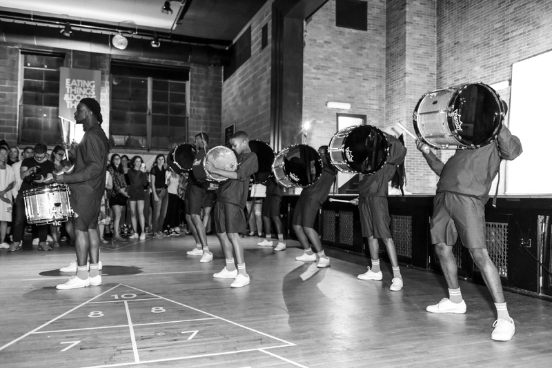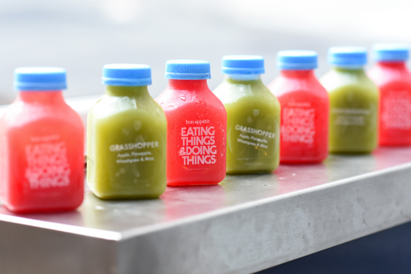 To kick things off, the Brooklyn United Marching Band provided the entertainment while Sqirl chef Jessica Koslow treated the crowd to popcorn with fermented elderberry salt and Chinese food boxes containing sorrel rice bowls with marinated kale, watermelon radishes, feta, and dressed yuba. This was a feast after all so there were also mini crudités pita sandwiches plus, grilled halloumi with smoked dried plums and cilantro flowers. And for desert? Mango coconut popsicles. Green juice margarita mini pouches and tumeric cocktail shots by Arley Marks were the beverages on tap and Smartwater kept the crowd hydrated.