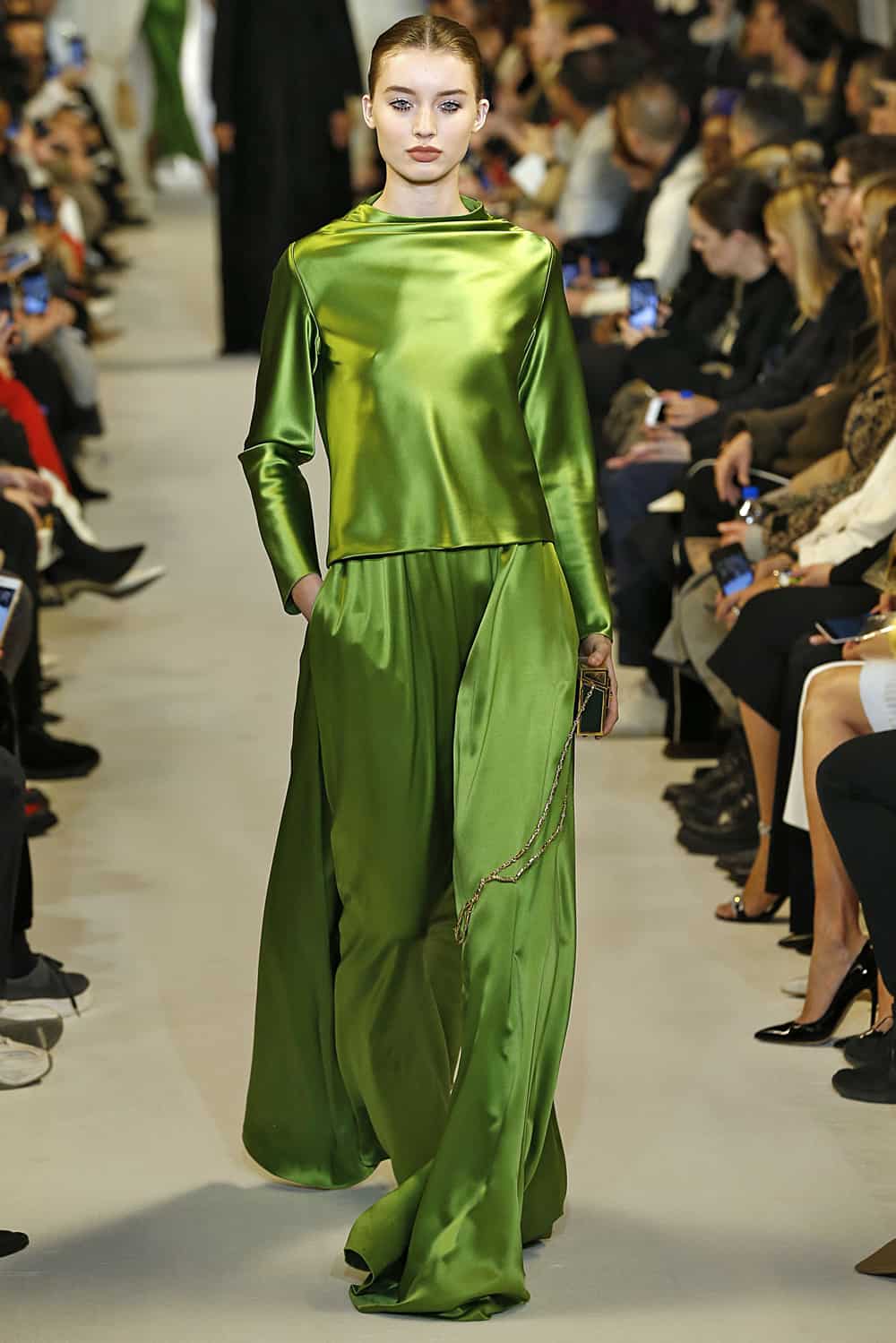 Brandon Maxwell presented his Fall 2019 collection with an intimate show at the Penn Plaza Pavilion in Midtown Manhattan. Fans of Maxwell’s work will be thrilled that the designer continued to build on his brand’s defining aesthetic — streamlined silhouettes with nipped in waists, which paraded down the runway in a monochromatic color palate with pops of neon green and candy apple red. That is not to say Maxwell didn’t shake things up. Though he has long favored fit and tailoring over flashy prints and embellishment, this season he dressed things up a bit with subtle details like zippers and fringe.