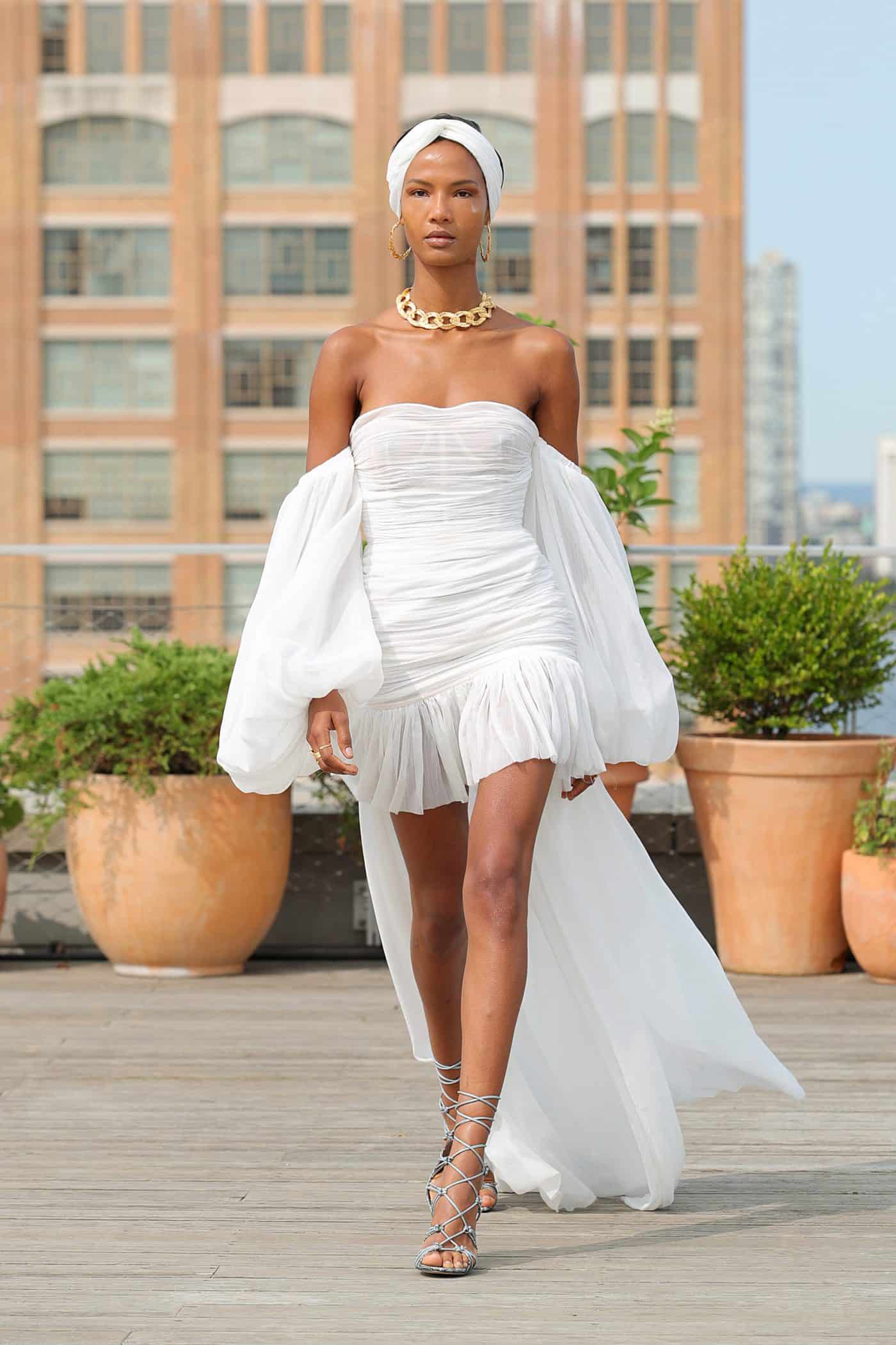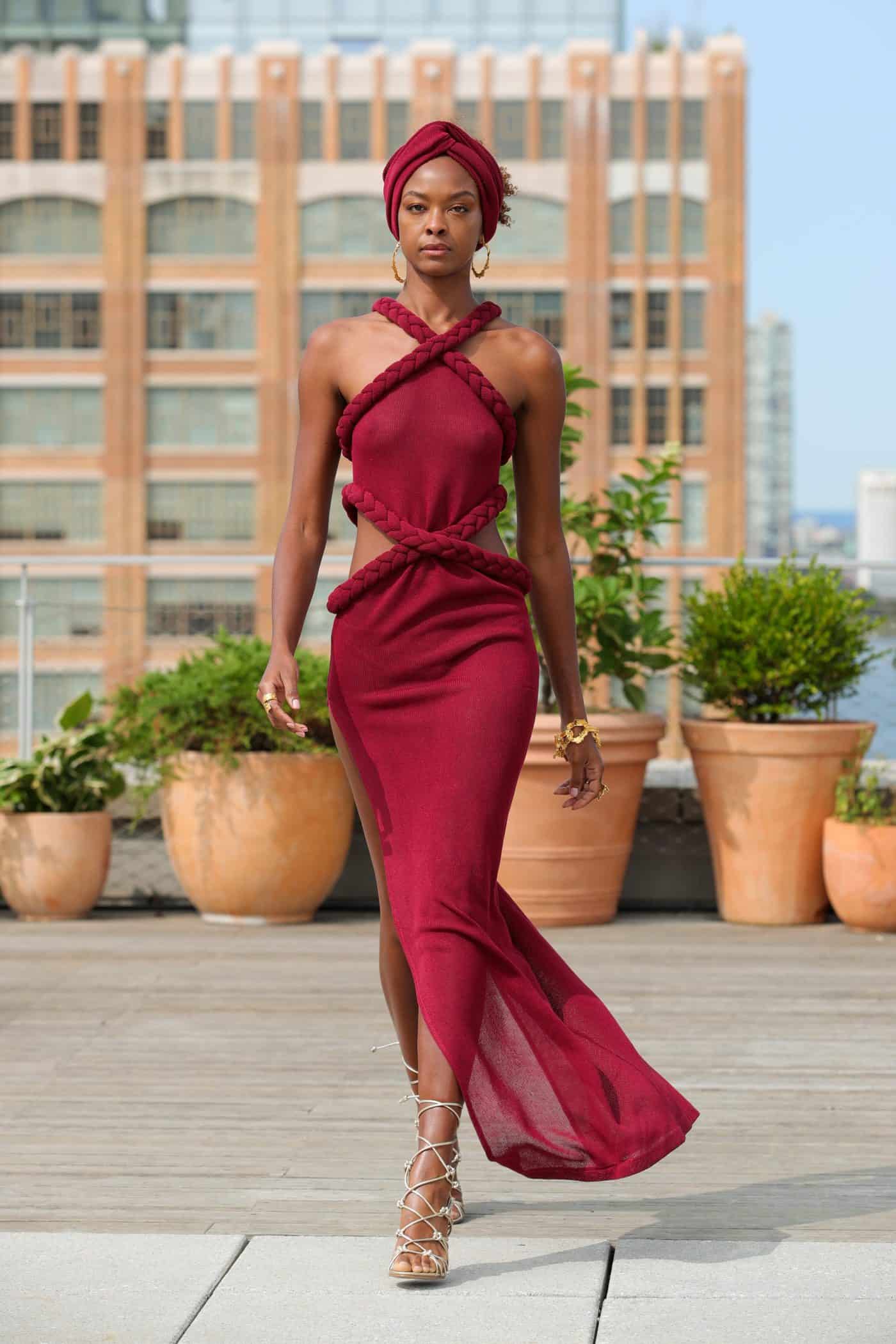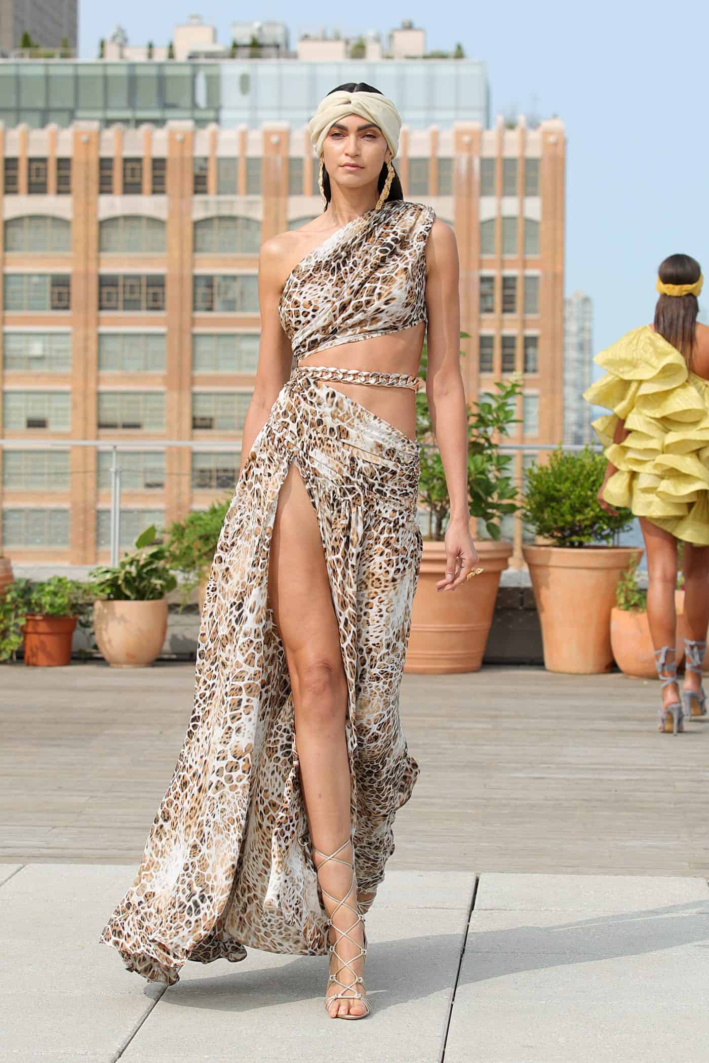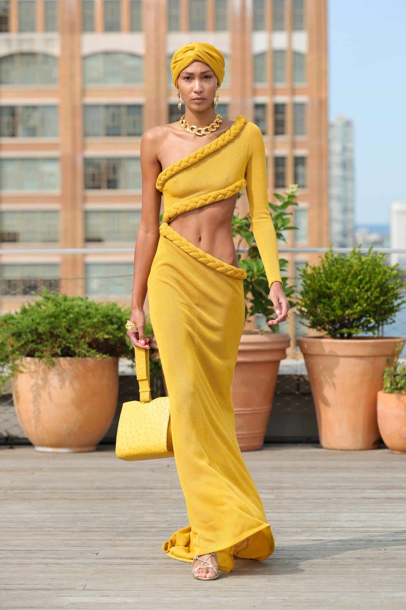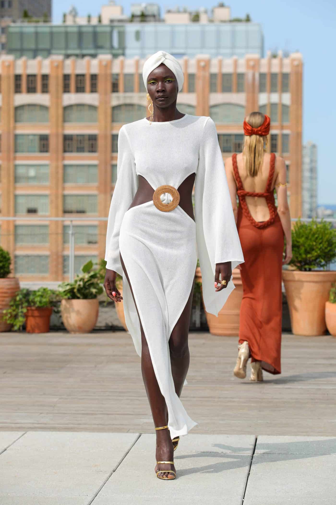All eyes were on Natalie De Banco’s slinky and sexy creations, in sky blue hues and shades of dandelion yellow, siren-worthy reds, and vermillion. The New York fashion crowd has long had a soft spot for Australian labels, and this Sydney-based brand is no exception. The collection—called The Retreat—was split into two similar offerings in distinct color groupings: the first was comprised of icy blue, white, and animal print dresses with braided detailing and NSFW cutouts. There was also beach bar-ready co-ords, tailored short suits in linen, and gowns with billowing sleeves and trains that sashayed with attitude.