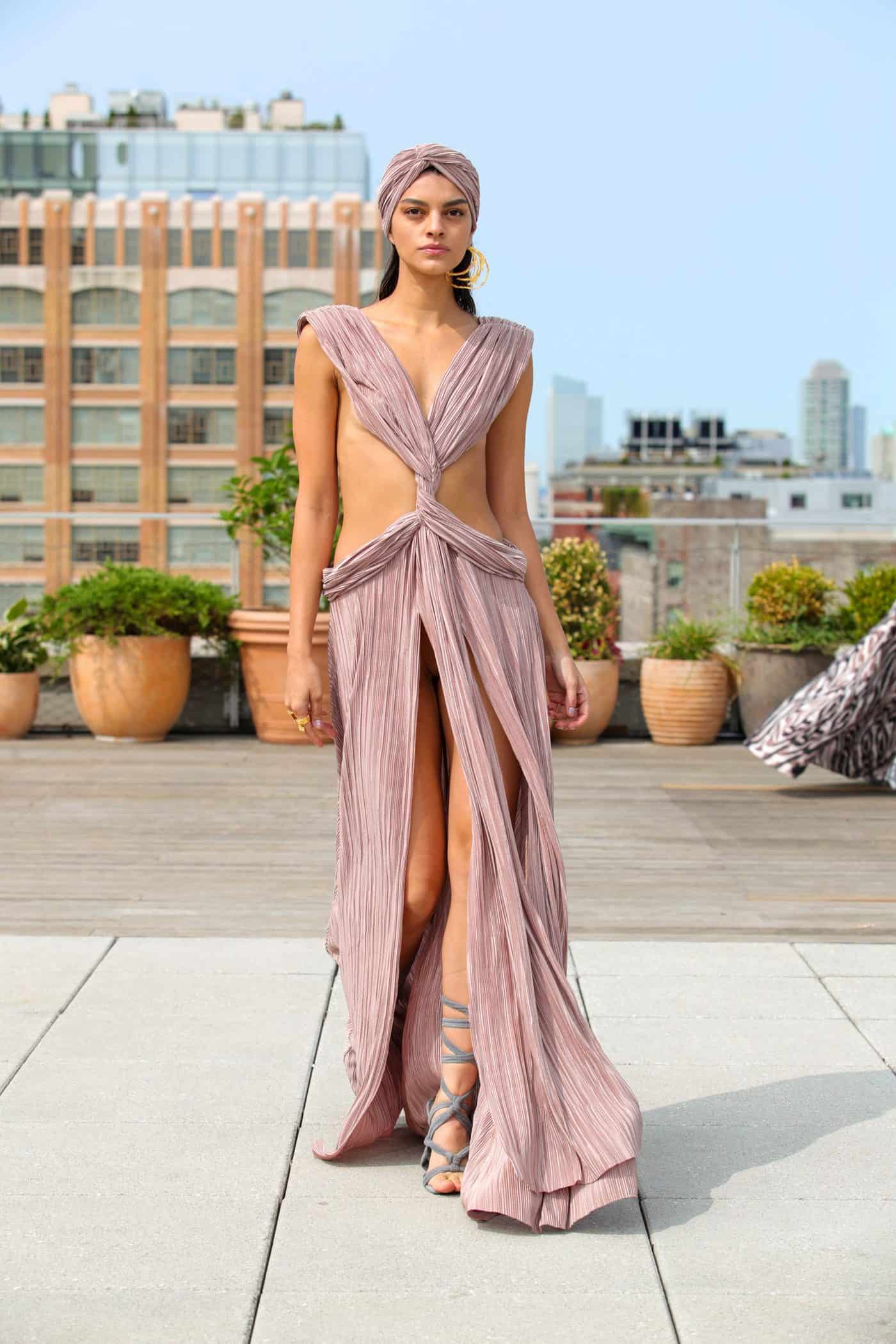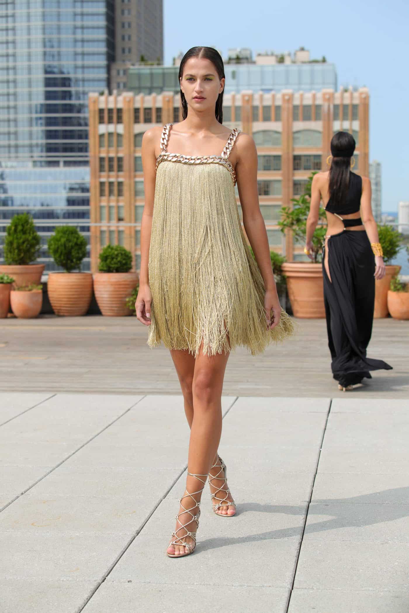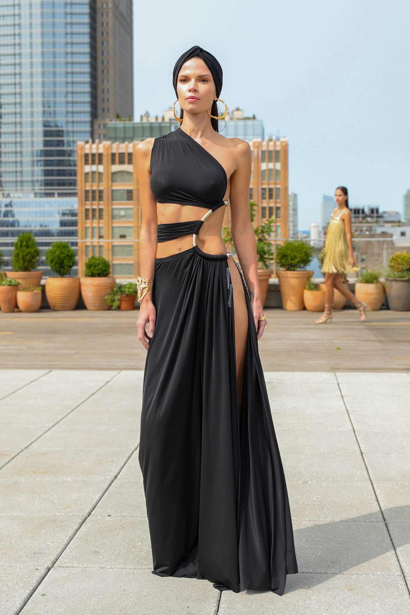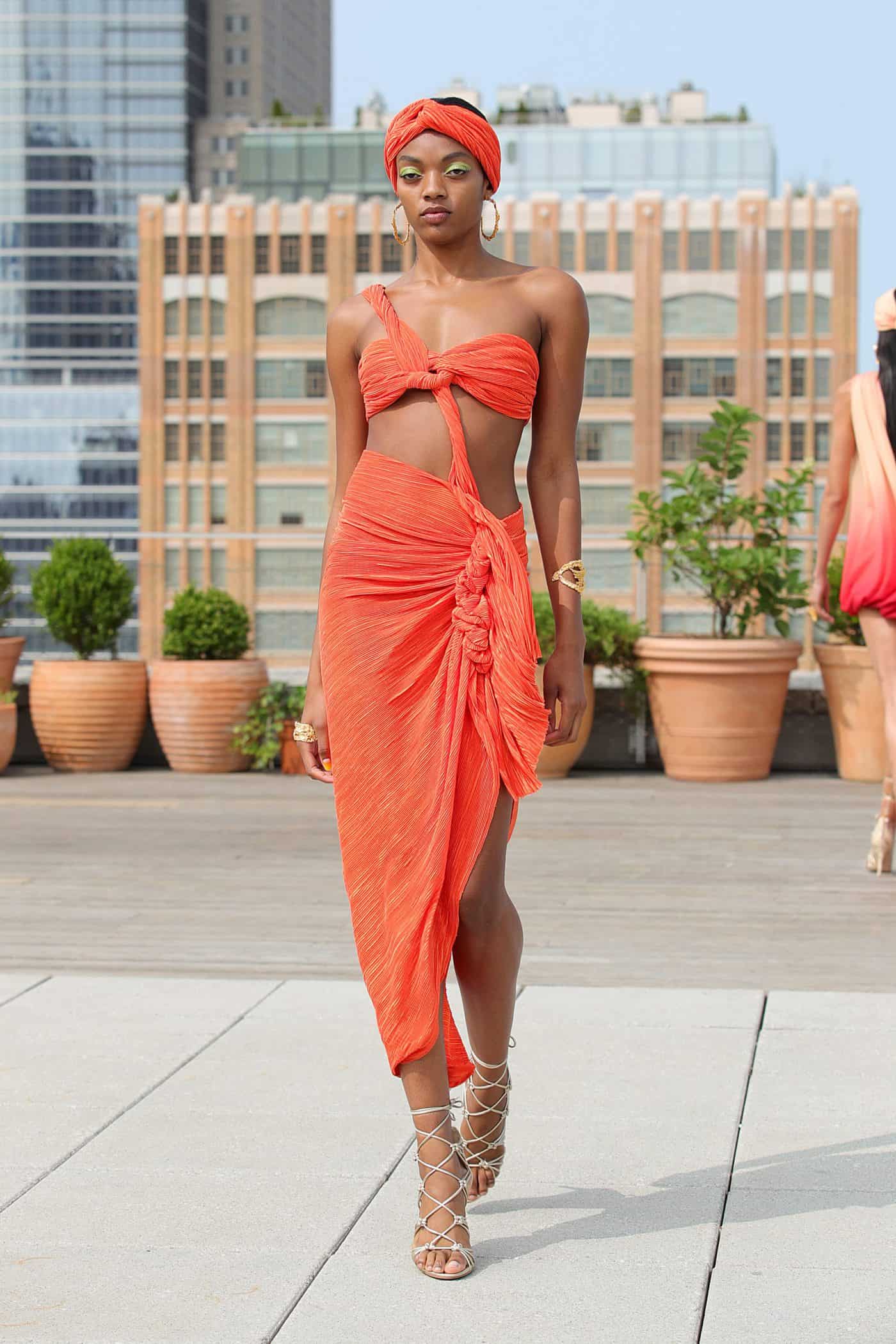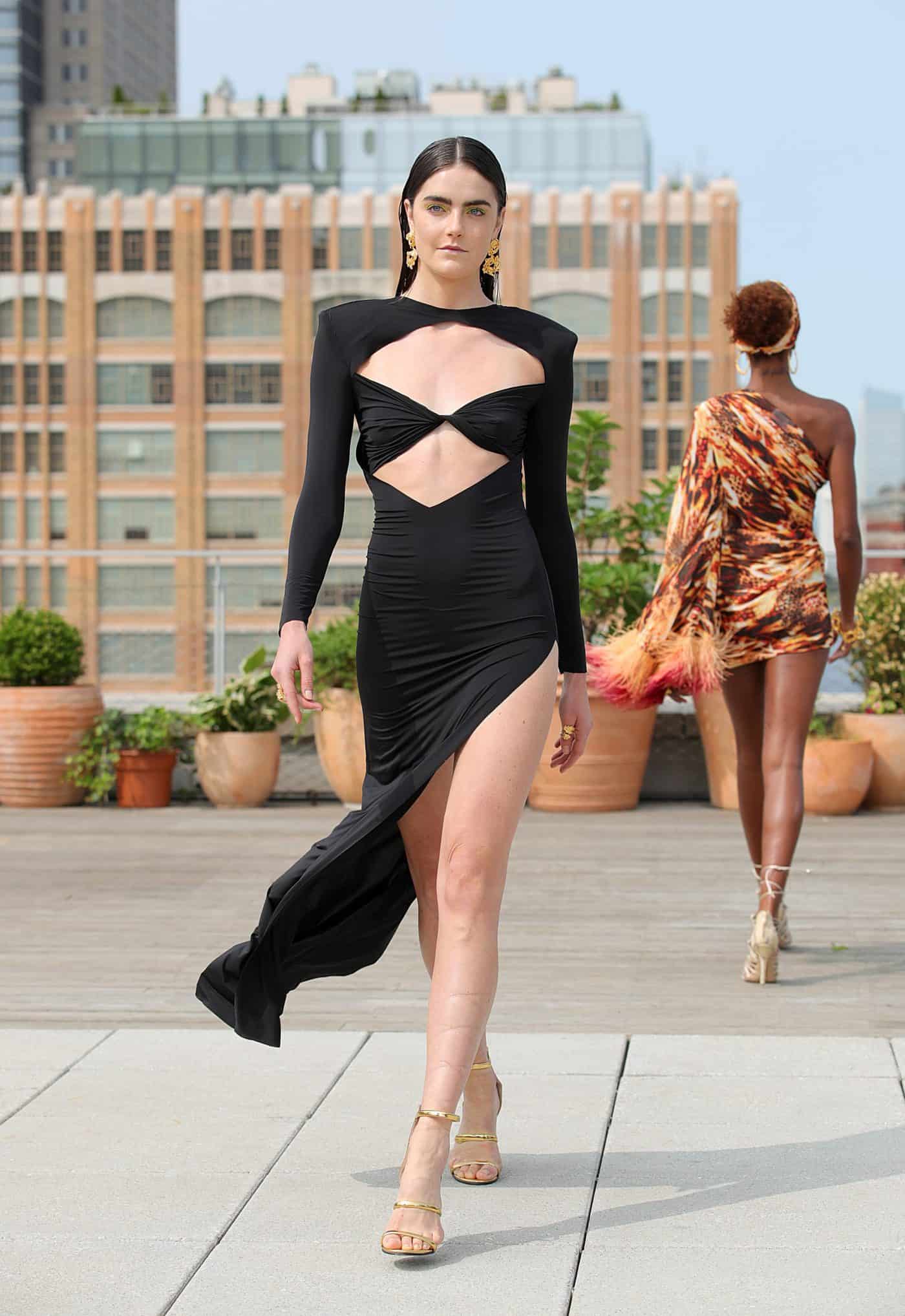 All eyes were on Natalie De Banco’s slinky and sexy creations, in sky blue hues and shades of dandelion yellow, siren-worthy reds, and vermillion. The New York fashion crowd has long had a soft spot for Australian labels, and this Sydney-based brand is no exception. The collection—called The Retreat—was split into two similar offerings in distinct color groupings: the first was comprised of icy blue, white, and animal print dresses with braided detailing and NSFW cutouts. There was also beach bar-ready co-ords, tailored short suits in linen, and gowns with billowing sleeves and trains that sashayed with attitude.