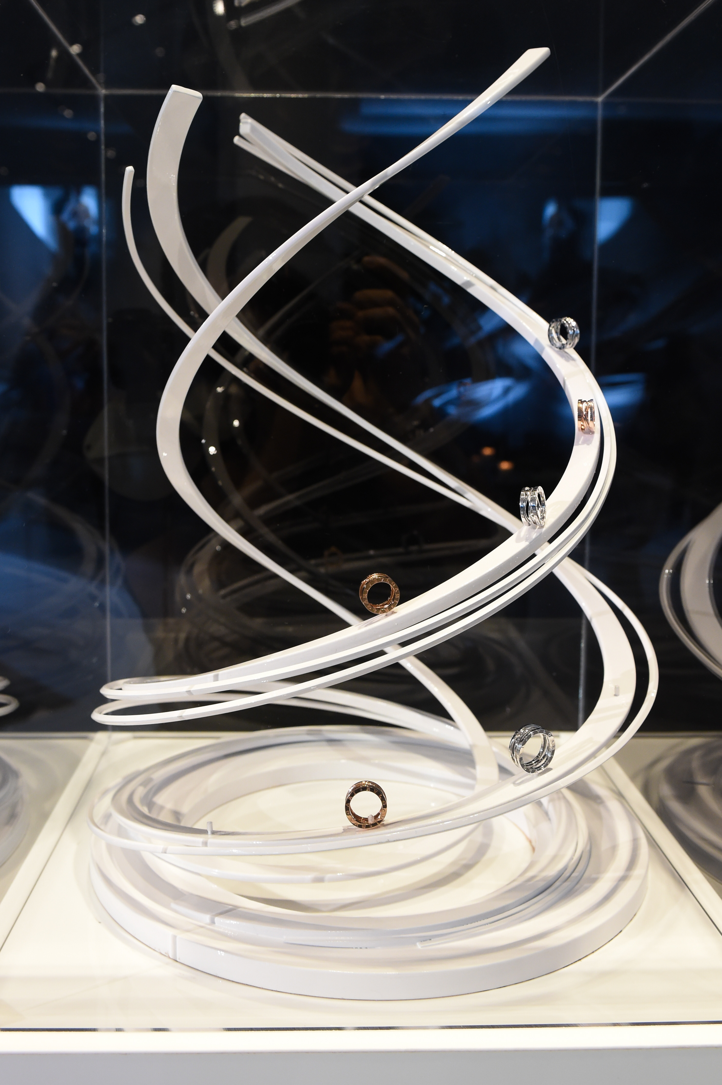 “About four years ago Zaha [Hadid] was at the Bulgari hotel in Milan and she met with our global CEO Jean-Christophe Babin at the time and they were talking about the B.zero1, which is iconic collection for Bulgari,” said Paltridge. “It was just a great moment where we thought about Zaha reinterpreting this iconic collection. You know, the B.zero1 is inspired by the Colosseum in Rome, which in terms of architecture is the opposite end of what Zaha is known for, but is still a really iconic piece of architecture so the two things came together in the end. Two or three years later we’ve come out with the collaboration, which fits beautifully together.”