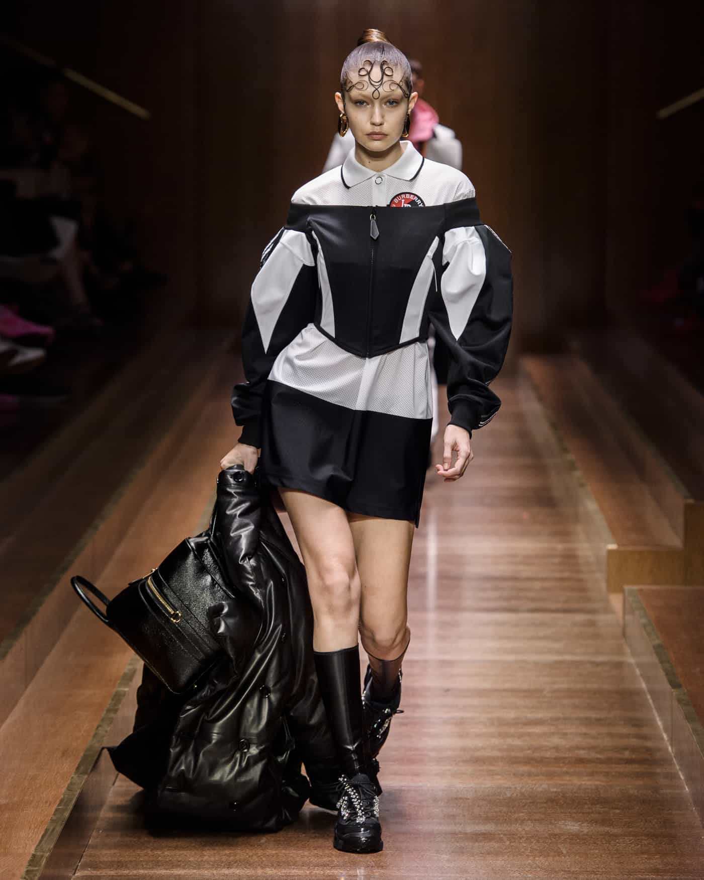 “I have been thinking a lot about England as a country of contrasts, from the structured to the rebellious and free, and I wanted to celebrate how these elements coexist,” Riccardo Tisci said of his second Burberry collection.”Contrasts” were indeed a major part of the season for him, as the designer essentially presented two collections at once: the lady and the gentleman. The first half of the show was fashion-forward streetware. Tisci played with sportier, more youthful styles that showcased his personality as a designer.