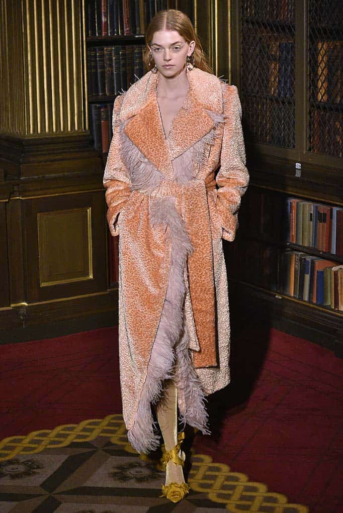 The late 1970s were back in full force at Peter Pilotto. Feathers, flowing satin dresses, and streamlined suits in bold textiles were among the biggest takeaways from the collection. It was a reminder of how much fun fashion can be when you add a little pizazz.
