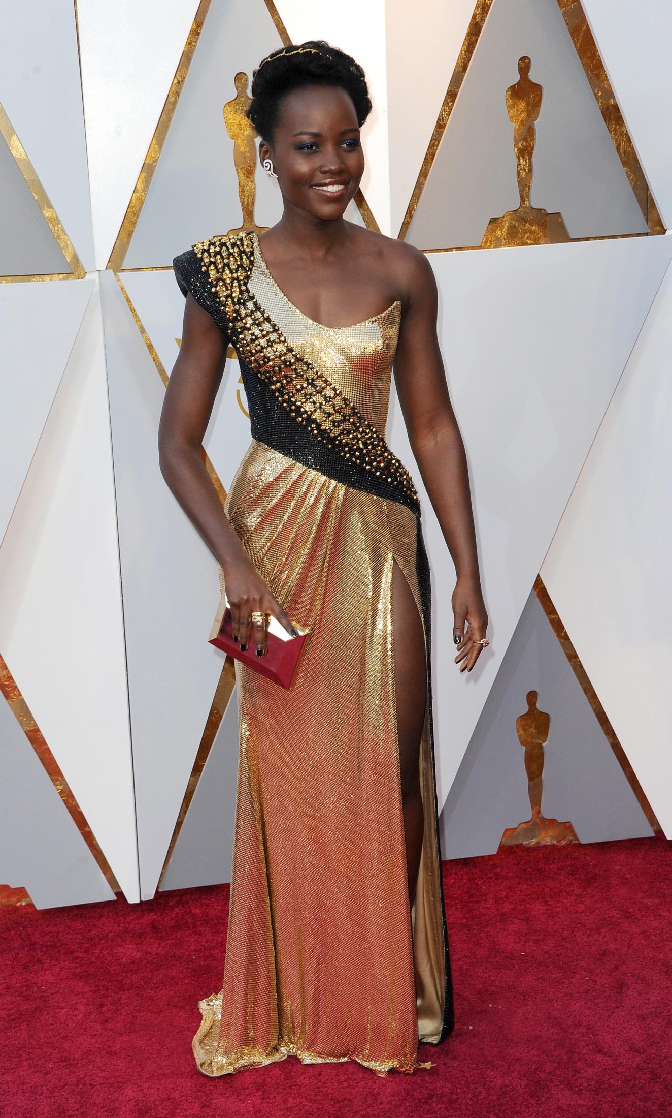 - Lupita Nyong’o in customer atelier Versace at this year’s Oscars (Shutterstock)