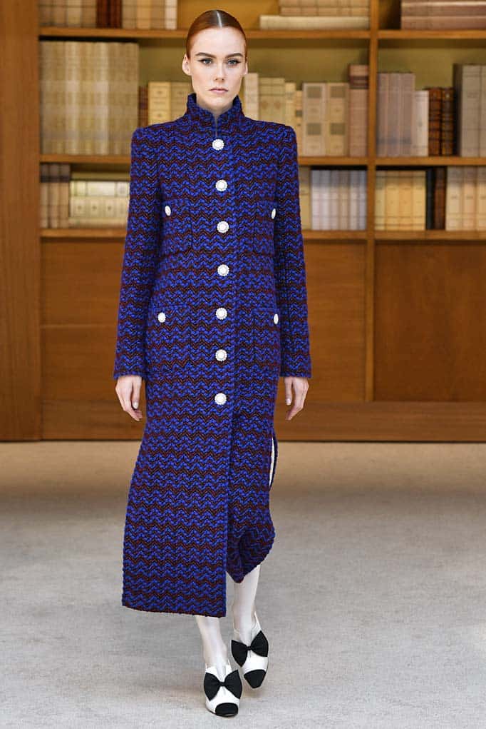 Virginie Viard, Karl Lagerfeld’s successor at Chanel, presented her first couture collection in Paris this morning. The show was set in a grand library, but the collection itself was rather modest. Many of the house codes were present — tweeds, boxy silhouettes, patch pockets — but Viard exhibited a restraint that, at times, felt a little dull.