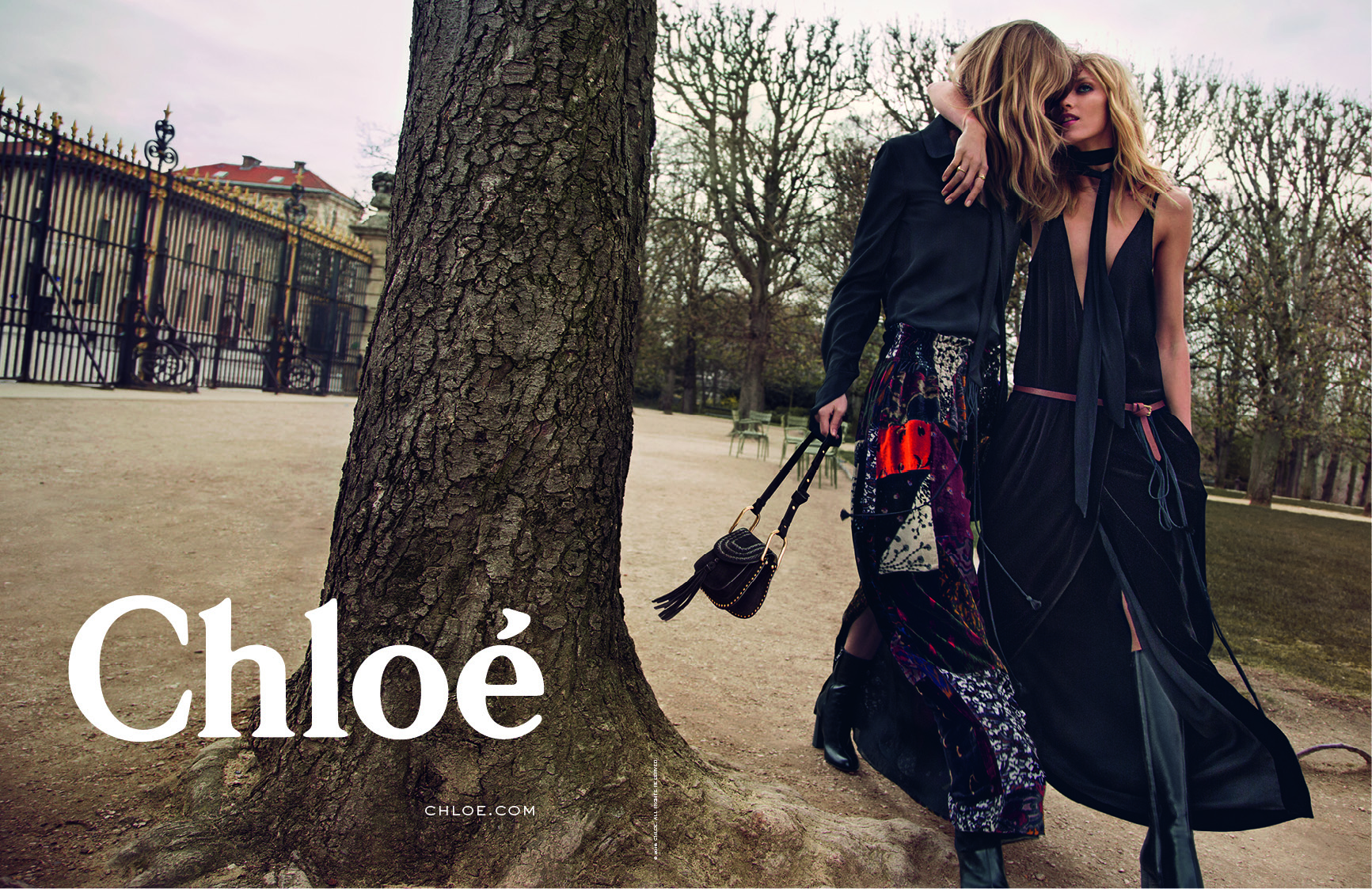 Chloé debuted their fall 2015 ad campaign featuring Anja Rubik and Julia Stenger strolling around the Luxembourg Gardens in Paris in the French brand’s signature flowy dresses. The campaign this season was meant to be a tribute to friendship in honor of Chloé’s history in which, founder Gabrielle Aghion, borrowed money from a friend to launch what was to become an iconic fashion house. Aghion lived to the age of 93 and died last September 27th, just before Chloé’s Spring 2015 show.