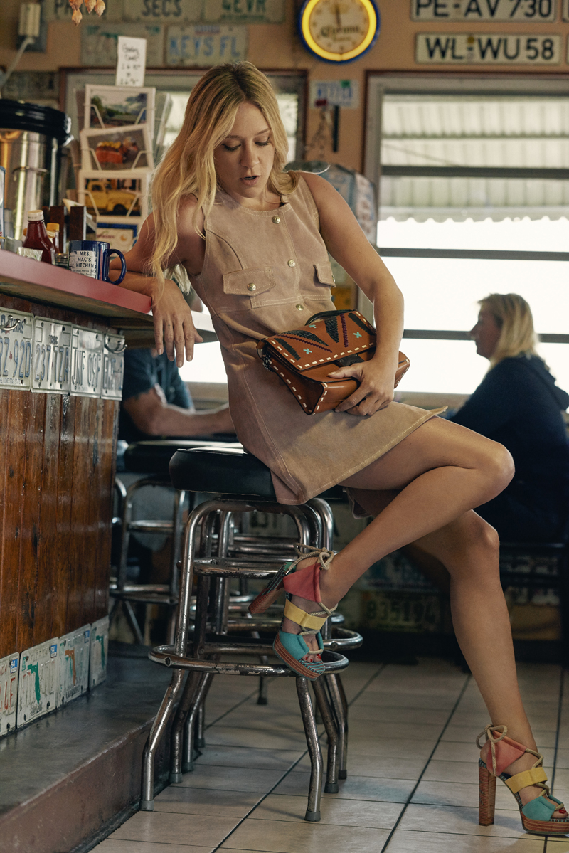 “Chloë reflects the edgier more daring side of the Jimmy Choo woman,” said creative director Sandra Choi. “I love the fact that she’s a bit unexpected and has such a unique and creative aesthetic making our collection work with her style. The shoot embodies the spirit of the Spring Summer collection, laid back glamour against a sultry, sun bleached backdrop of palm shadows and pastel shades. You can almost feel the sun on your skin.” The collection’s balmy flair worked perfectly in the Florida Keys where Sevigny was on set filming the second season of the Netflix drama, Bloodline. Sevigny also sat down for an interview with the brand to discuss road trips, her style, influences, and her favorite pair of Choos, of course! See below for a few excerpts.