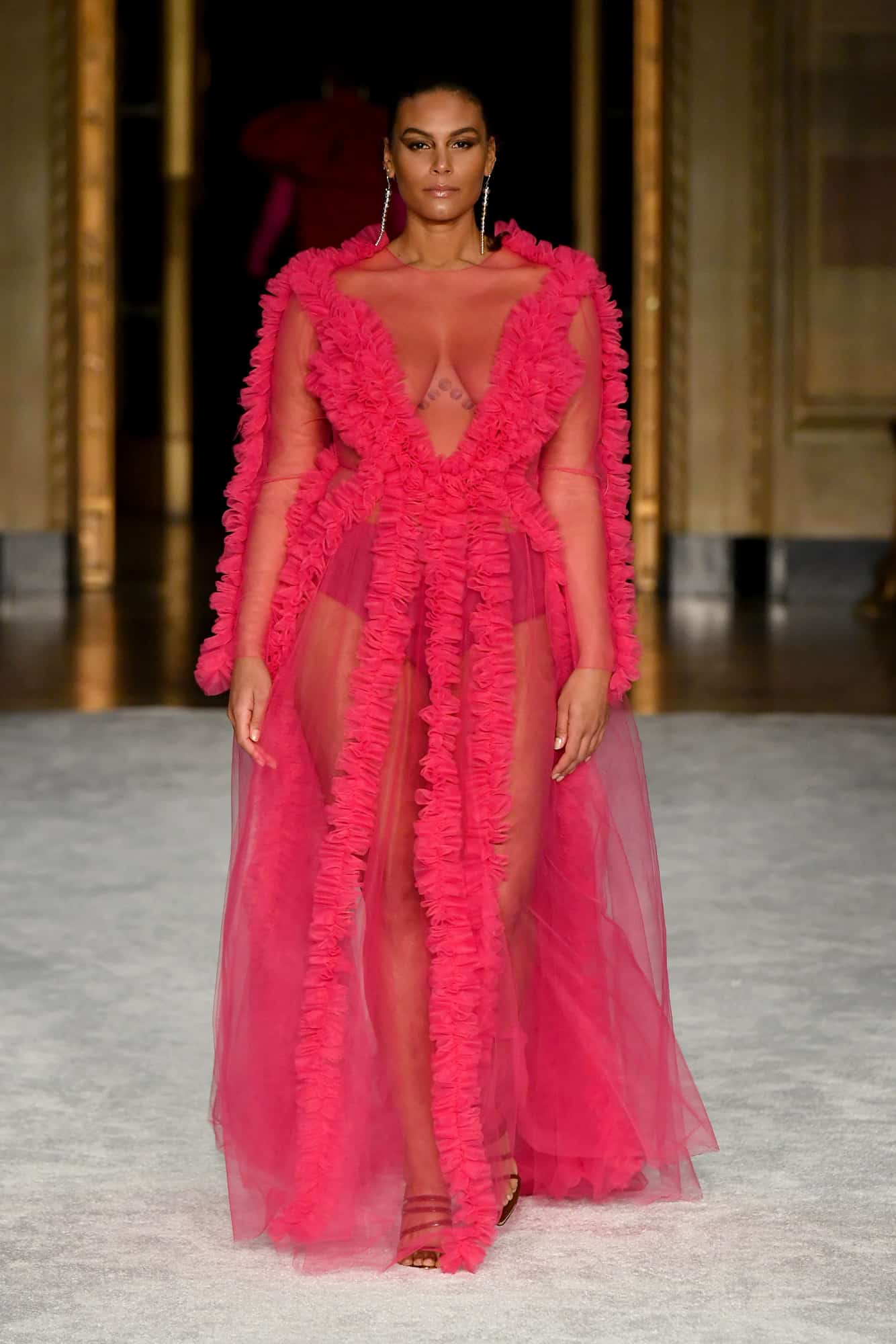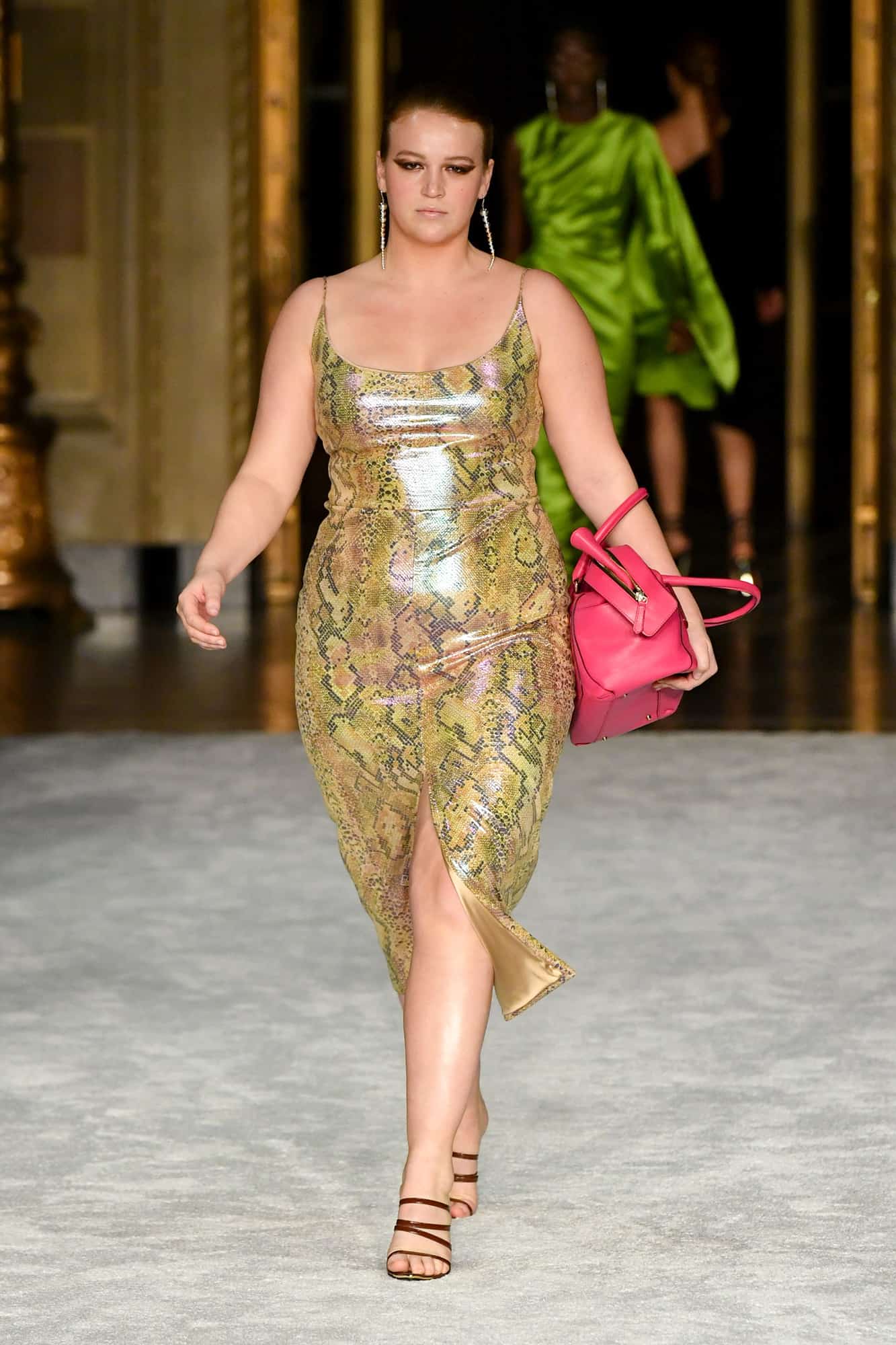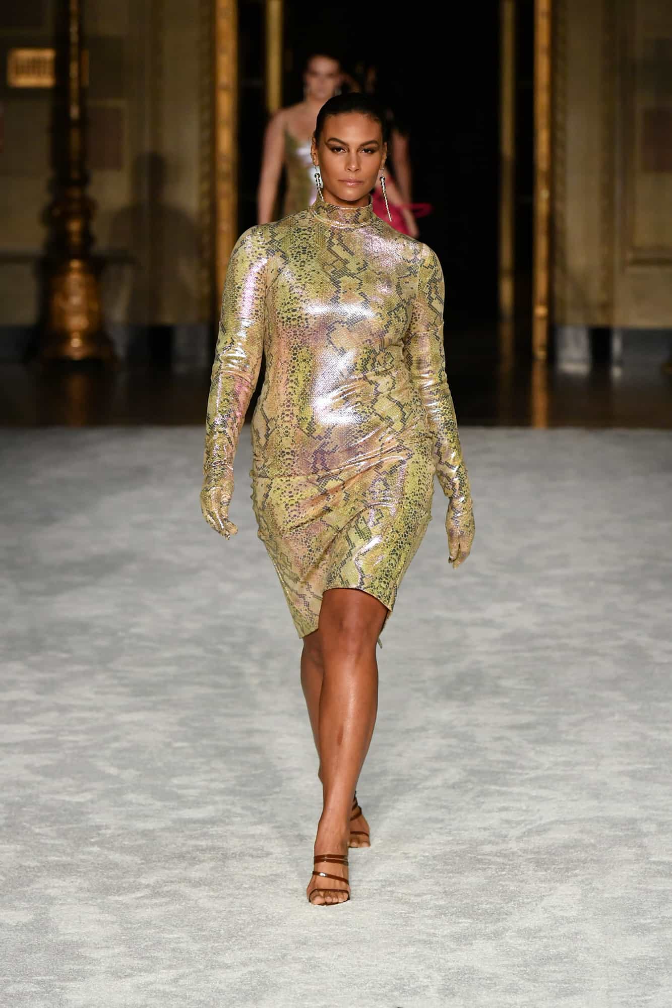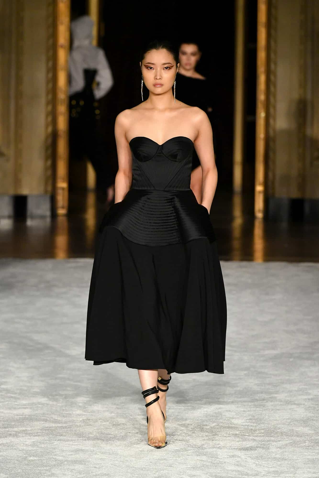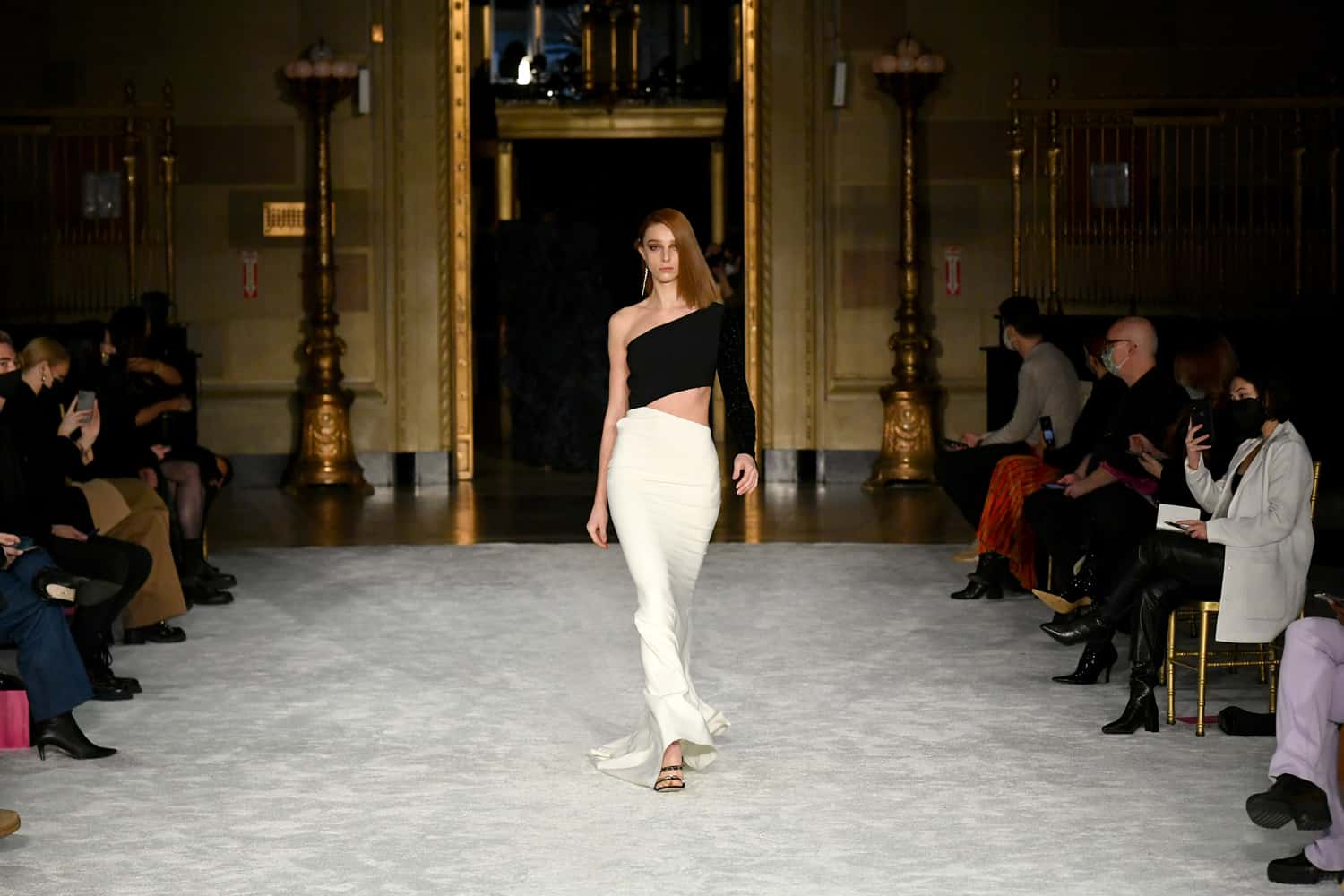 Lights, camera, action! The missing energy of NYFW was back in a big way yesterday evening—household name models, an editor-filled front row, and random runway props whose purpose would soon become clear once the music kicked in—thanks to Christian Siriano. At his favorite venue, Gotham Hall, a small, socially-distanced audience gathered to once again feel what has been missing in the absence of traditional fashion shows.