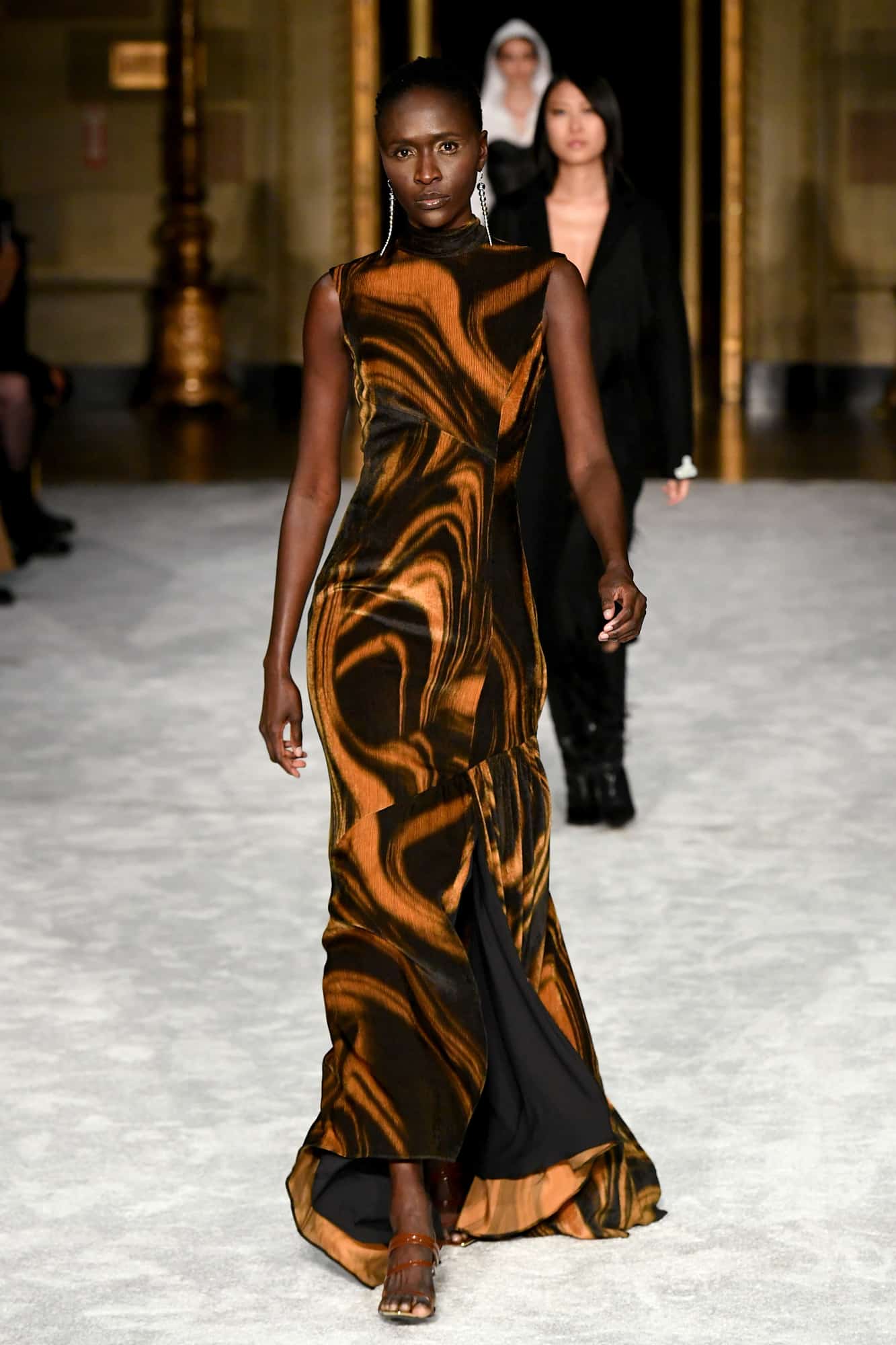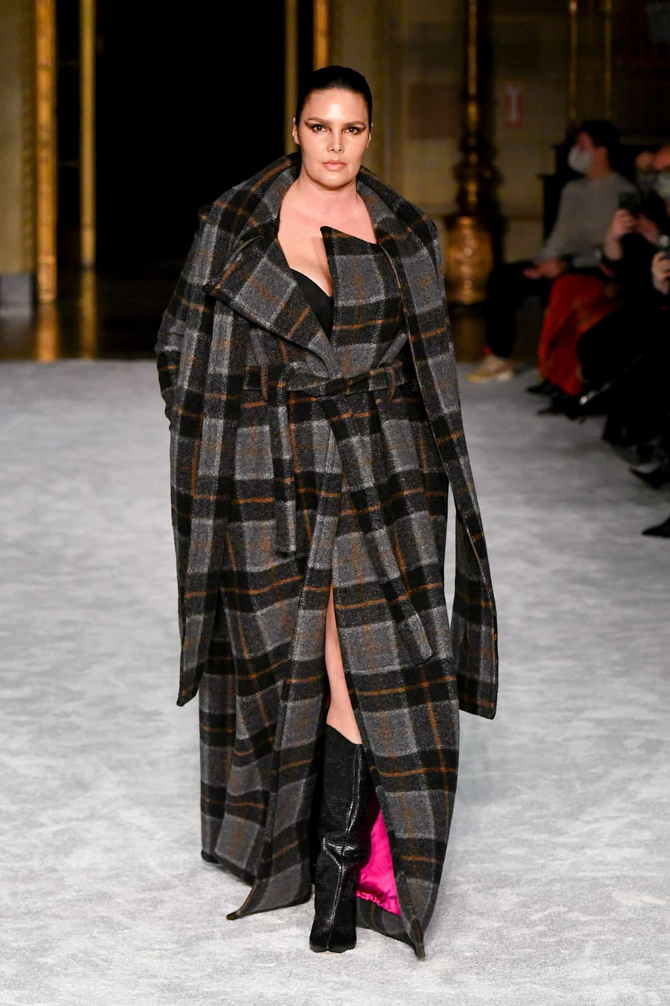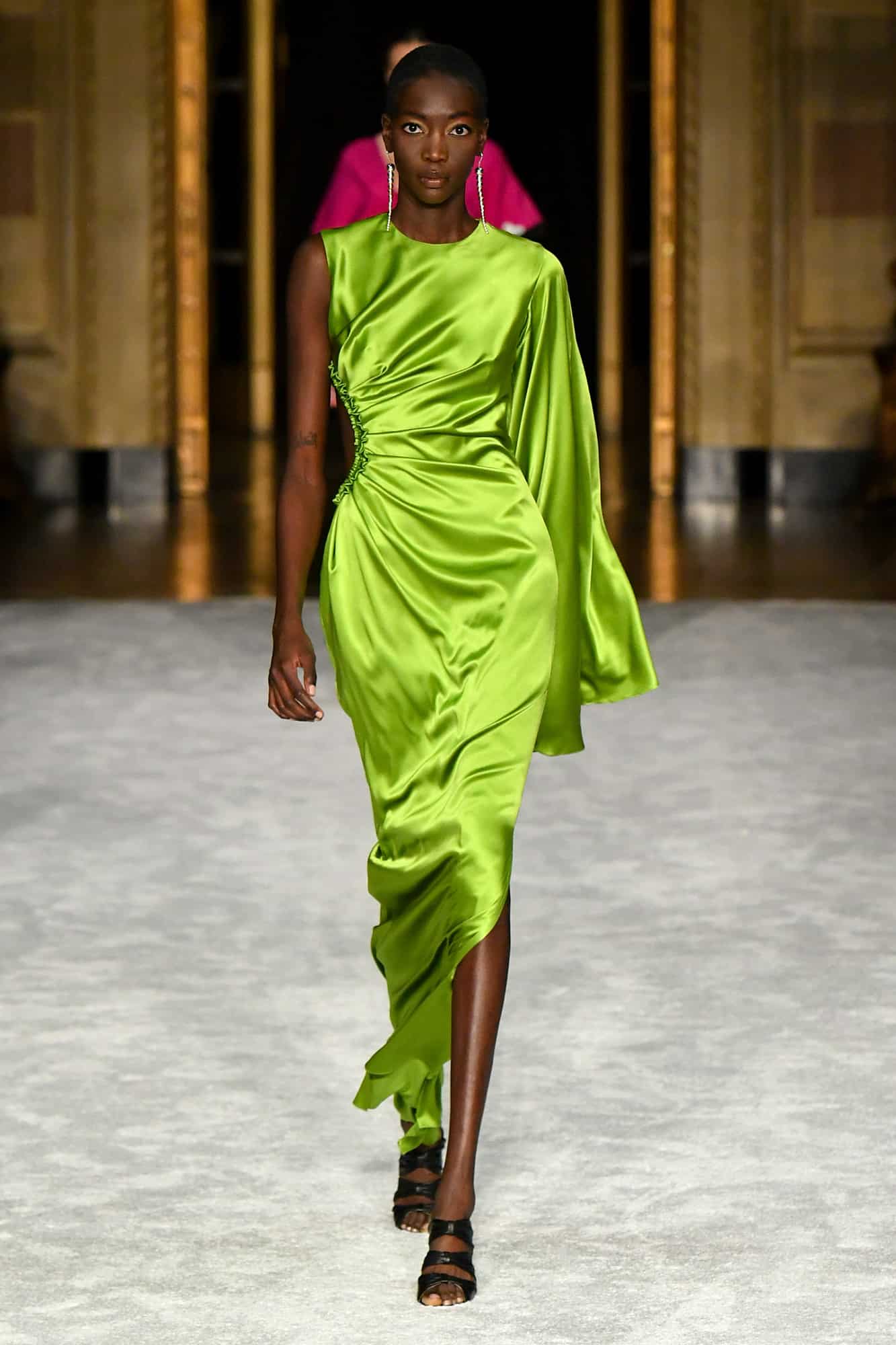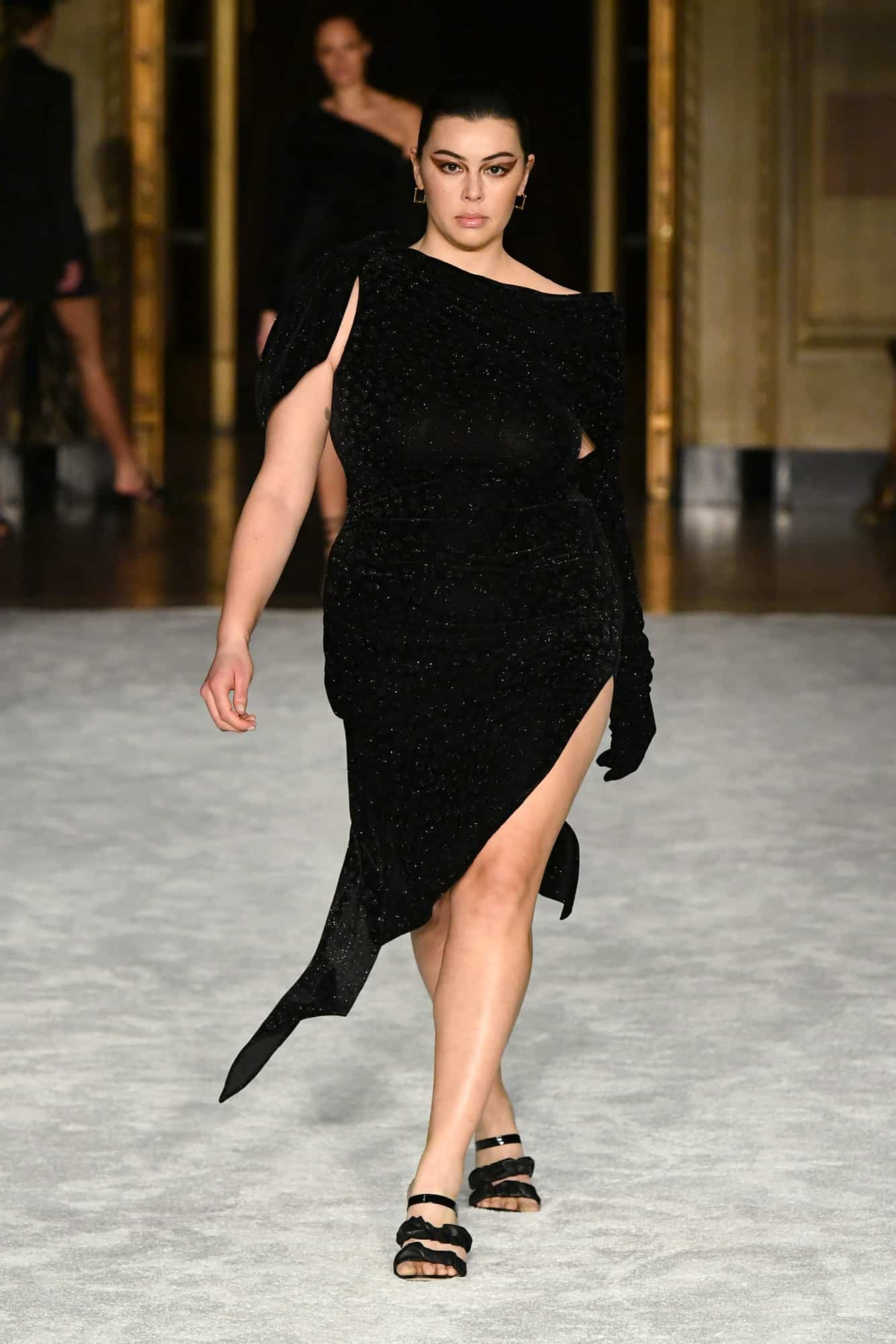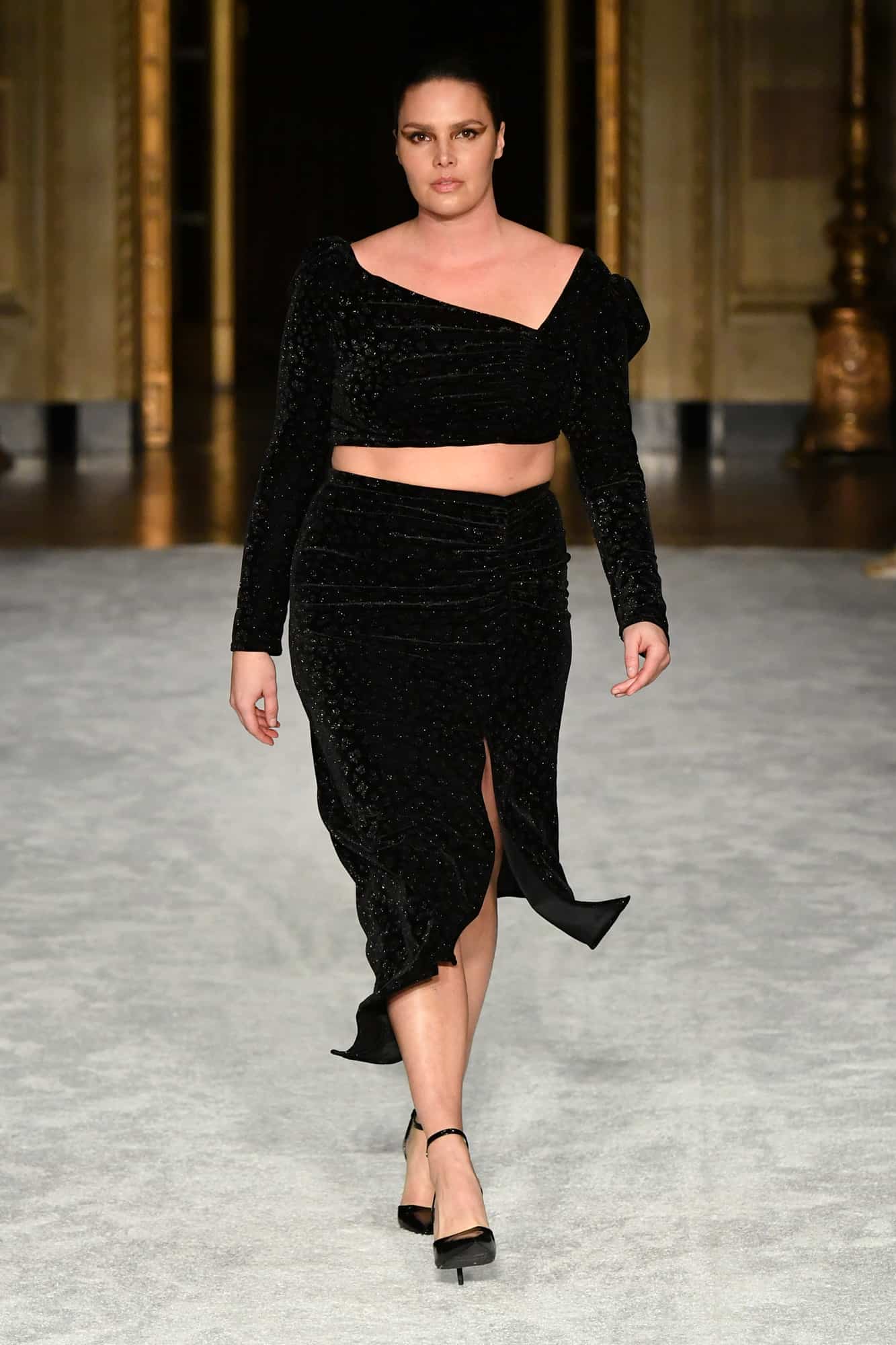 Lights, camera, action! The missing energy of NYFW was back in a big way yesterday evening—household name models, an editor-filled front row, and random runway props whose purpose would soon become clear once the music kicked in—thanks to Christian Siriano. At his favorite venue, Gotham Hall, a small, socially-distanced audience gathered to once again feel what has been missing in the absence of traditional fashion shows.