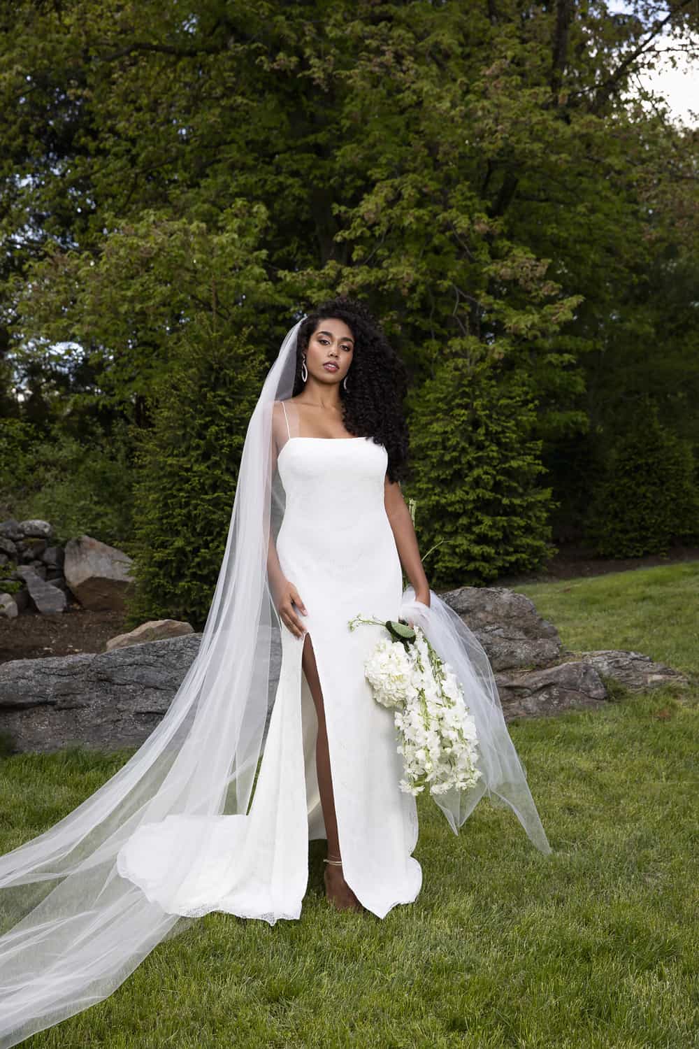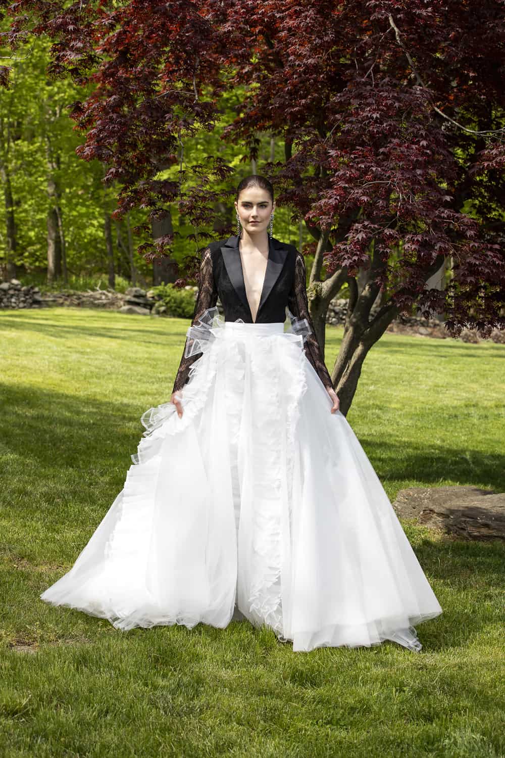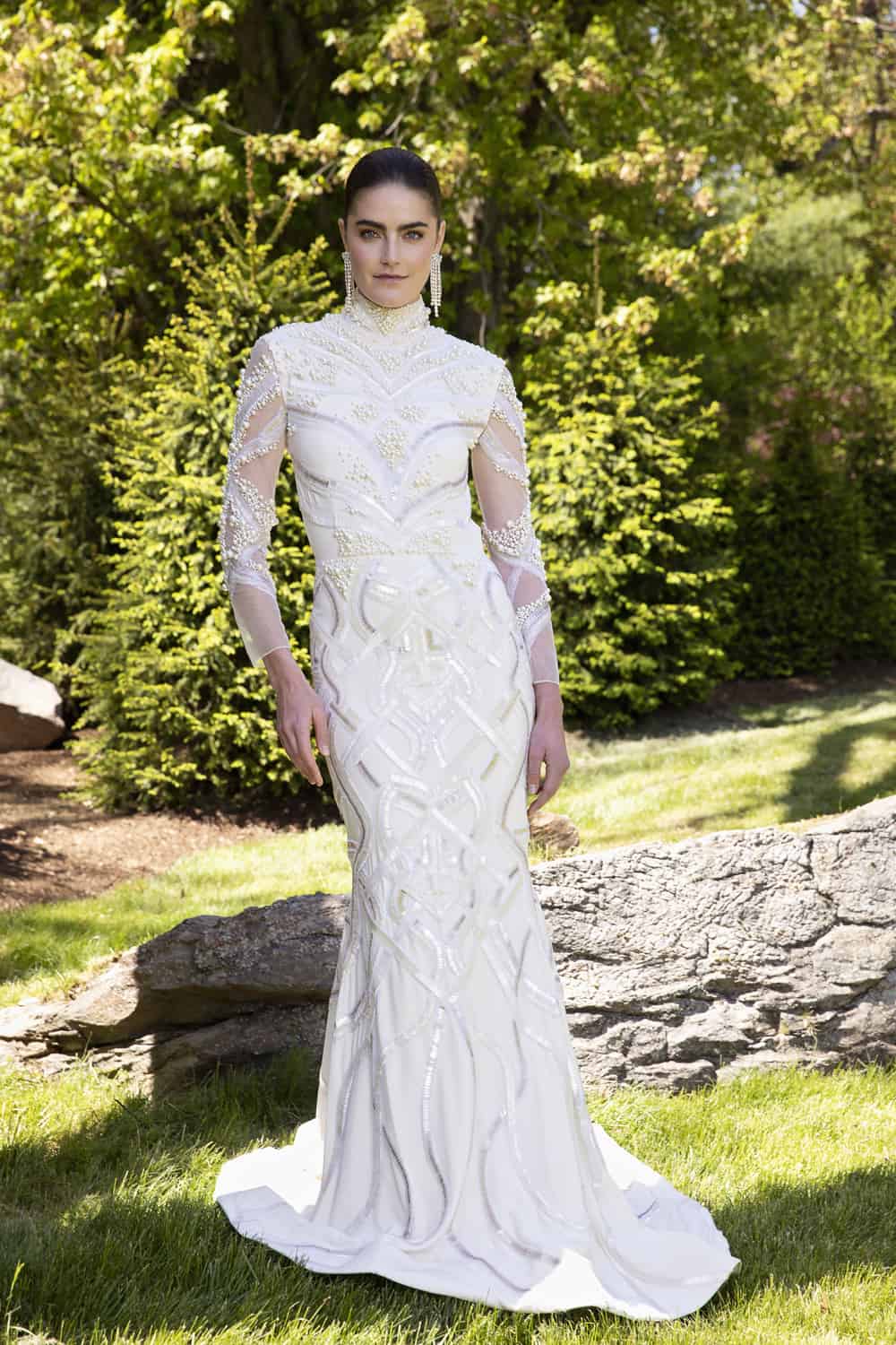 Of the collection, Siriano said it’s an offering for brides to march to the beat of their own drum. “We have brides almost every single day coming in,” he said. “What my team and I tell them is, ‘Go for your ultimate, complete dream, fantasy everything, whatever it is! If it’s a slip dress, fine! If it’s a humongous, 10-foot ballgown, you have to do it, because you’re never going to know what’s going to happen.’ I think everybody needs to live to the fullest that they can because we all see what can happen in our world.”
