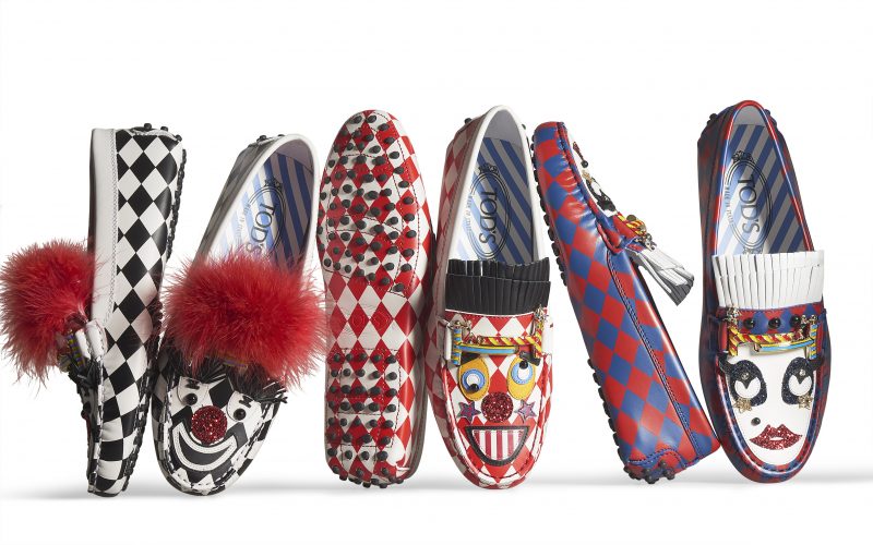 The collection expands on Tod’s love affair for the circus—last November the luxury label invited famed Italian art director and production and costume designer Dante Ferretti to create a Fellini-inspired Circus theme for their windows in their Madison Avenue boutique.