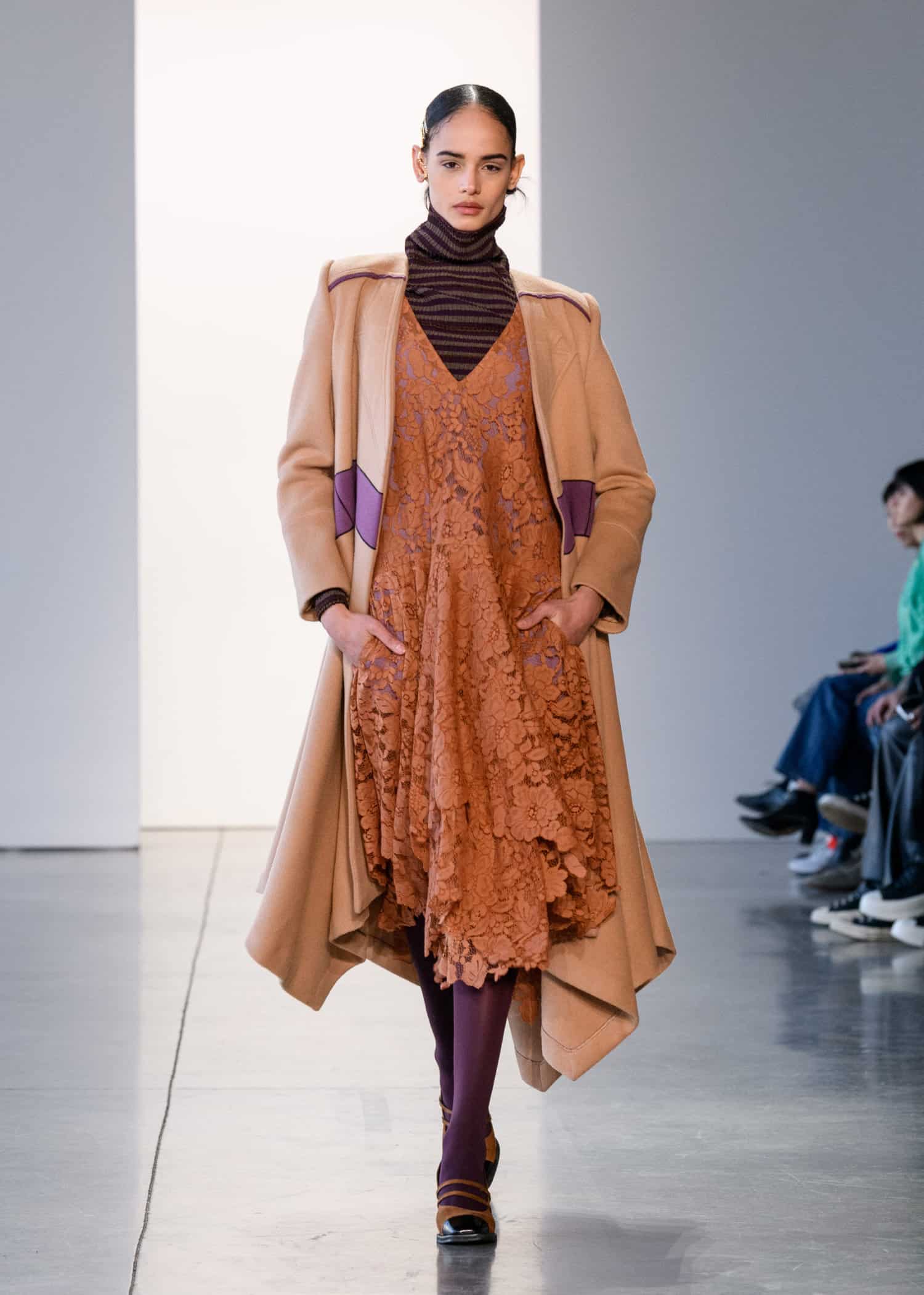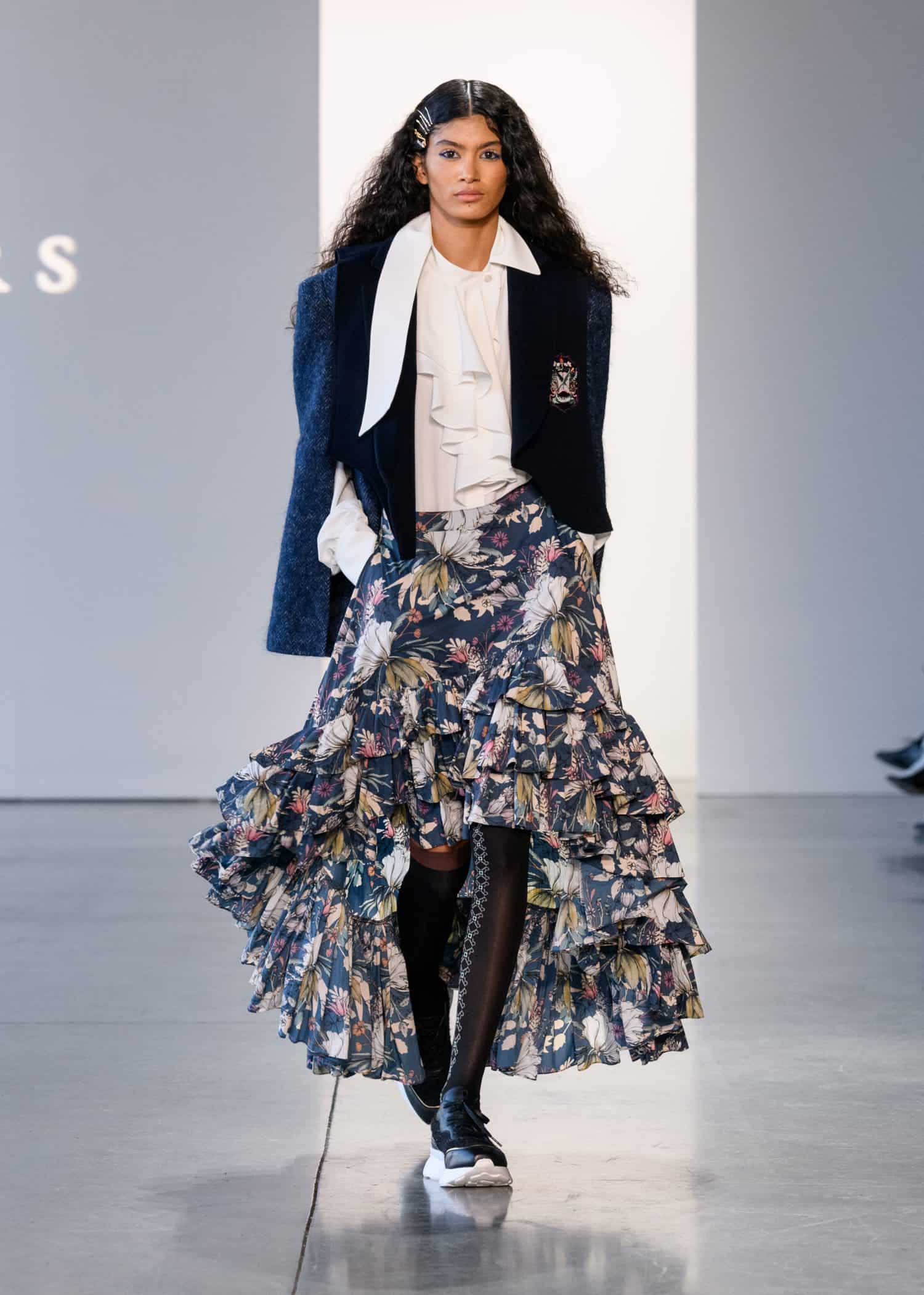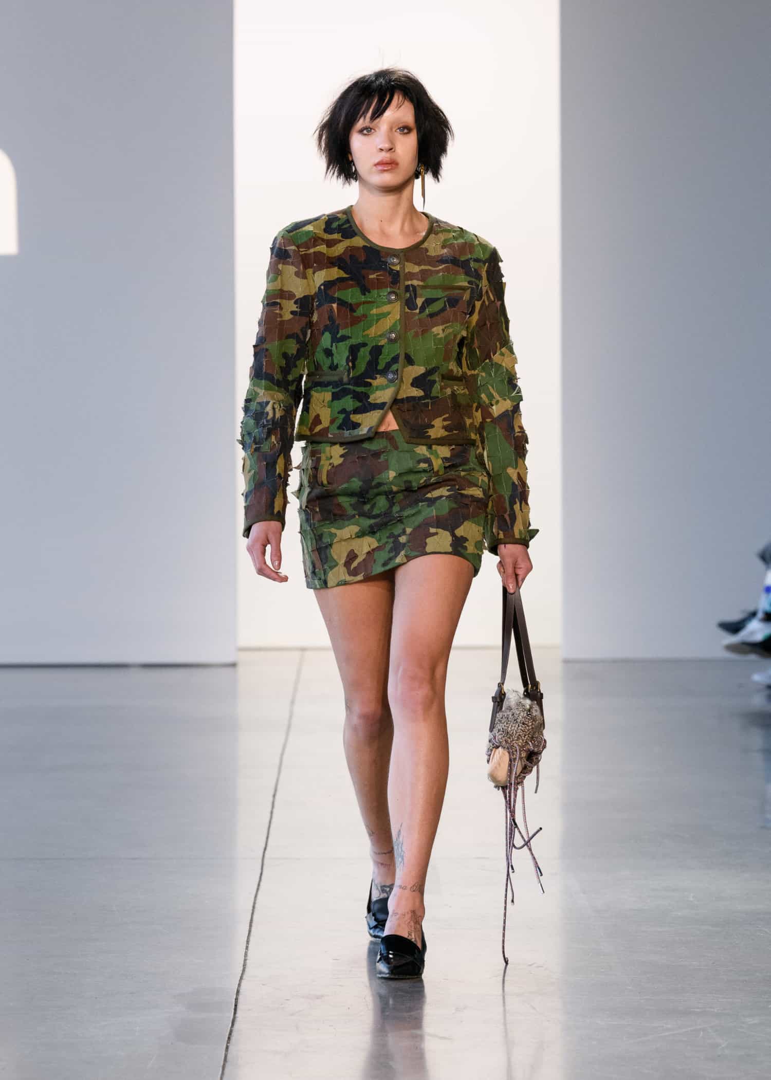 The show started with CAHIERS, which translates to “memo pad” or “work note” in French, which also means “idea book.” According to show notes these translations signify designer A-Young Kim’s passions. The looks were inspired by Korean student uniforms as symbols of youth. Think: preppy staples like plaid skirts, duffel coats, ties, and tailored jackets. The looks were then reinterpreted with the brand’s signature feminine touch.