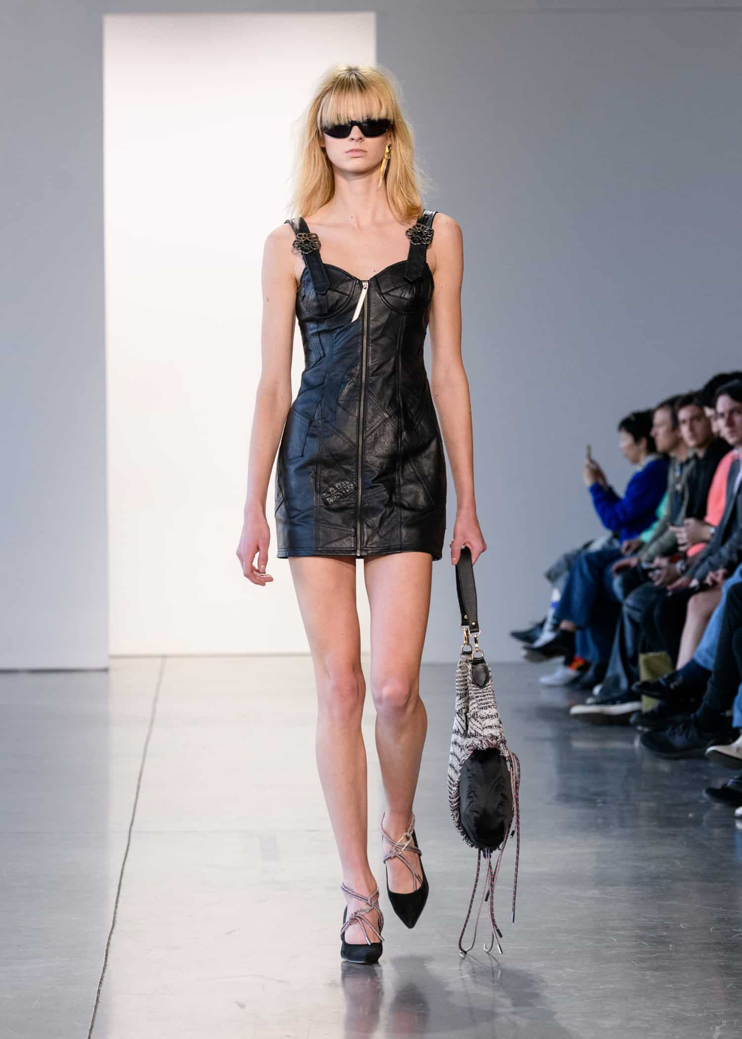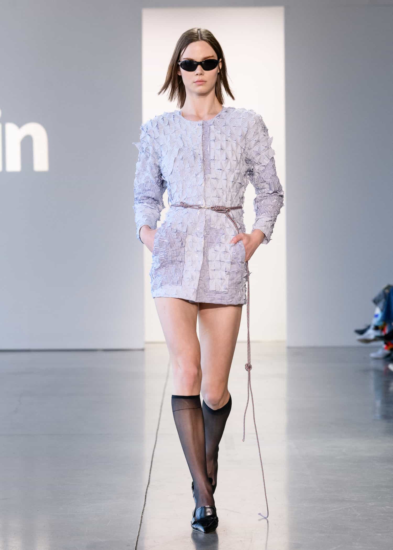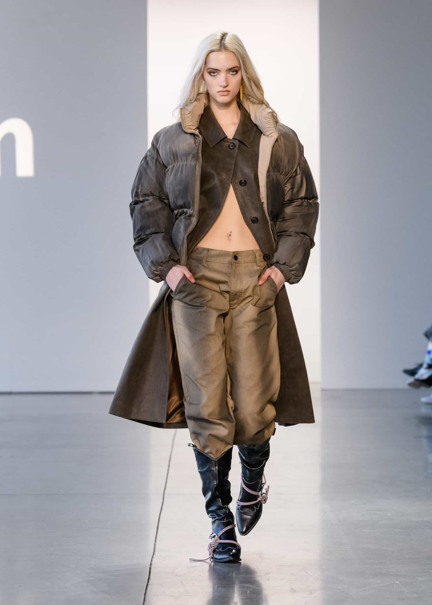 Next up was a collection by ul:kin, with designer Seong Dong Lee showing an edgy unisex collection. The designer has made sustainability a focus in his collection’s through upcycling. This season’s concept, The Blind Spot of Safe Space, sought to reinvent the classics with a modern spin.