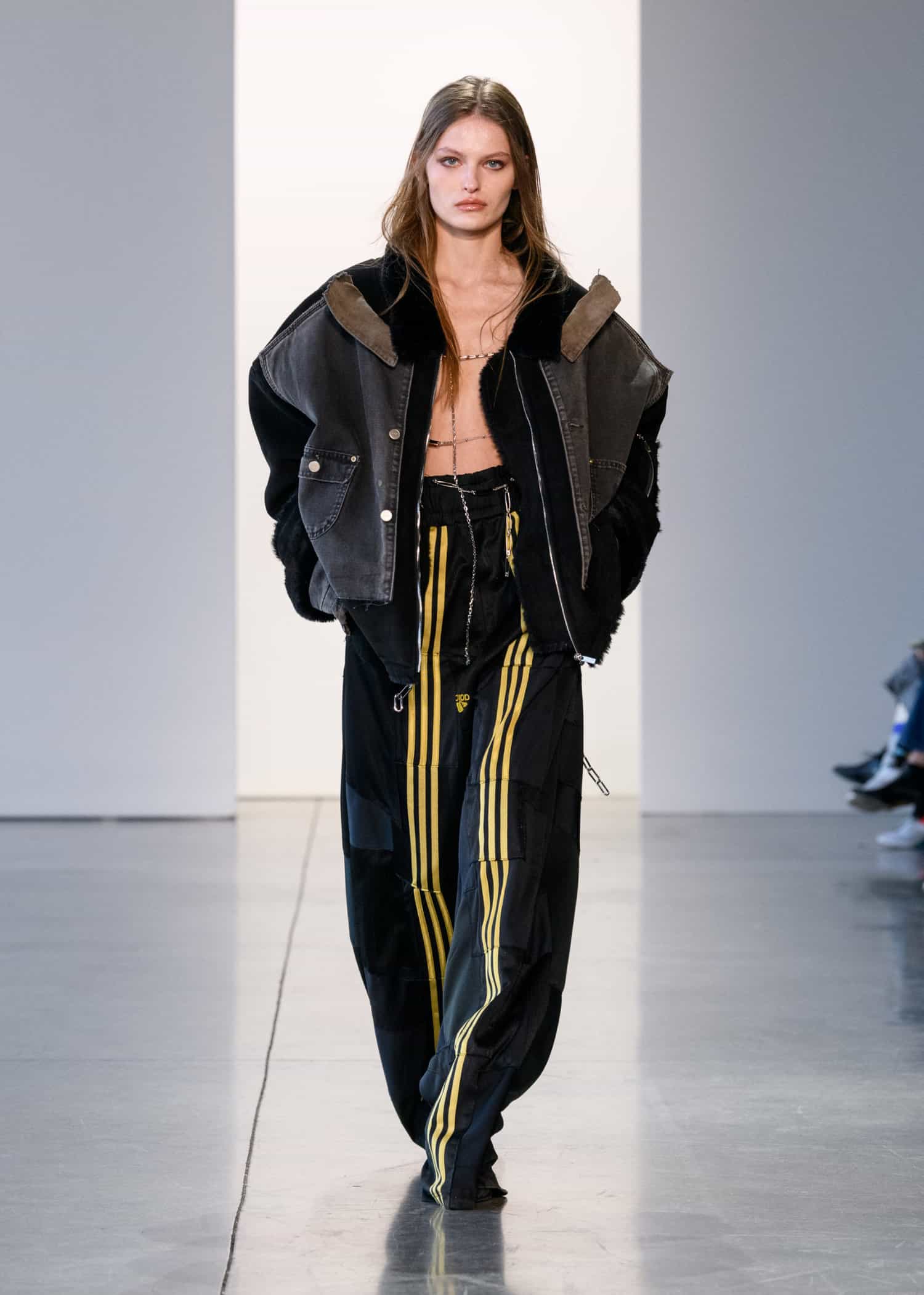 The show kicked off with longboard performance artist, Ko Hyojoo, skating down the runway in front of notables Hyoyeon, Trinidad James, Mariama Diallo, Aisatta Diallo, Aliyah Bah, and Katya Tolslova. Hyojoo is considered a Korean sensation and boasts over 300,000 followers on her popular YouTube channel.