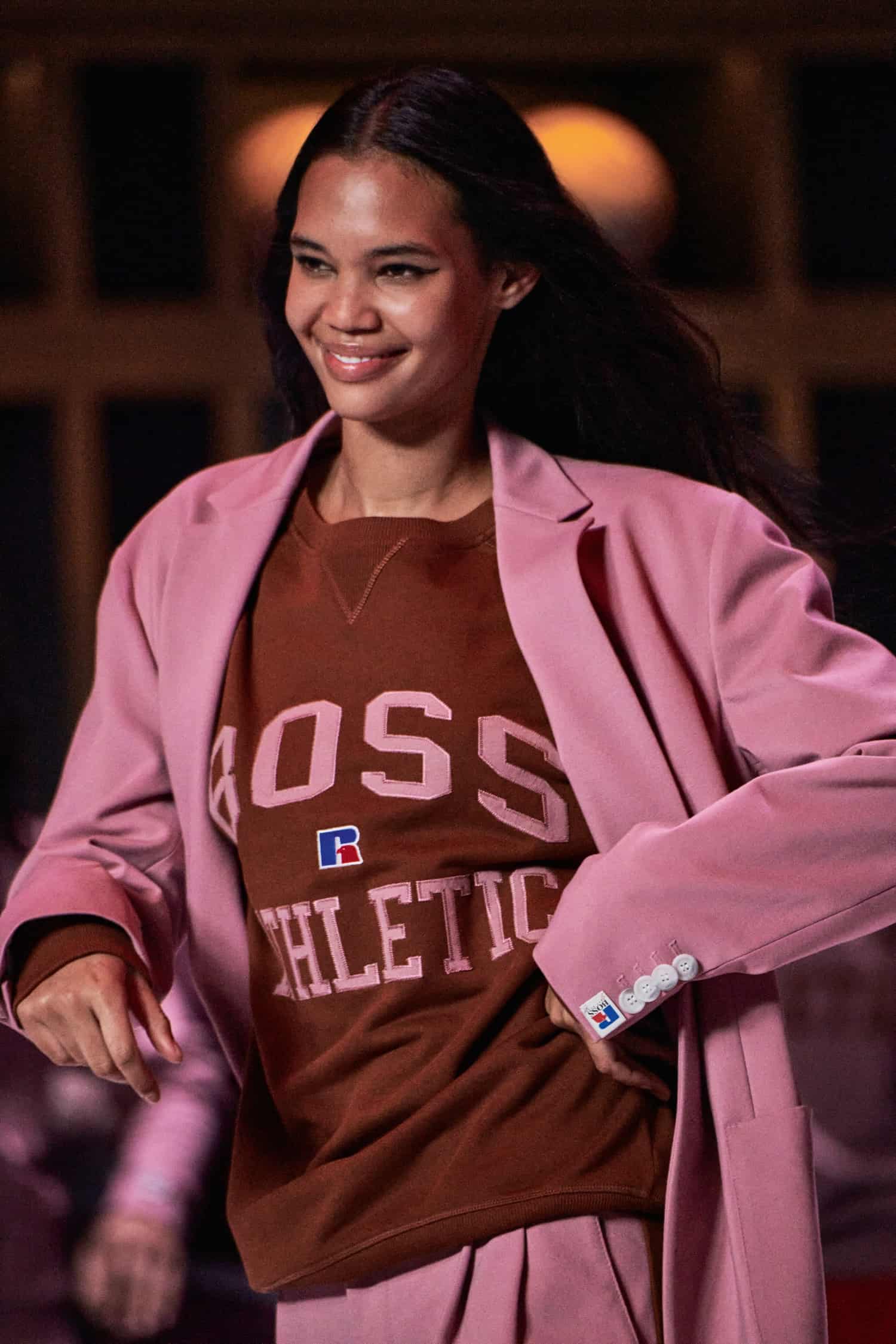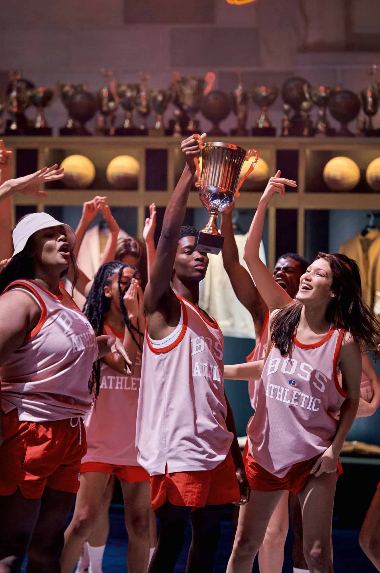 Calling all basketball fans! BOSS has teamed up with Russell Athletic for a pre-Fall collaboration that’s sporty and chic. To celebrate their launch, the brands hosted a digital launch party with a basketball-inspired film. The uplifting video stars models Bella Hadid, Ashley Graham, Precious Lee, Lucky Blue Smith, Taylor Hill, Alton Mason, and more as convincing champs—as they dance, sweat, and party together on the court. The collection features a range of unisex styles like sweatshirts, sweatpants, suiting, and logo t-shirts in a palette of millennial pink, red, navy, and gray. There’s even a customizable sweatshirt that’s available until March 31. You can shop the collaboration on the BOSS website now.