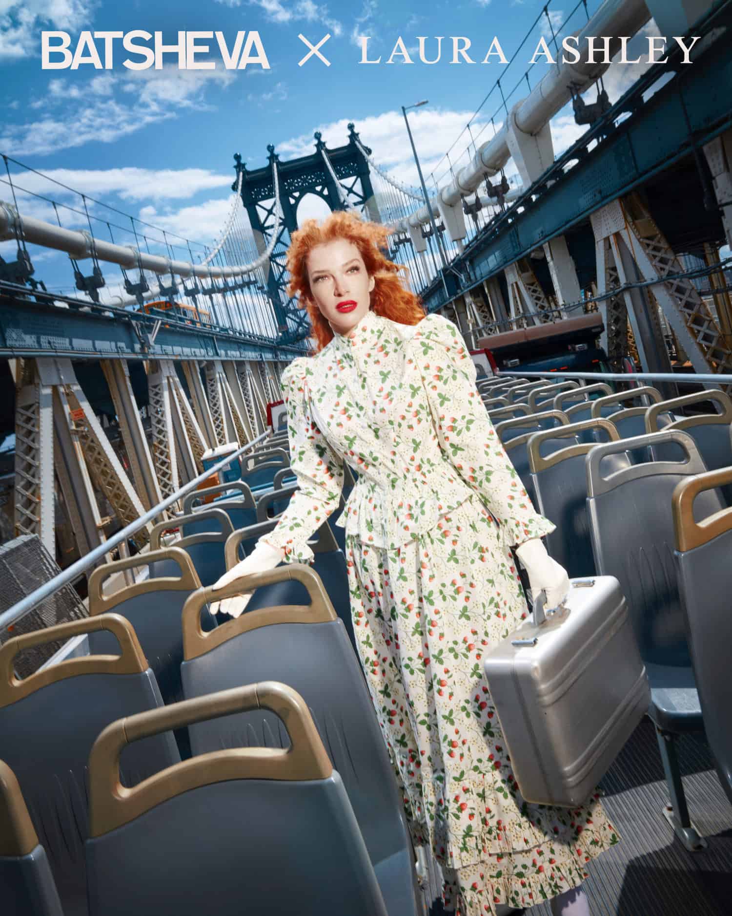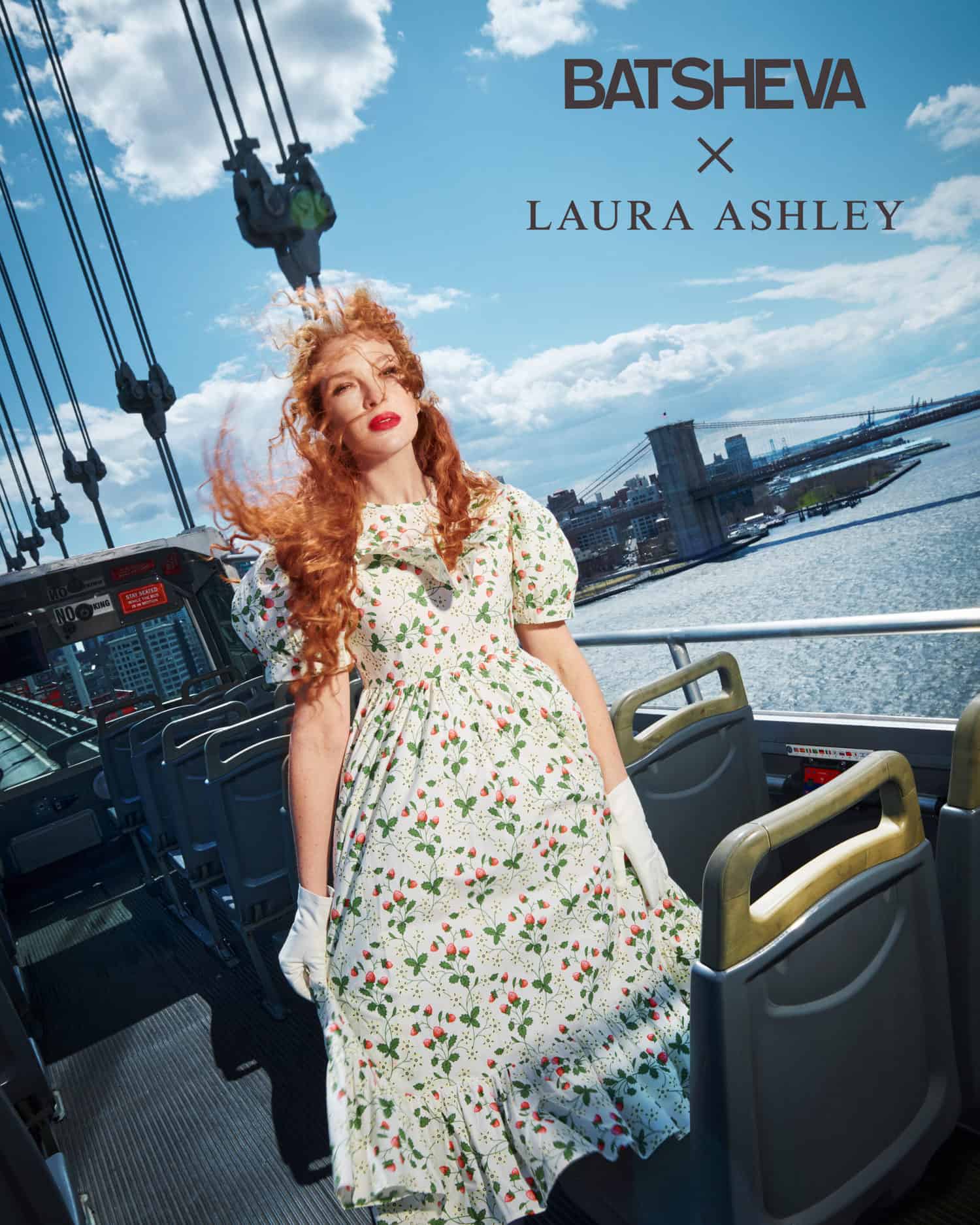 Back for more! Batsheva’s new Laura Ashley collection has arrived, with a suitably dreamy campaign to match. The designer’s husband and collaborator, photographer Alexei Hay, rented a double decker tour bus and reportedly drove it across the Manhattan bridge 100+ times (the commitment!) to ensure he got the perfect shots of the line. The divine dresses—and jumpsuit and skirt—feature the vintage silhouettes and pretty prints the New York-based brand is known for, mixed with the nostalgia of the world-famous lifestyle brand. “This collection is really the ultimate ‘Laura Ashley moment’ for me,” Hay said. “It really leans into the most iconic prints, with strawberries and pastel flowers, which just scream Spring and Summer. When I dream of the bygone Laura Ashley days, which I often do, I think of the light pastels with white or pale backgrounds. In this collection, I was really able to play with prints that have that softness for Spring and Summer, like Quartet, Strawberry Field, and Notgrove.” Shop it while you can!