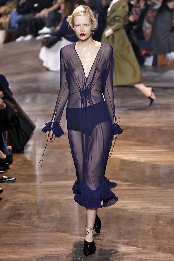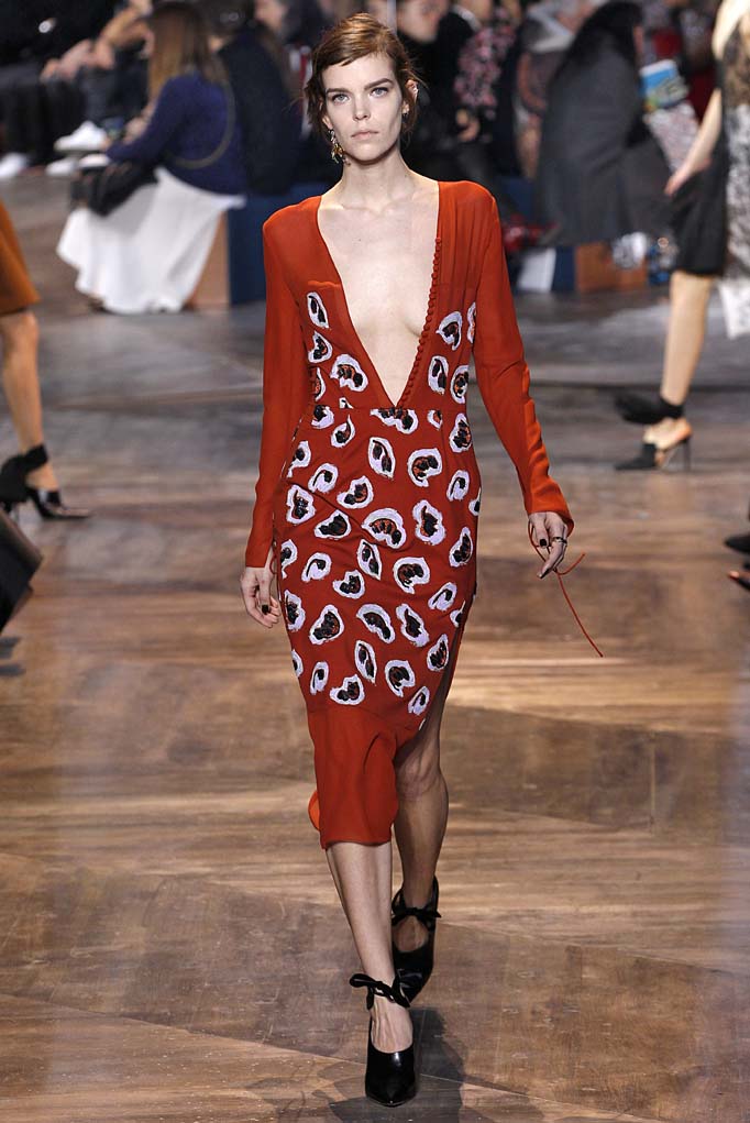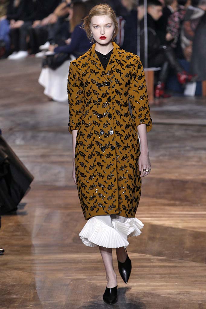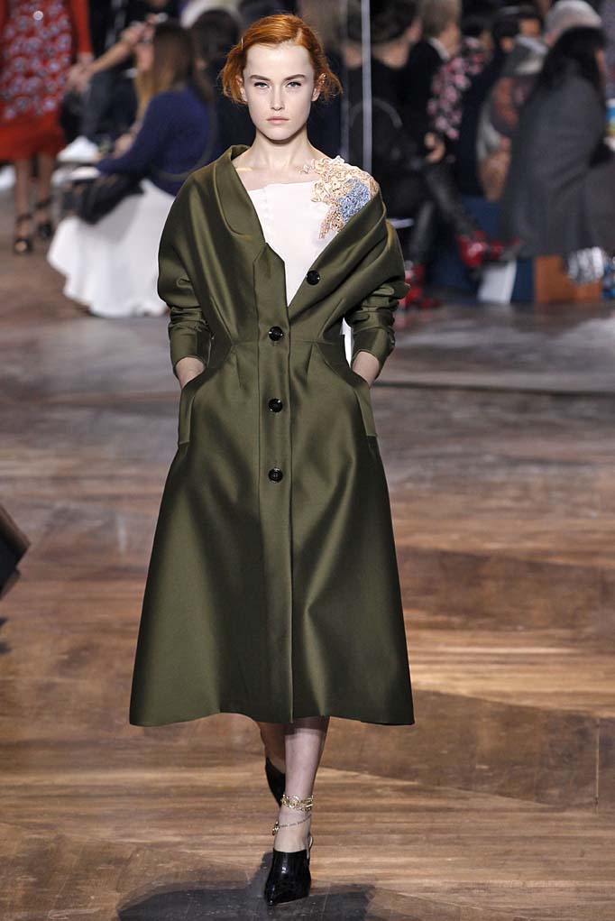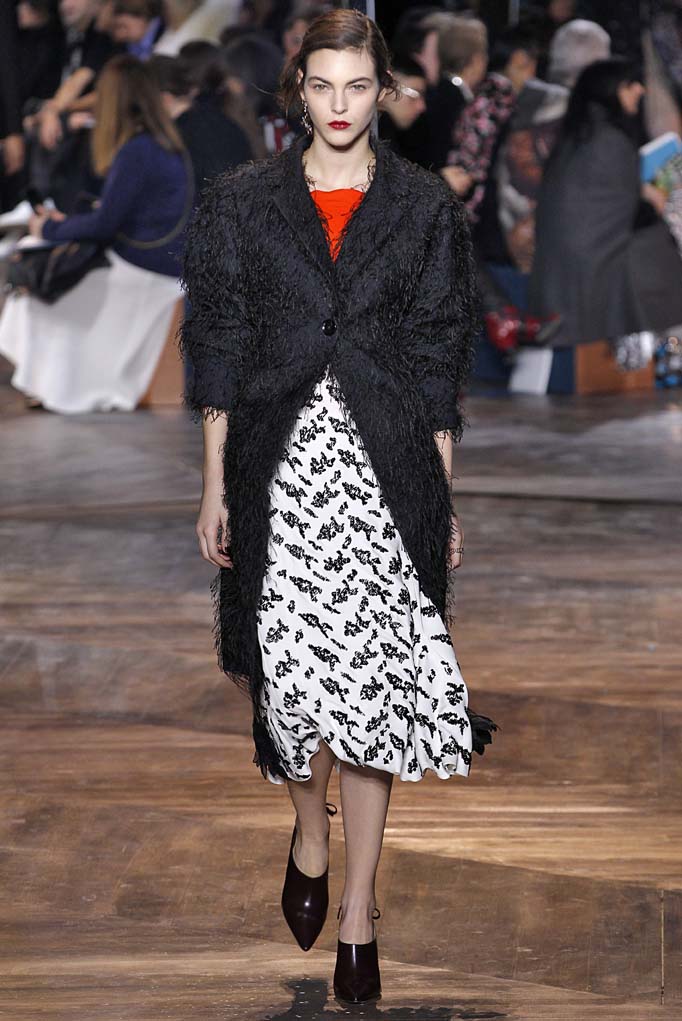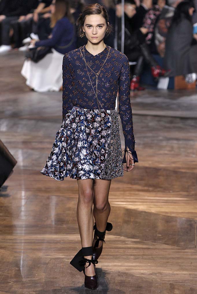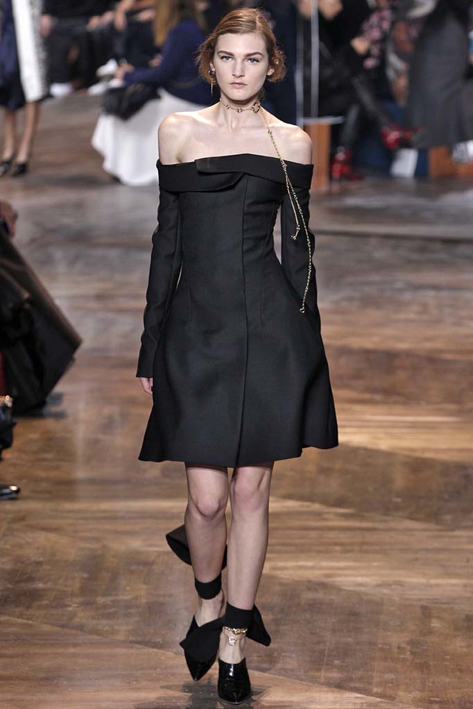 It’s been a fashion whirlwind in terms of who’s left, who’s going where, and so forth, but the show must go on. Ruffieux and Meier carried on many recognizable codes from the Simons era, including asymmetric and geometric necklines, new takes on the Bar jacket, paneled embroideries and familiar color palettes. But somehow, the collection lacked the confidence, discipline, and frankly, fit and wow factor that Simons used to great success. And we’re not sure any woman wants a tuft of cherry-colored ruffles around the hips on an otherwise slinky gown. Ruffieux and Meier are said to also be designing the Fall 2016 ready-to-wear collection. Perhaps by then, they’ll have a better grasp of how to fill the enormous shoes that Simons left behind.
