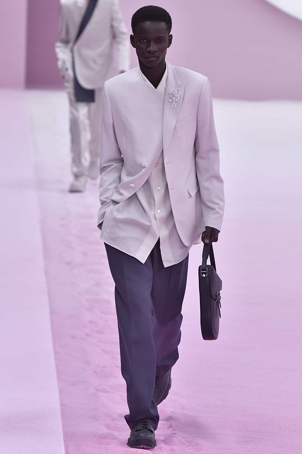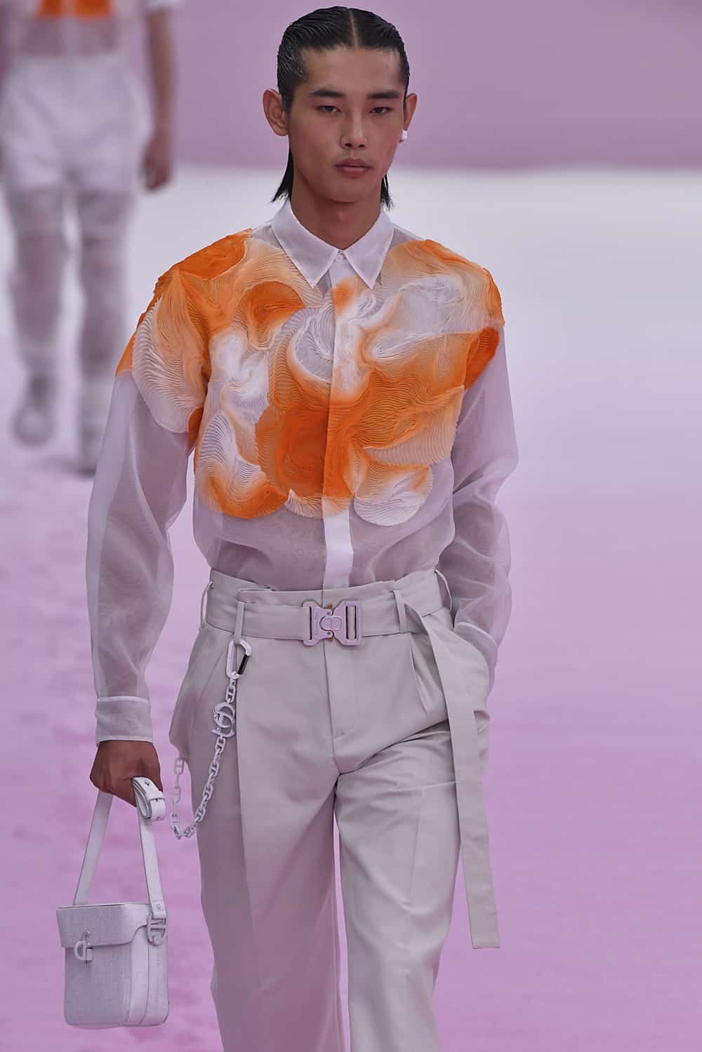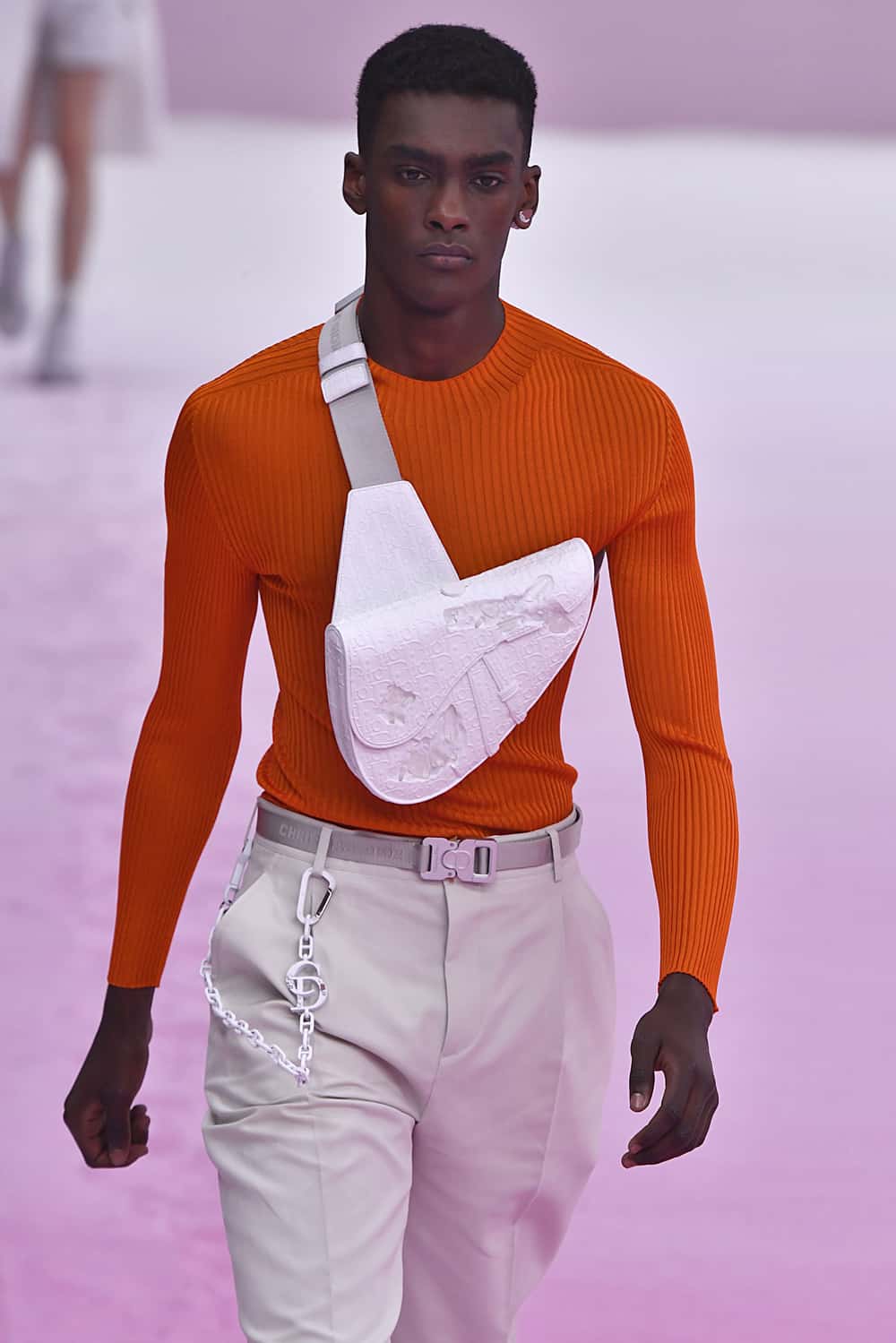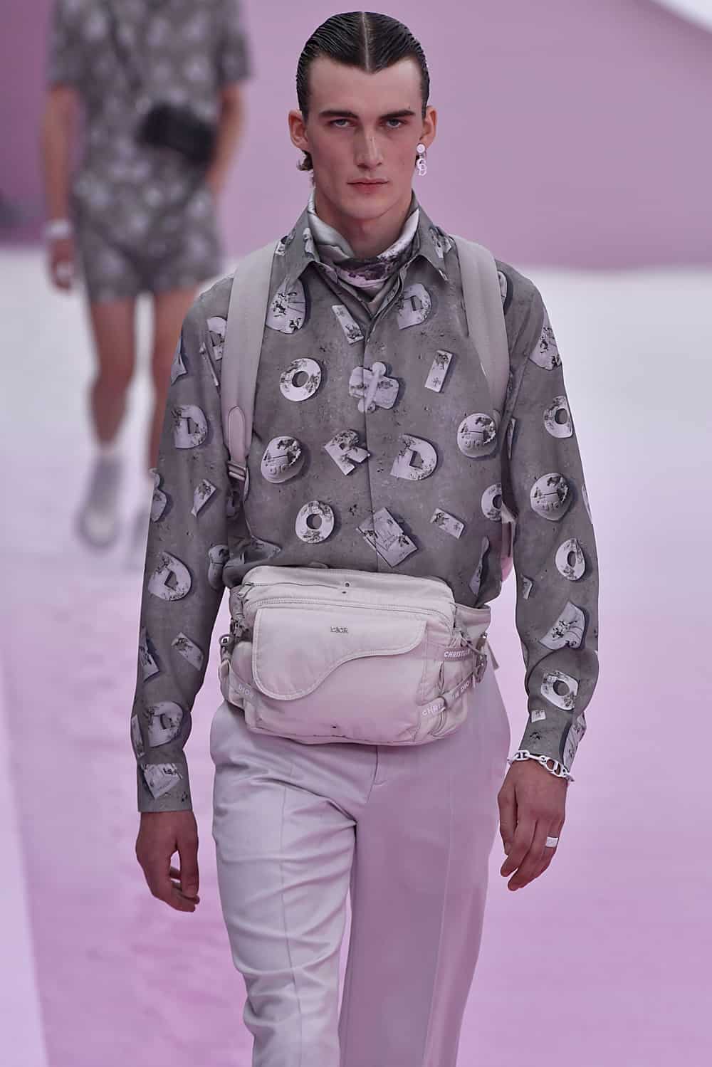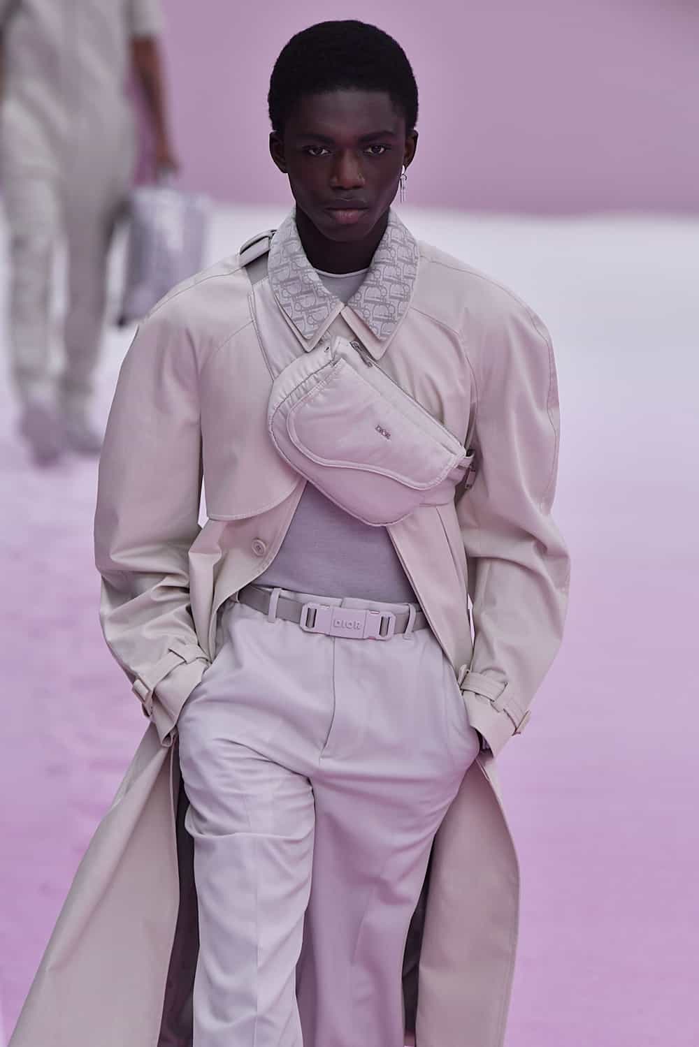 The collaboration with Rimowa wasn’t the only bag news on the Dior men’s runway. Designer Kim Jones continued to develop the house’s signature saddle bag in new (more masculine?) ways — in some cases elongating it or using the shape merely as a pocket detail on backpacks and squared-off fannypacks (it also made an appearance on the plackets and pockets of a handful of the collection’s glorious jackets).