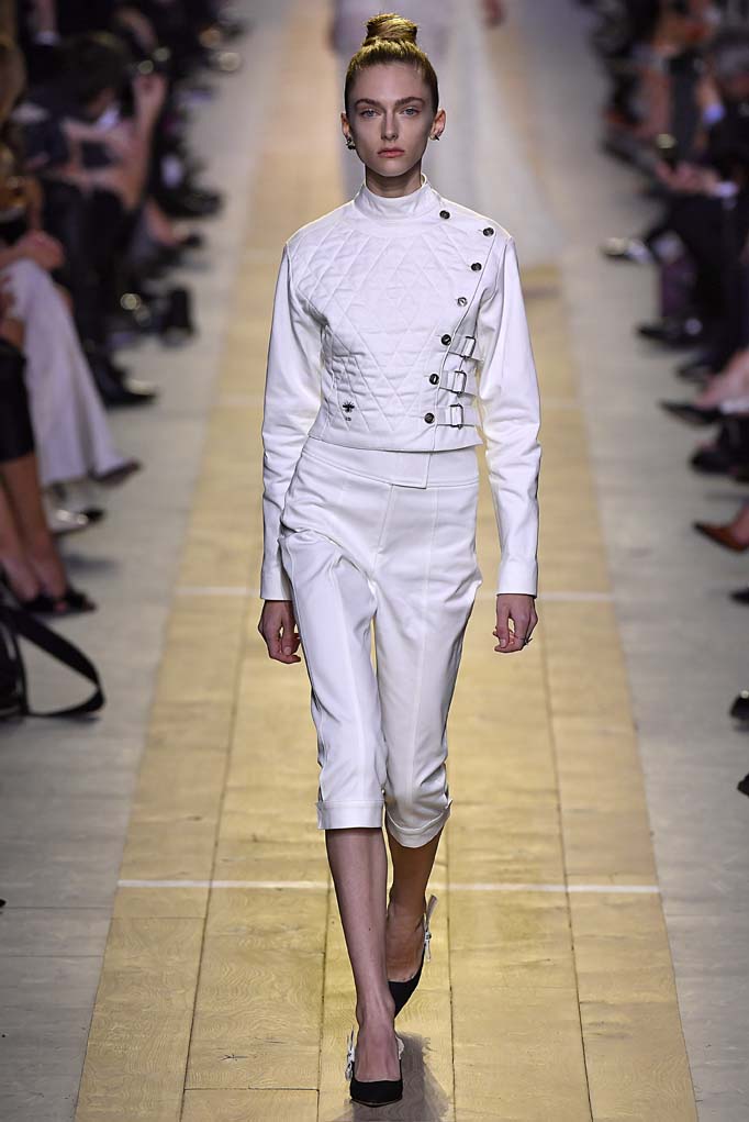 Bring on the Dio(R)evolution! Maria Grazia Chiuri’s debut at Dior was a major about-face for the brand and a feminist manifesto of sorts. There were moto-jackets, flat sneakers and boots, and Dior logo-emblazoned underpinnings and straps in the vein of the retro moment Calvin Klein is having with its own brand renaissance. But most shocking of all? T-shirts with slogans like “We should all be feminists.” The show opened with a series of white fencing-inspired uniforms, as if Dior’s first female creative director was signaling the uphill battle into which she has just thrown herself. While she is an immense talent, filling Raf Simons critically acclaimed shoes is nevertheless a tall order.
