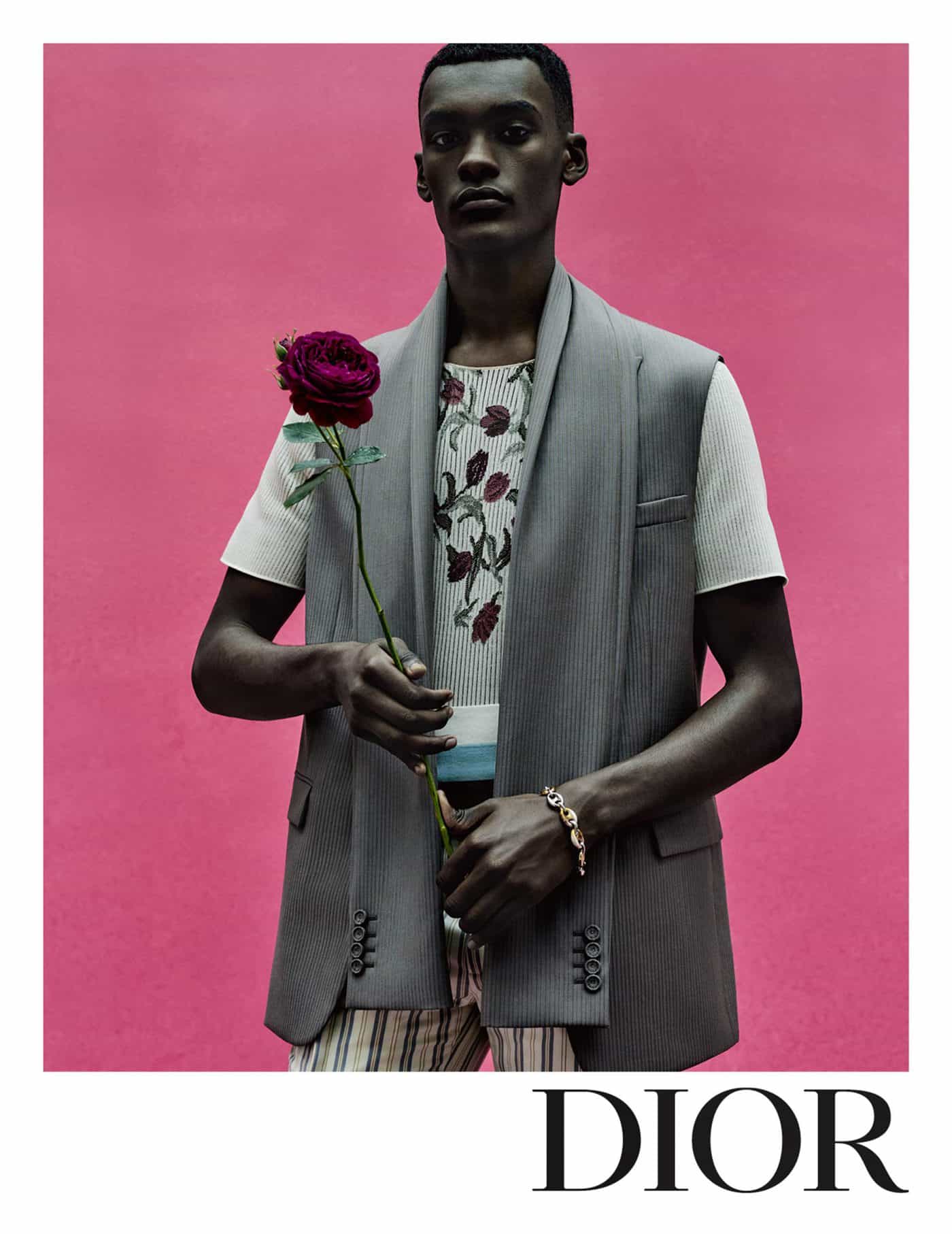 Naturally, the campaign reinterprets Christian Dior’s house aesthetics, which Jones has referenced since he began designing the brand’s menswear in 2018. The designer’s penchant for sleek silhouettes, razor-sharp tailoring, and subtle textures are all at play in the campaign, alongside uplifting colors and sheer, unmistakably Dior elegance. Overall, it’s a joyful tribute to both Dior and Boafo’s artistry—and one that already has us wishing for sunnier days ahead.