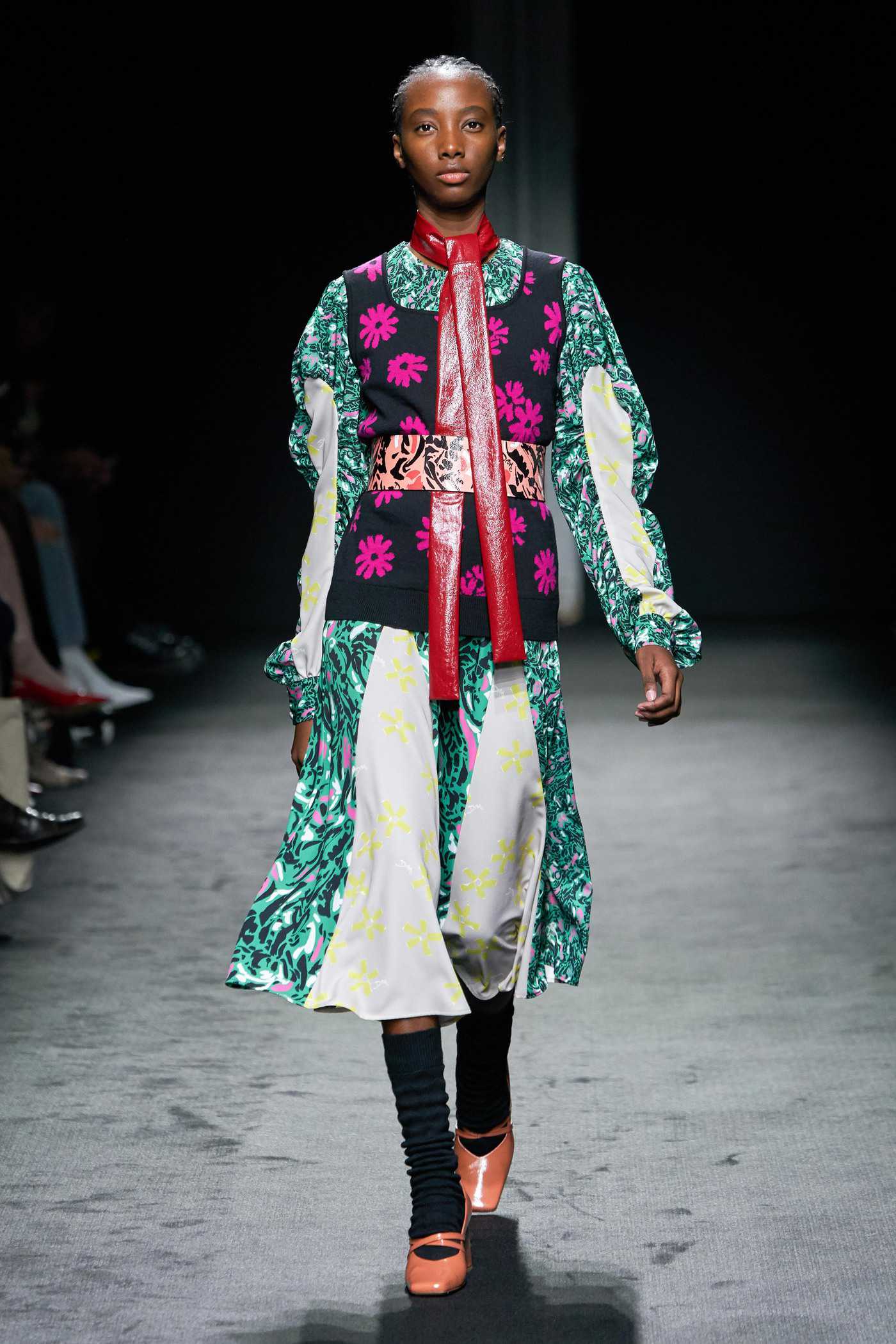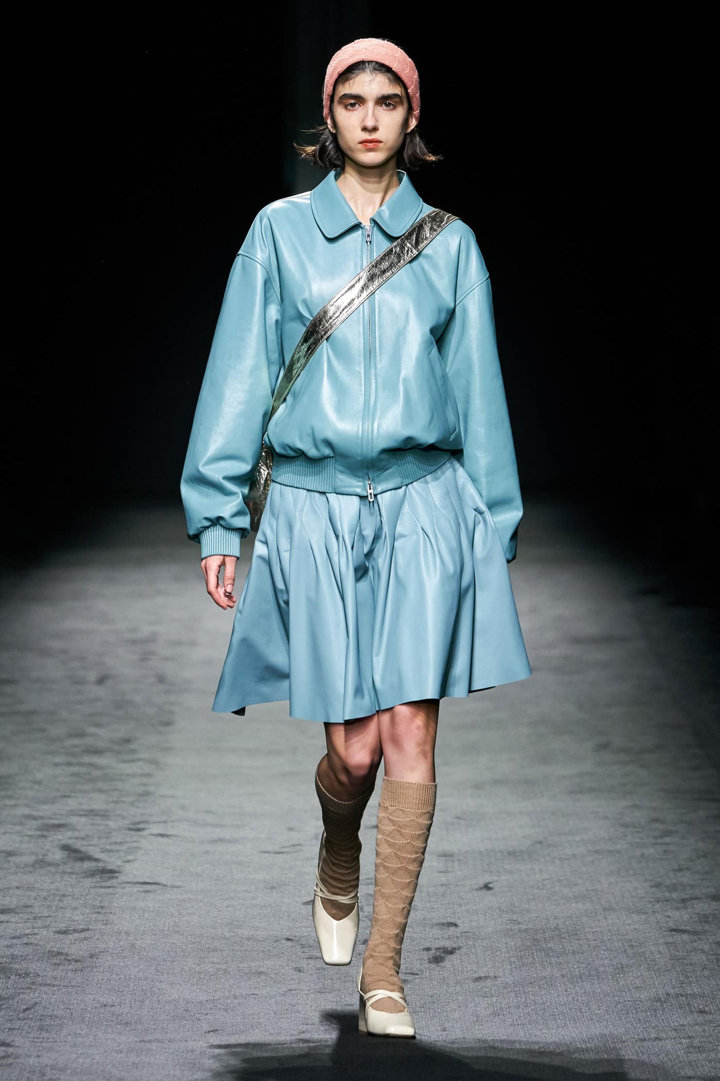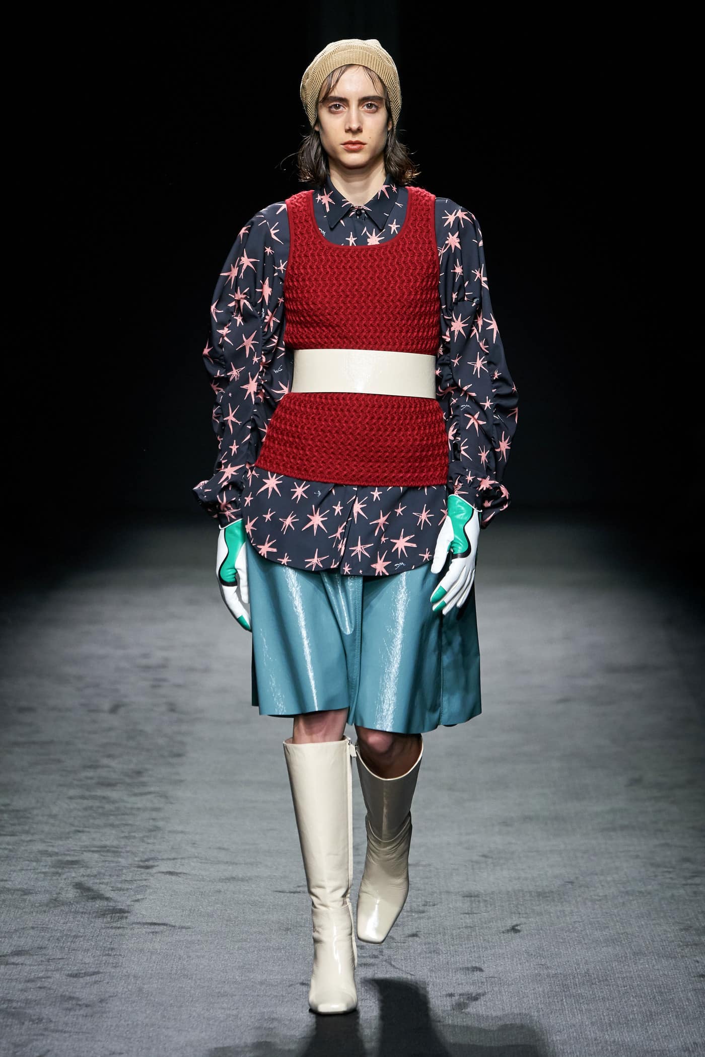 Designer Marianna Rosati titled her Fall 2019 collection for DROMe “Diverging Symmetries.” Looking at the duality of presenting a strong, confident, yet also fragile and imperfect women, Rosati brought together looks that were at once feminine, sporty, and a little bit retro.