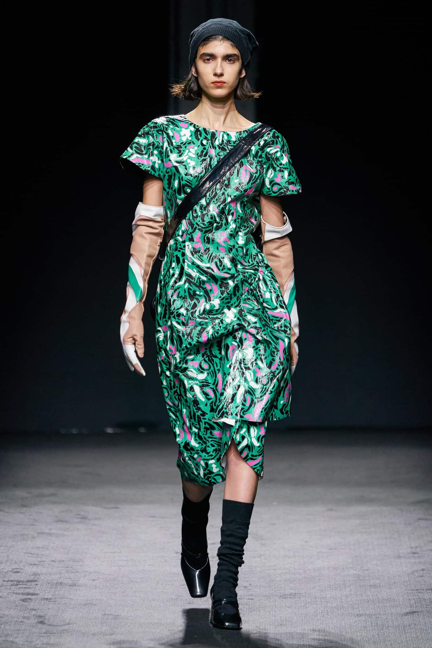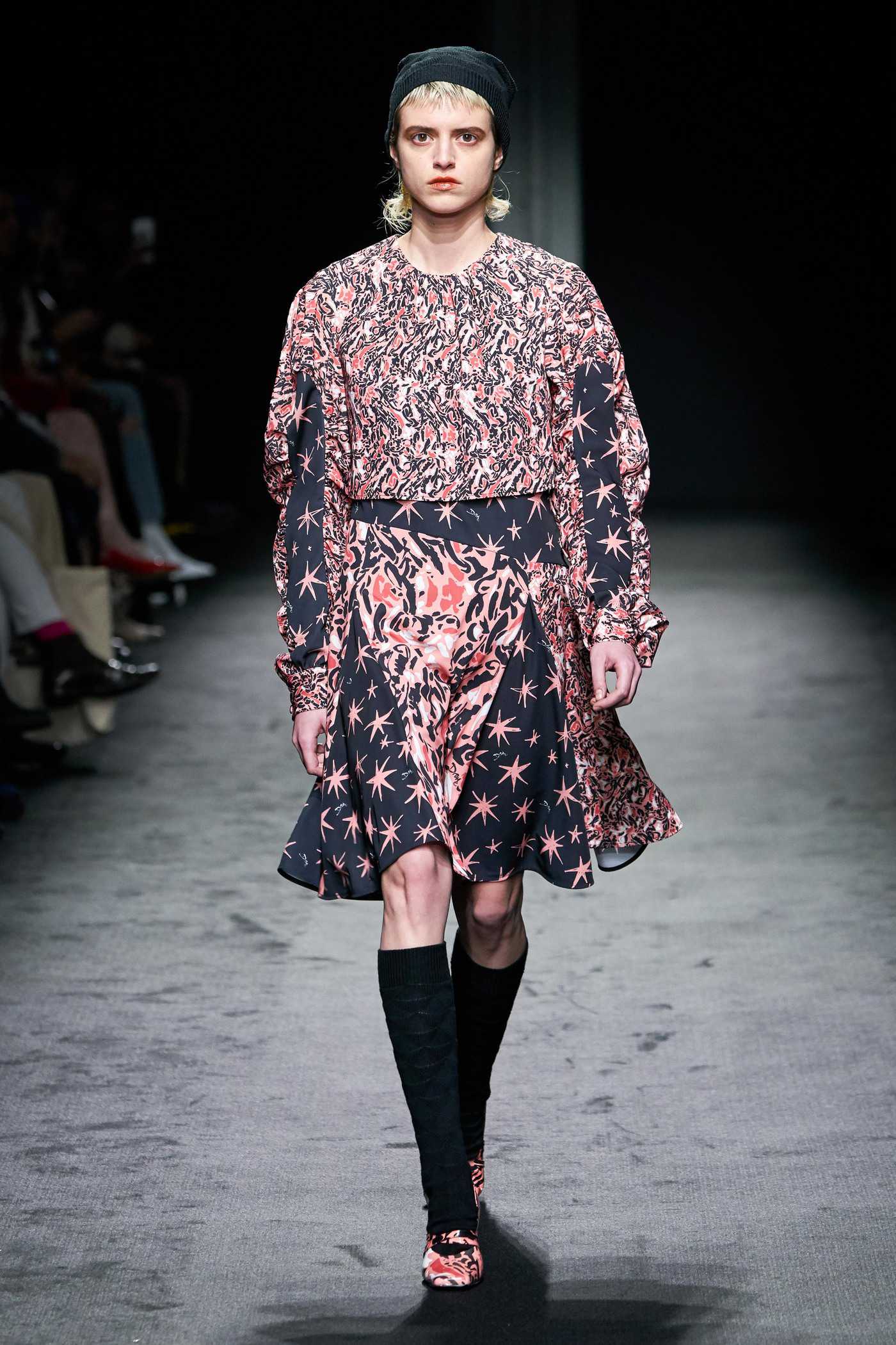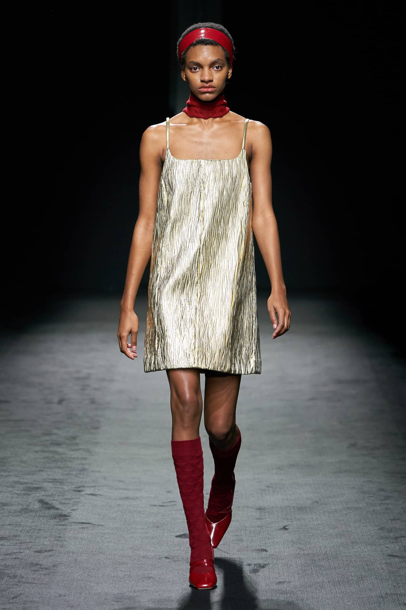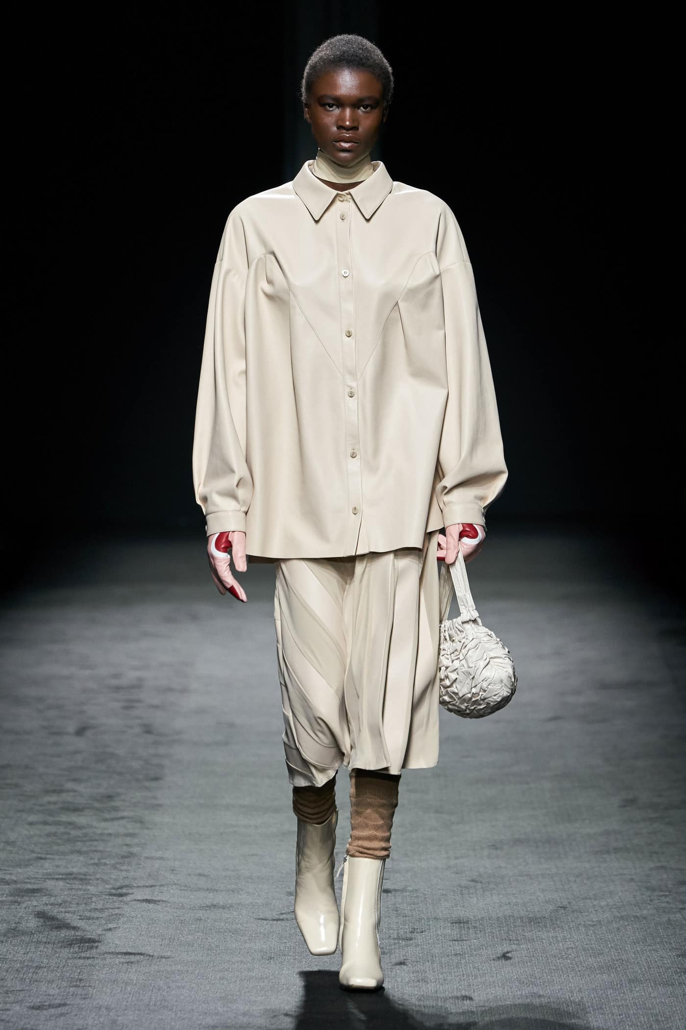 Designer Marianna Rosati titled her Fall 2019 collection for DROMe “Diverging Symmetries.” Looking at the duality of presenting a strong, confident, yet also fragile and imperfect women, Rosati brought together looks that were at once feminine, sporty, and a little bit retro.