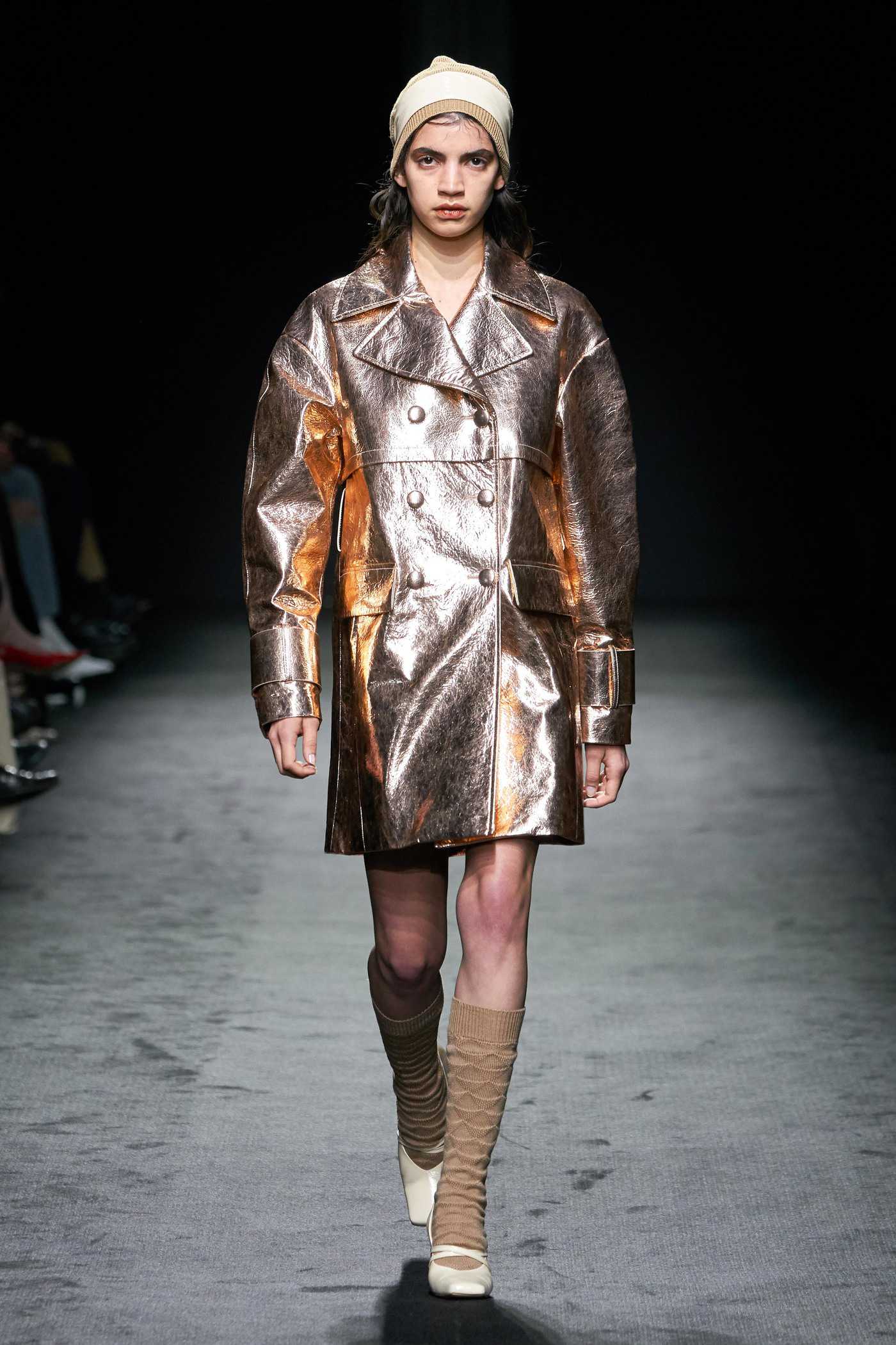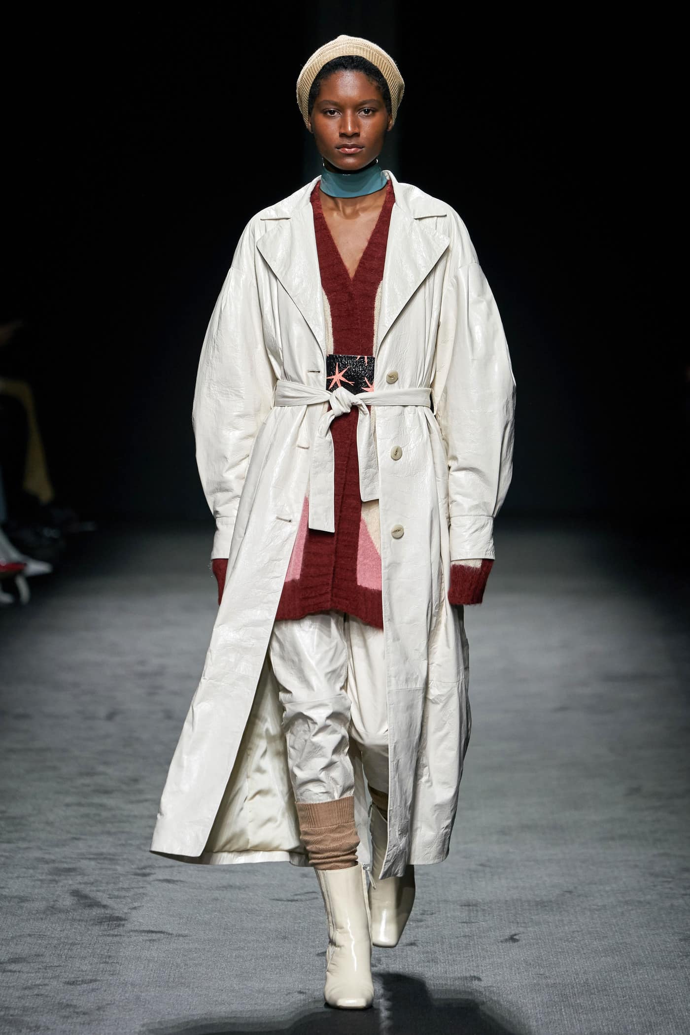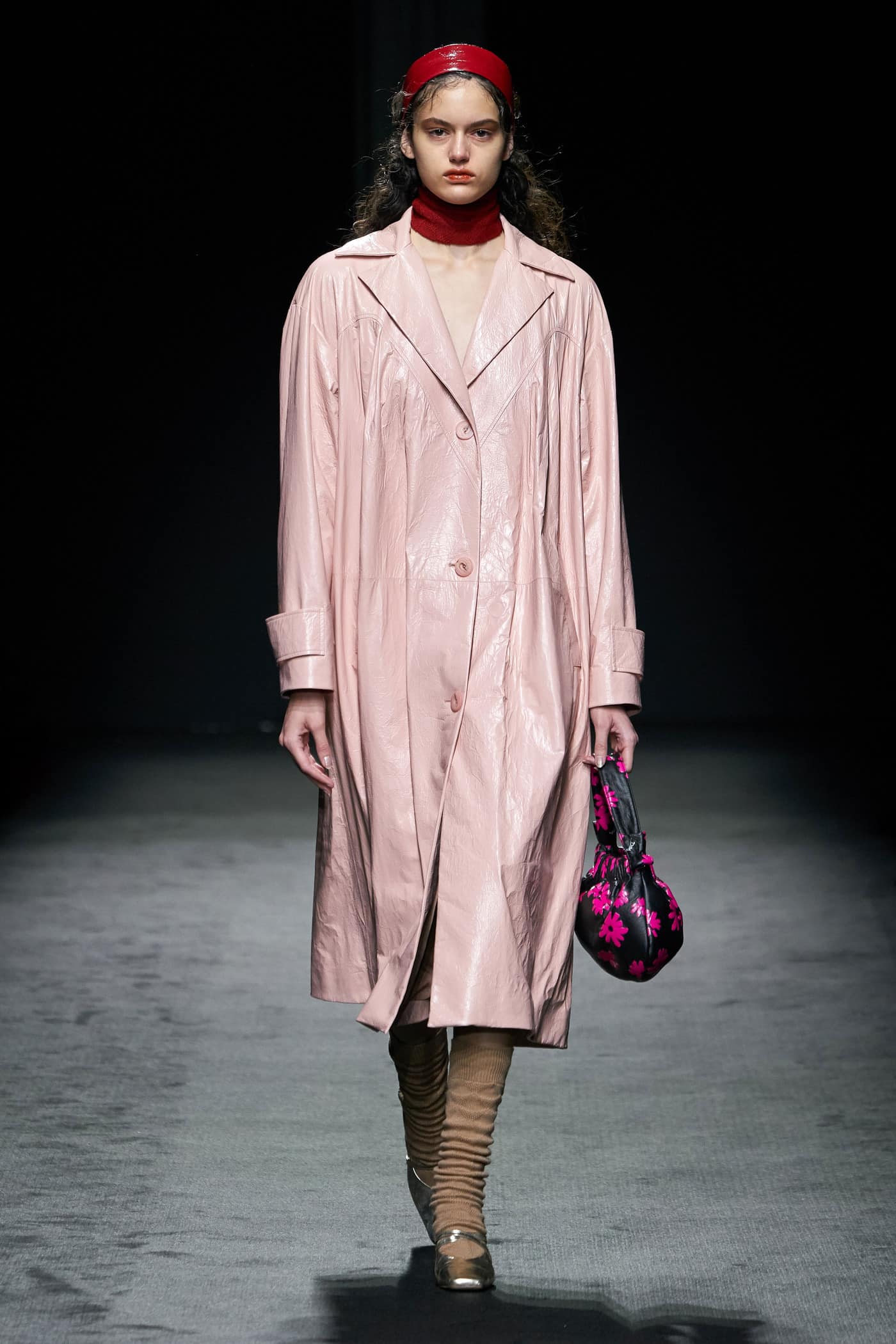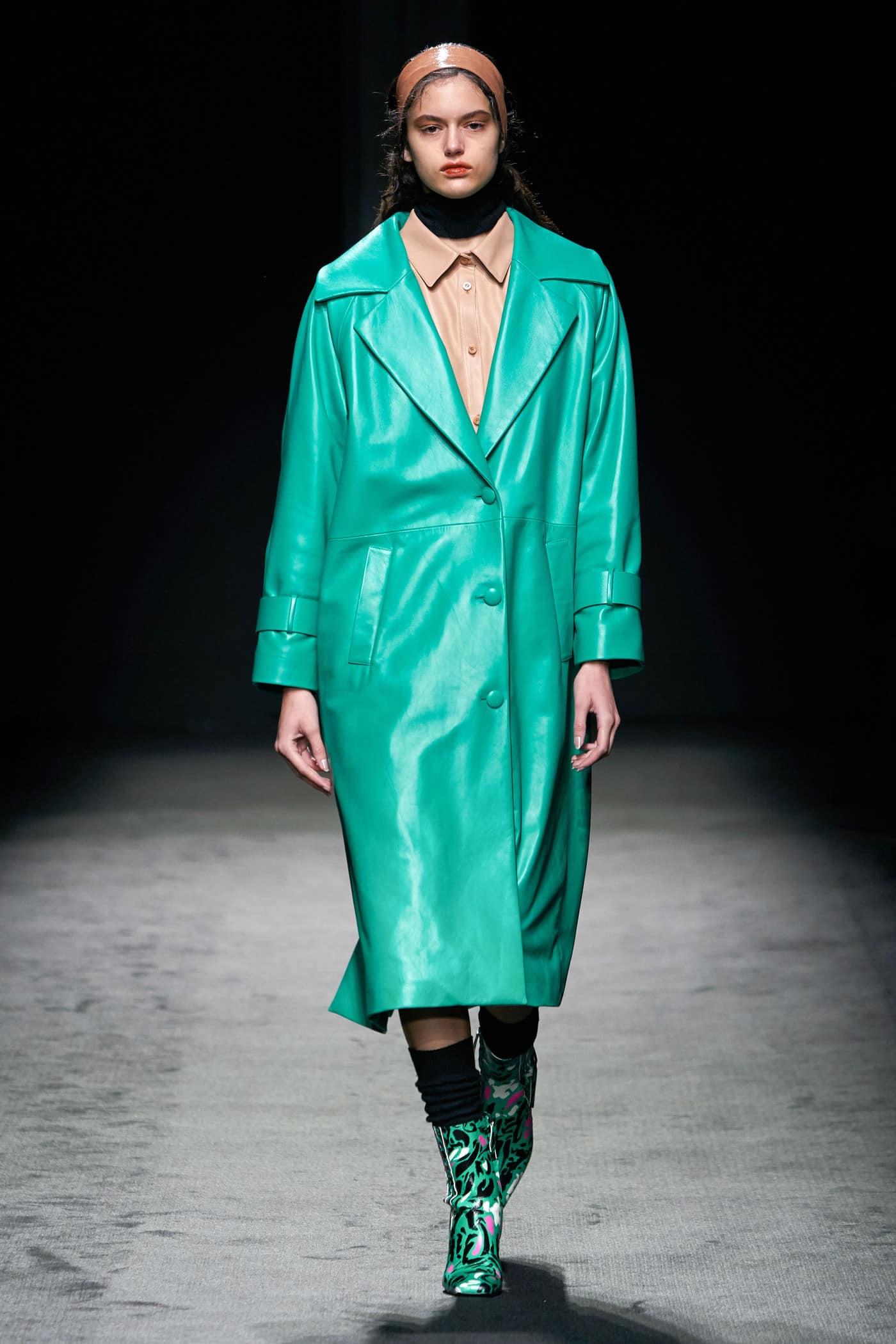 The collection felt vaguely retro, not tied to any specific time. Trench coats and belted waists were a nod to the ’80s, while delicate shoes and square-toed go-go boots seemed to come straight from the ’60s. Even without the traditional trappings of femininity — like frills, florals, and extensive embellishments — Rosati’s work came across as youthful and girly. Of course we don’t doubt that the DROMe lady is anything short of strong and capable.