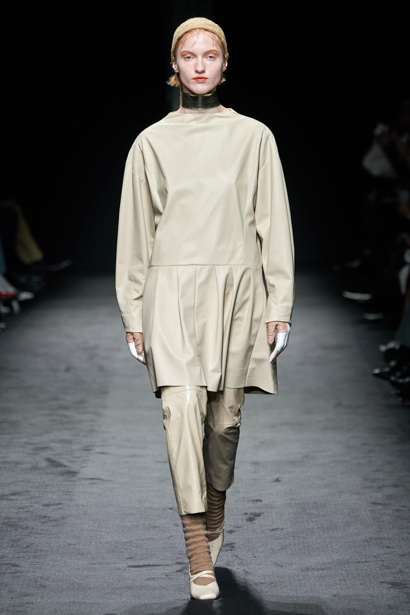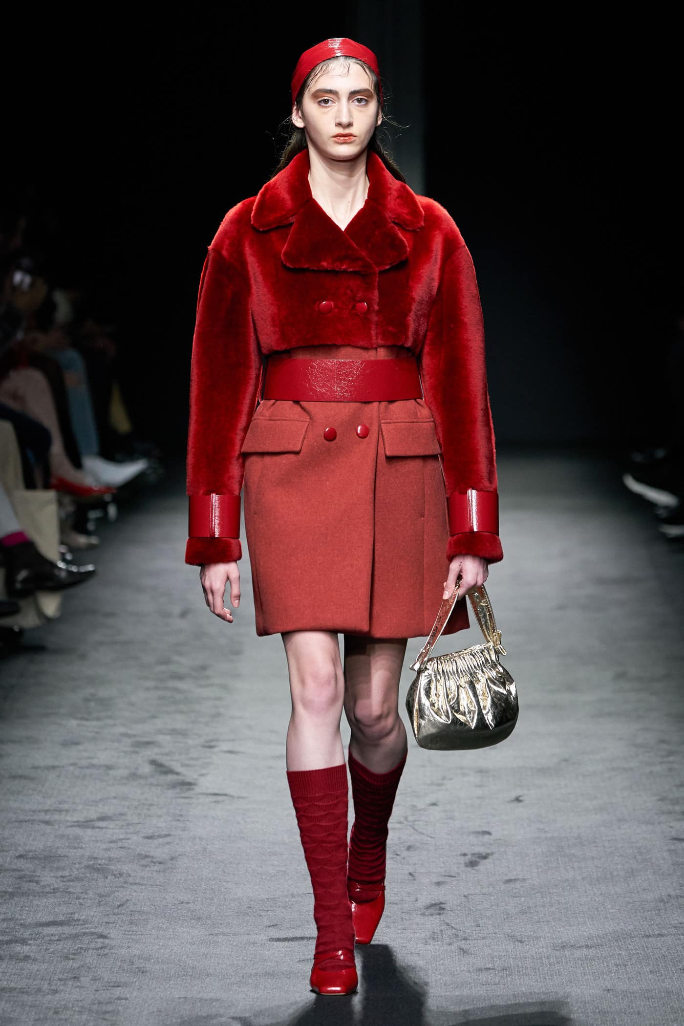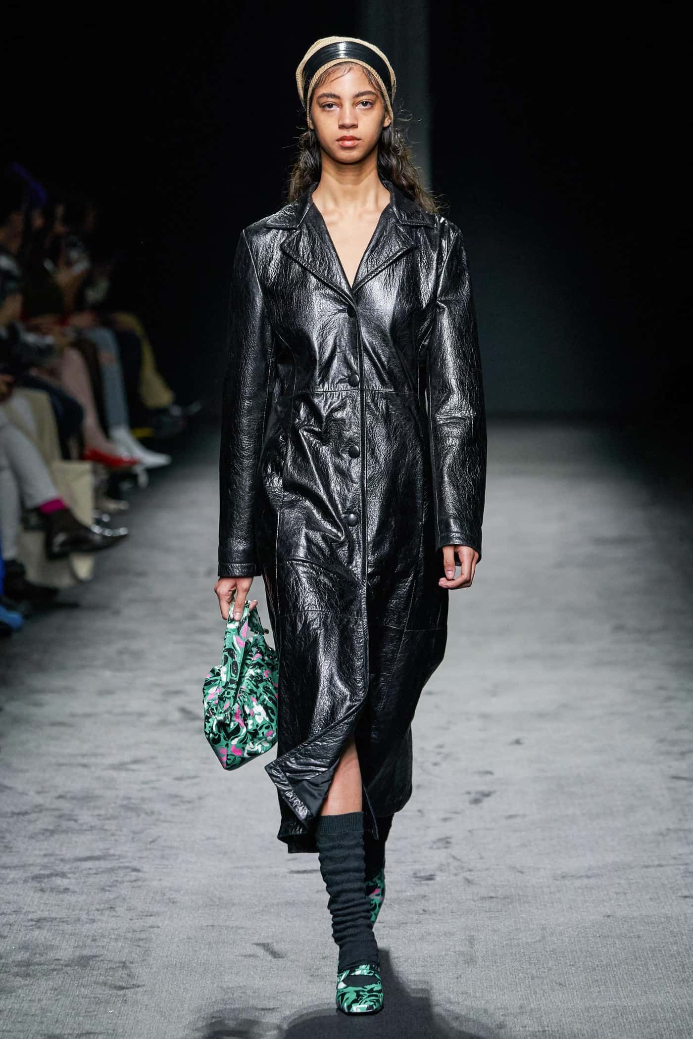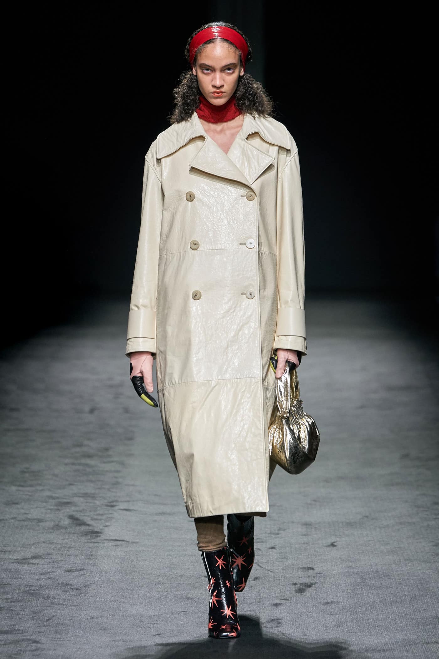The collection felt vaguely retro, not tied to any specific time. Trench coats and belted waists were a nod to the ’80s, while delicate shoes and square-toed go-go boots seemed to come straight from the ’60s. Even without the traditional trappings of femininity — like frills, florals, and extensive embellishments — Rosati’s work came across as youthful and girly. Of course we don’t doubt that the DROMe lady is anything short of strong and capable.