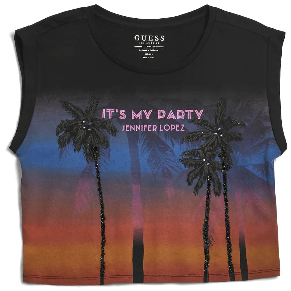 Why: Last month, when Jennifer Lopez kicked off her “It’s My Party” tour, Guess announced a capsule collection of merch. While the entire collection is cute, this distressed denim jacket featuring a pop art-style graphic of Lopez is certainly a standout. All of the tees from the capsule have a retro feel, using vintage-inspired fonts and colors. Way cooler than your standard tour merch!